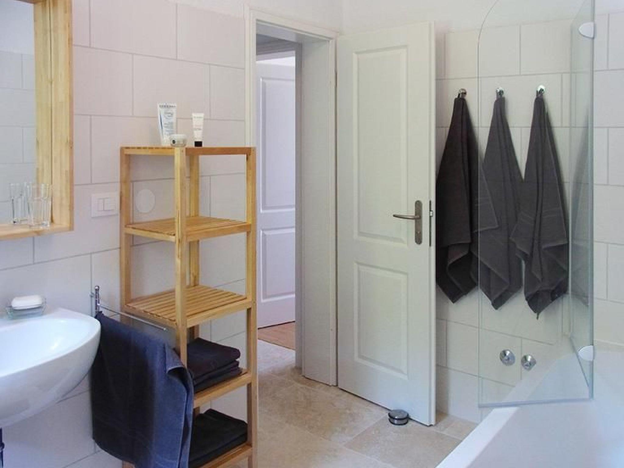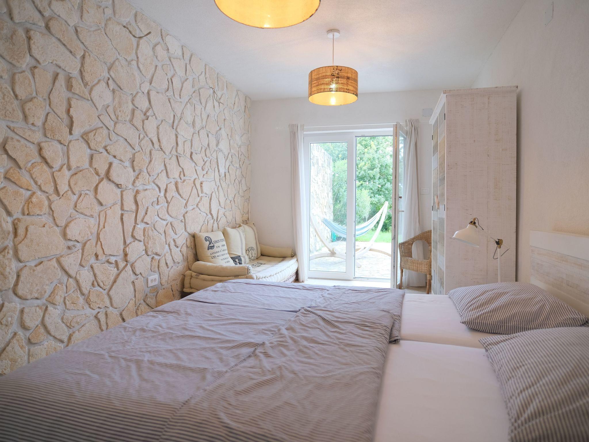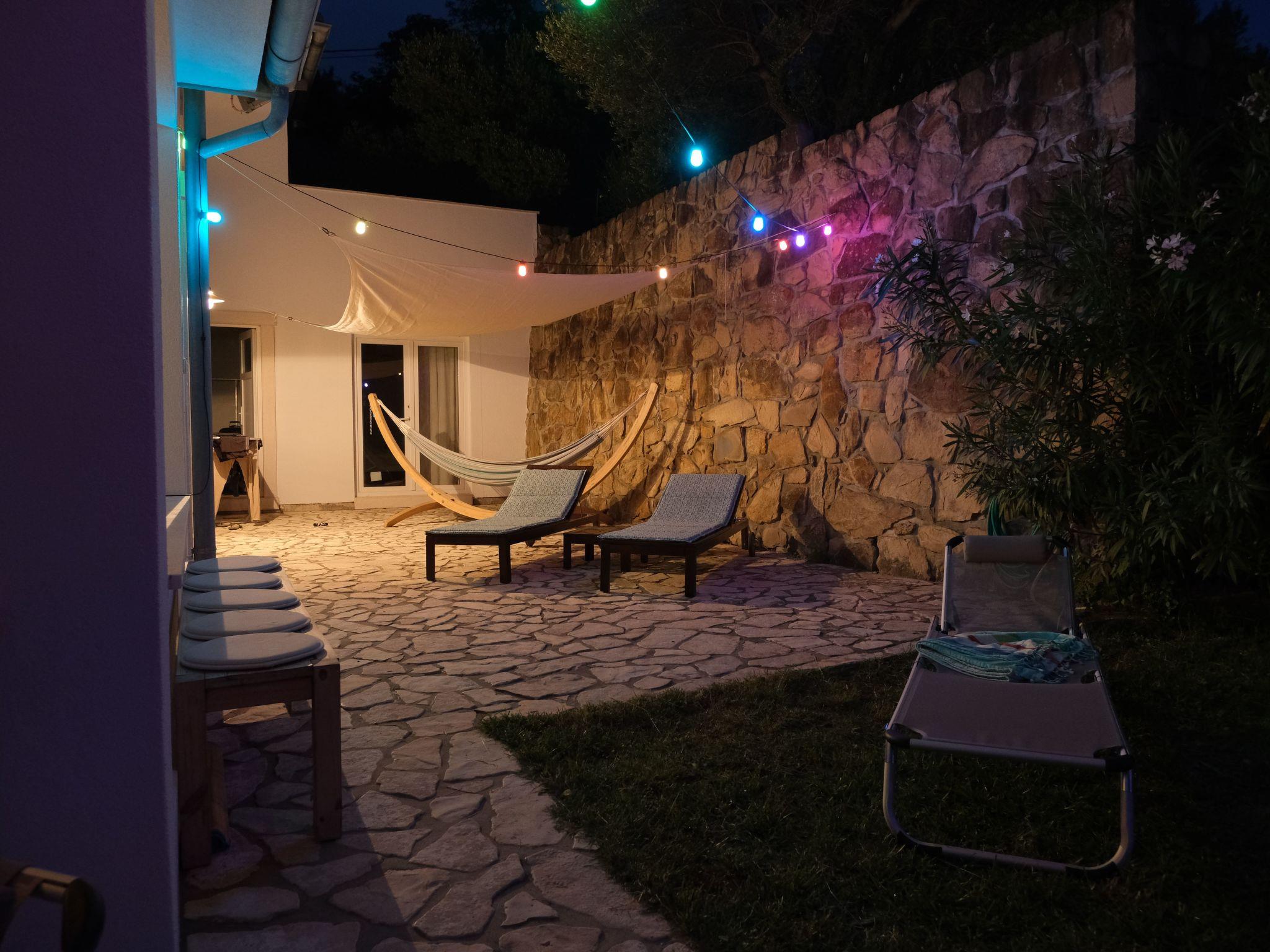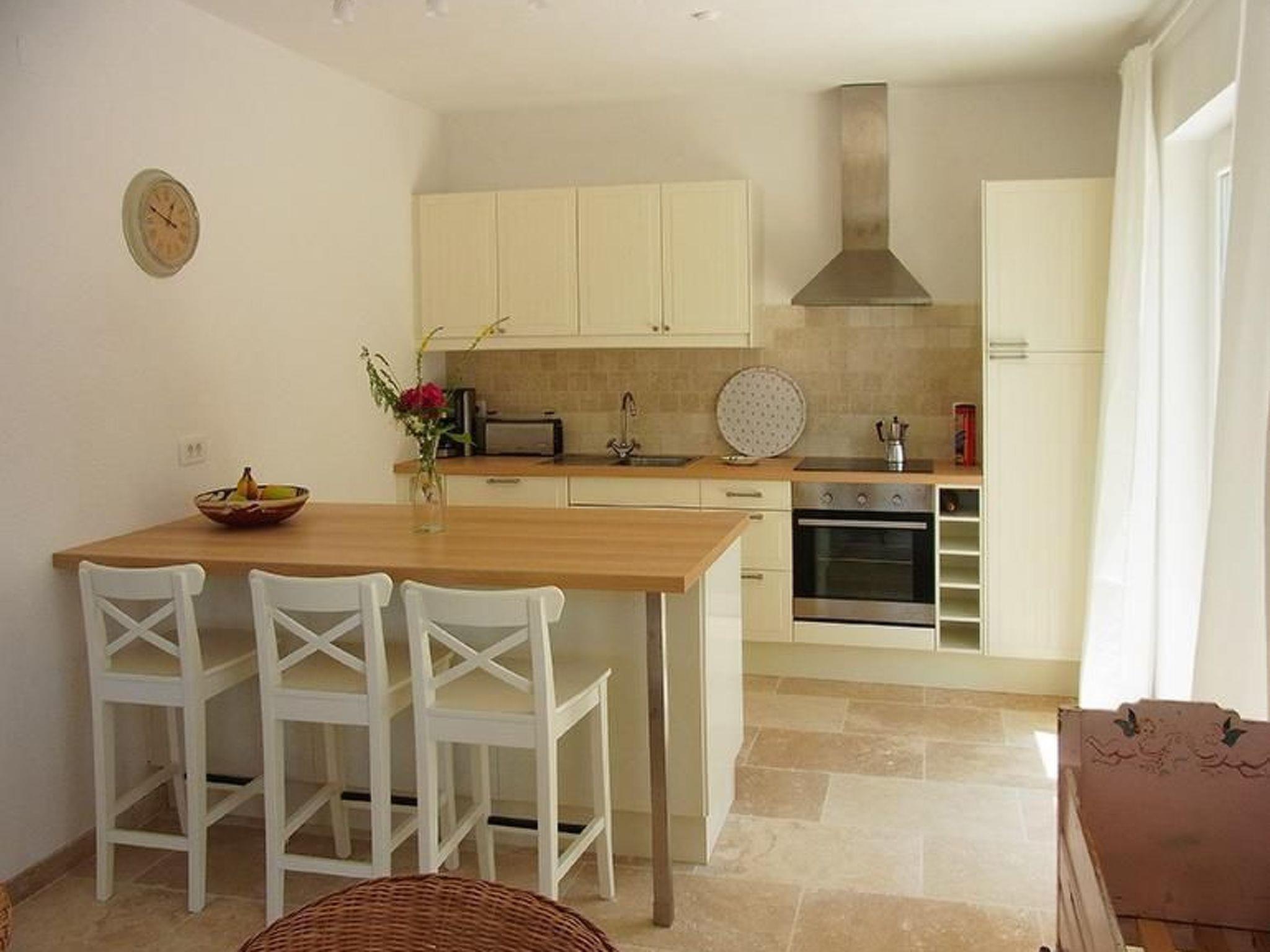 Auf der Rückseite des Hauses befindet sich ein separat zugängliches Apartment mit eigenem Eingang und Platz für zwei weitere Personen. Es verfügt über ein ausziehbares Tagesbett (80 x 200 cm oder (160 x 200 cm), einer Küchenzeile, ein Duschbad und eine eigene, nicht einsehbare Terrasse.Vom Innenhof aus gelangen Sie über einen seperaten Zugang in ein weiteres ebenerdiges Zimmer mit Doppelbett (180 x 200 cm) und Bad. Dieses Zimmer (ohne Klimaanlage) liegt zum Teil im Hang und heizt sich daher im Sommer nicht sehr auf. Das Apartment und/oder das "Hofzimmer" kann nur zusätzlich mit dem Haupthaus zusammen gemietet werden. Buchen Sie das Haus ohne Apartment (bis sechs bzw. acht Personen), kann dieses zeitweise vom Vermieter bewohnt werden, der Sie aber keinesfalls stören und Ihnen bei Fragen jederzeit behilflich sein wird.