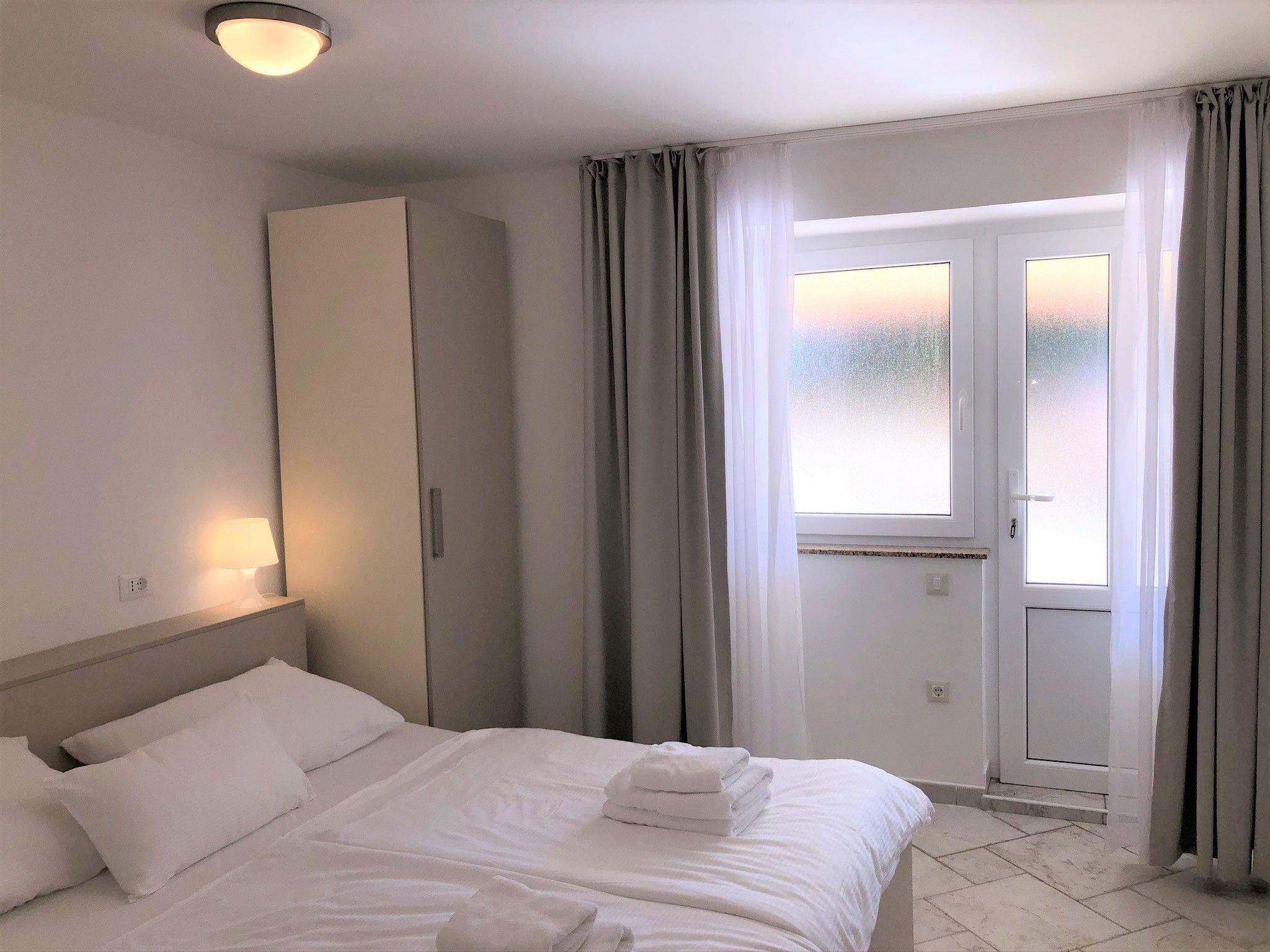 Die 60m² große Ferienwohnung im Erdgeschoss besteht aus einem Wohn- und Esszimmer mit integrierter, offener Küche, zwei Schlafzimmern und zwei modernen Bädern. Das klimatisierte (kühl/warm) Wohnzimmer verfügt über eine großzügige Eckcouchgarnitur mit passender Chaiselongue, einen an der Wand montierten Flachbildfernseher mit Satellitenprogrammen und USB-Anschluss, eine Stereoanlage, einen Safe für Ihre Wertsachen und einen Esstisch mit Stühlen. Die moderne, offene Einbauküche ist mit Geschirrspüler, Cerankochfeld, Backofen, Kühlschrank mit Gefrierfach, Mikrowelle, Wasserkocher und Kaffeemaschine ausgestattet. Die beiden Schlafzimmer sind jeweils mit einem 180 cm x 200 cm großen Doppelbett, Nachttischen mit Leselampen und Schränken mit viel Stauraum für Kleidung und Gepäck ausgestattet. Das Sofa im Wohnzimmer kann auch in ein zusätzliches Bett (120 cm x 220 cm) für eine weitere Person umgewandelt werden. Die beiden Badezimmer sind jeweils mit einer geräumigen Duschkabine, einem Waschbecken mit Unterschrank und einem Wandspiegel sowie einer Toilette ausgestattet. Eine Waschmaschine und ein Kinderbett sind vorhanden und Bettwäsche und Handtücher sind ausreichend vorhanden. Der zuverlässige drahtlose Internetanschluss in der Wohnung kann kostenlos genutzt werden.