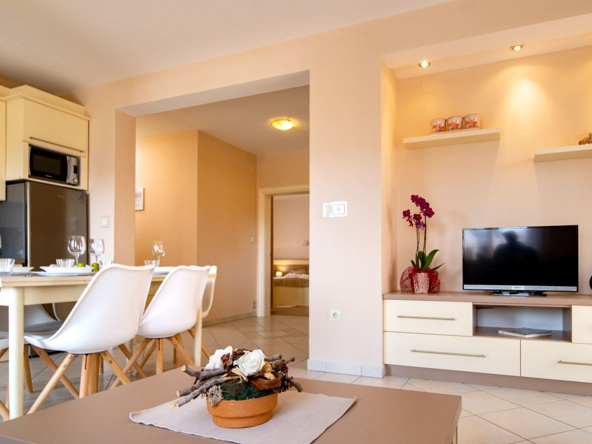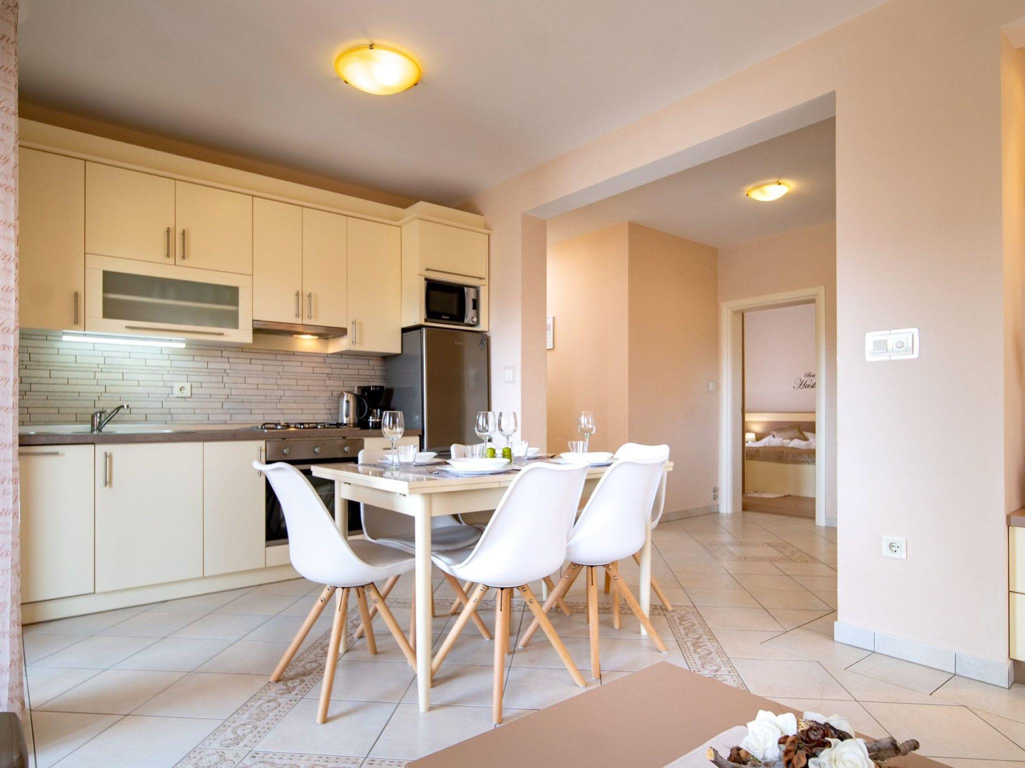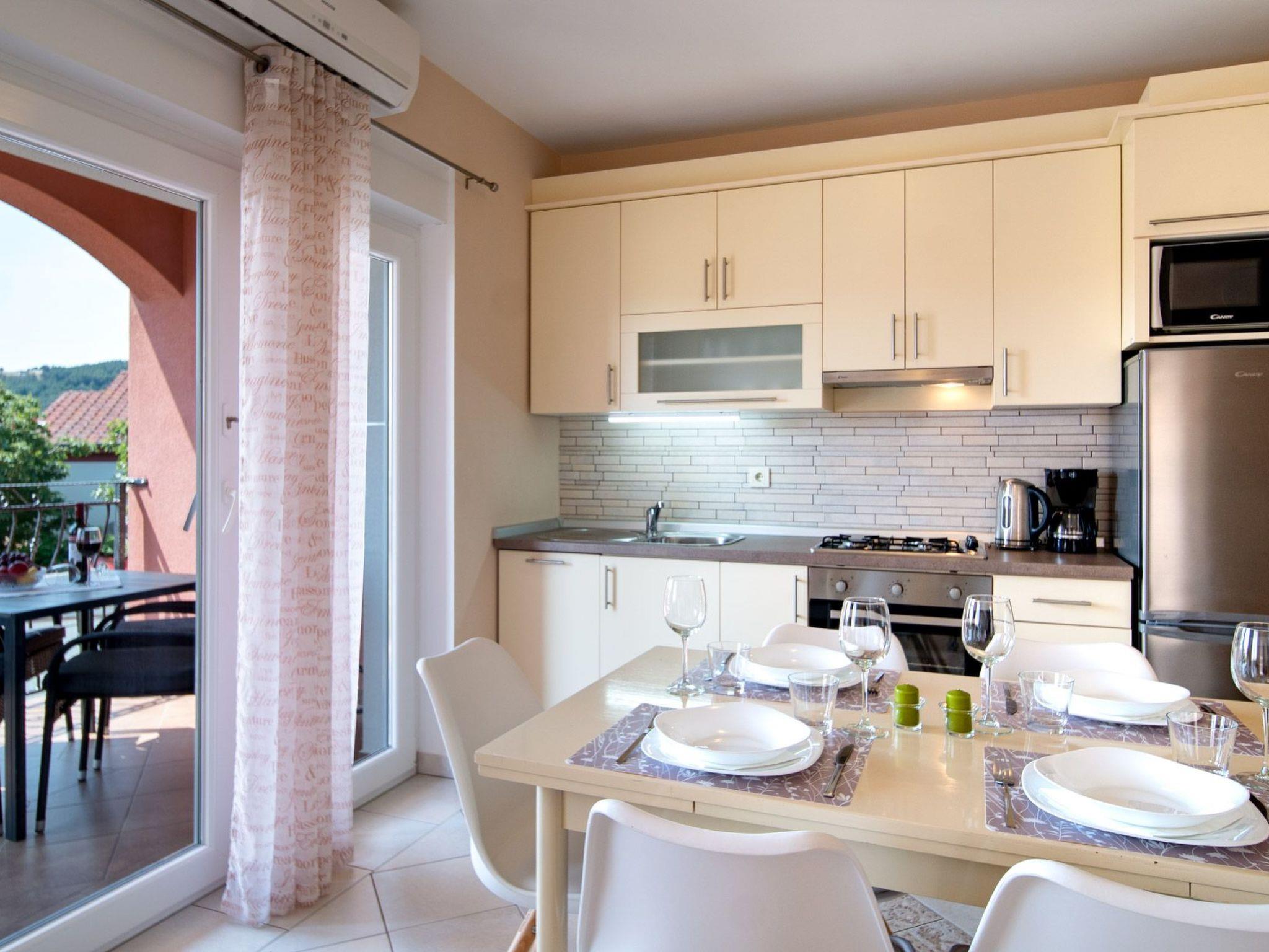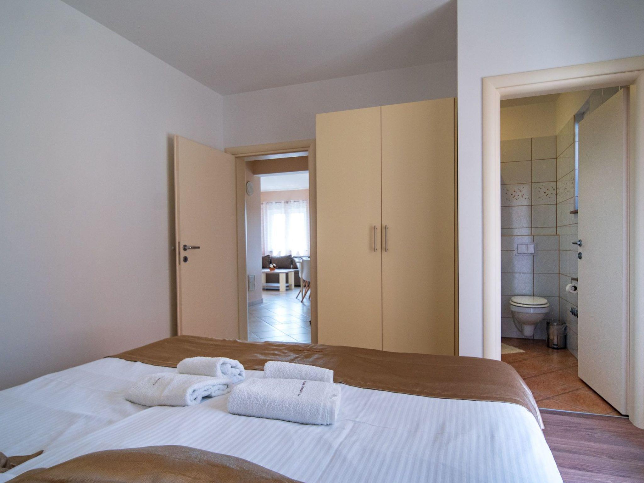Apartment B ist eine Zweizimmerwohnung für 4 bis 6 Personen auf einer Fläche von 60 Quadratmetern. Es befindet sich im ersten Stock und verfügt über zwei Badezimmer mit Duschen, einen Essbereich und eine voll ausgestattete Küche mit Herd, Kühlschrank, Backofen, Geschirrspüler, Mikrowelle, Wasserkocher und Kaffeemaschine. Saubere Handtücher und Bettwäsche werden gestellt und alle 7 Tage gewechselt (Bettwäsche wird alle 7 Tage gewechselt und Handtücher werden alle 3 Tage gewechselt). Die Wohnung verfügt über einen gesicherten Parkplatz, Klimaanlage, Sat-TV, Safe und kostenlosen Internetzugang. Die Wohnung hat auch zwei Balkone mit Sitzmöbeln mit Blick auf den Garten, um jeden Tag Ihres Urlaubs zu genießen! Brandneue , moderne und voll ausgestattete FeWo, die alle Ihre Wünsche erfühlen. Mistral Apartments befinden sich nur 100 m vom Zentrum vom Lopar. Völlig neue und qualitativ hochwertige Unterkunft für die ganze Familie oder Freunde. Hier können Sie Ihren Urlaub in ruhiger Lage entspannt und besorgt verbringen. Nähe von Restaurants, ein großes Einkaufszentrum Konzum, Bäckerei, Post, Kinderspielplatz , ein Café, eine Apotheke, Bushaltestelle . Jede Wohnung verfügt über eine Küche,Schlafzimmer,Badezimmer, TV / SAT, Internet (Wifi), Klimaanlage , Balkon, Parkplatz und alle anderen notwendigen Ausrüstung (Bettwäsche, Handtücher, Kaffeemaschine, Wasserkocher , Kühlschrank, Geschirrspühler).KurzbeschreibungSonstiges : NichtraucherhausKurzbeschreibung 1Anzahl Küchen : 1UmgebungLeihmöglichkeiten : Autovermietung, Bootsverleih, FahrradverleihSportmöglichkeiten in der Umgebung : Angeln, Basketball, Bergsteigen, Jagdmöglichkeit, Mountainbiking, Paragliding, Radtouren, Surfen, Tauchen, Tennis, WasserskiGarten und AussenanlagenFreizeiteinrichtungen am Objekt : SpielplatzGartenausstattung : Gartenhaus, Grill, Pavillon, SpielgeräteServiceleistungenServiceleistungen (ggfs. kostenpflichtig) : Frühstück, Getränkeservice, Hauspersonal
