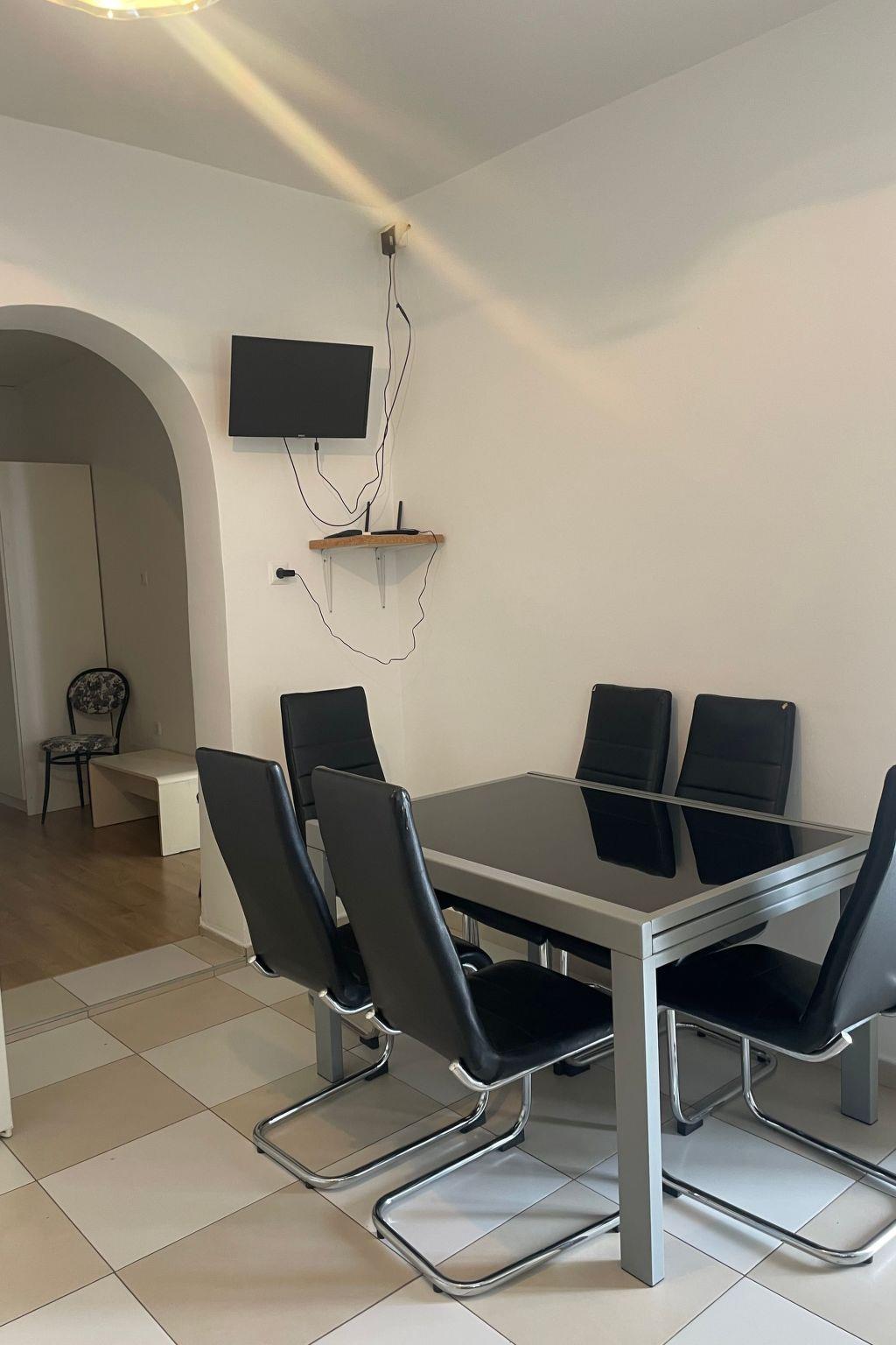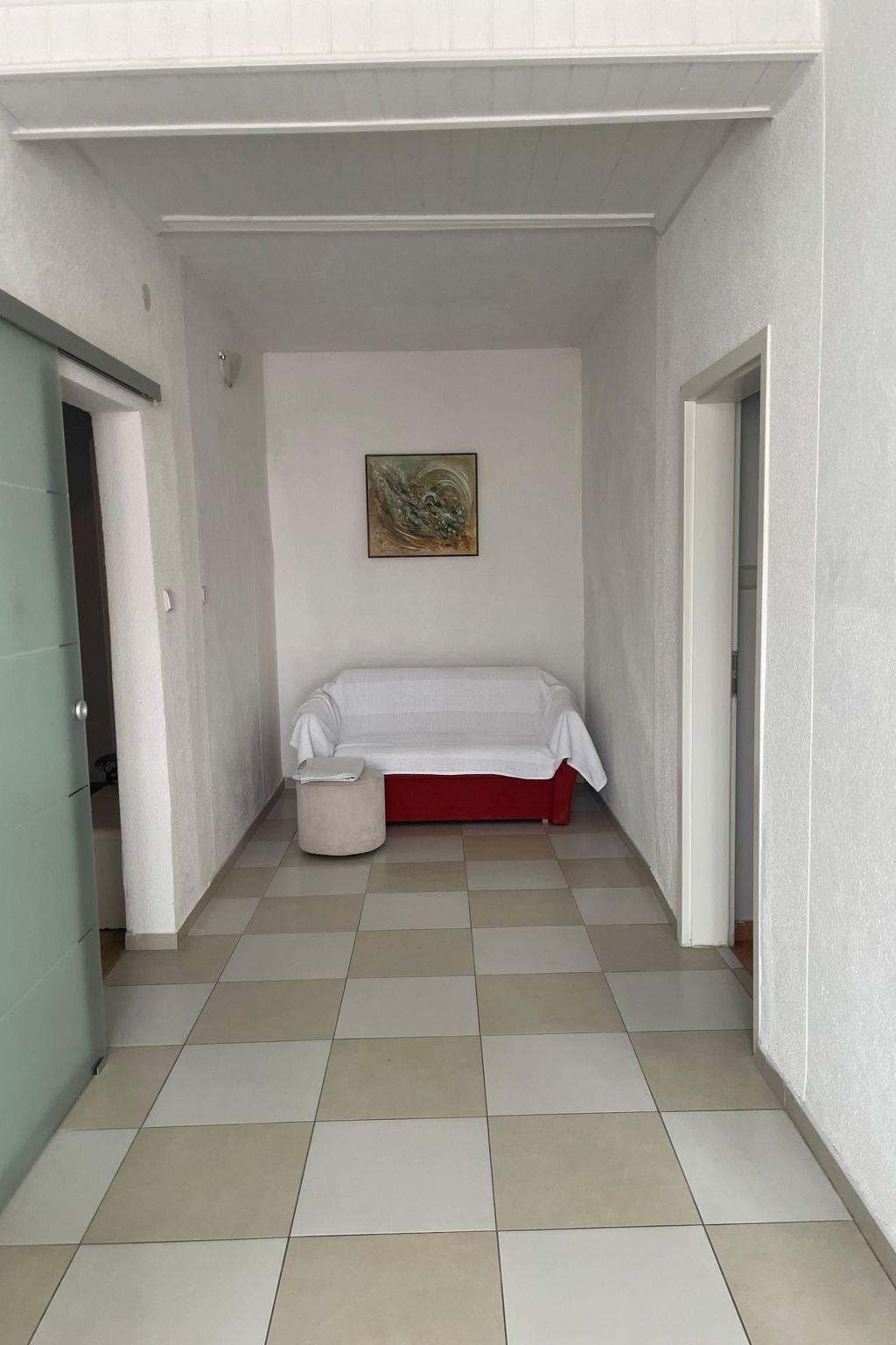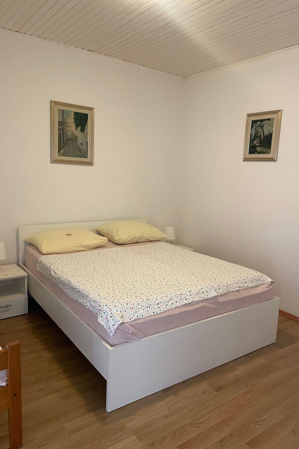 Die Grundetage ist ca. 80m groß und besteht aus folgenden Räumen: Einem Wohnzimmer mit voll ausgestatteter Küche, bequemer Couch, Flachbildfernseher und zwei Doppelzimmern mit Aufbettungsmöglichkeit. Die Wohnung verfügt über eine große Terrasse (80m) mit Meerblick und Garten, wo Sie und Ihre Kinder genießen können. Die Wohnung hat keine Klimaanlage, aber es ist angenehm kühl im Sommer wegen seiner dicken Wände.