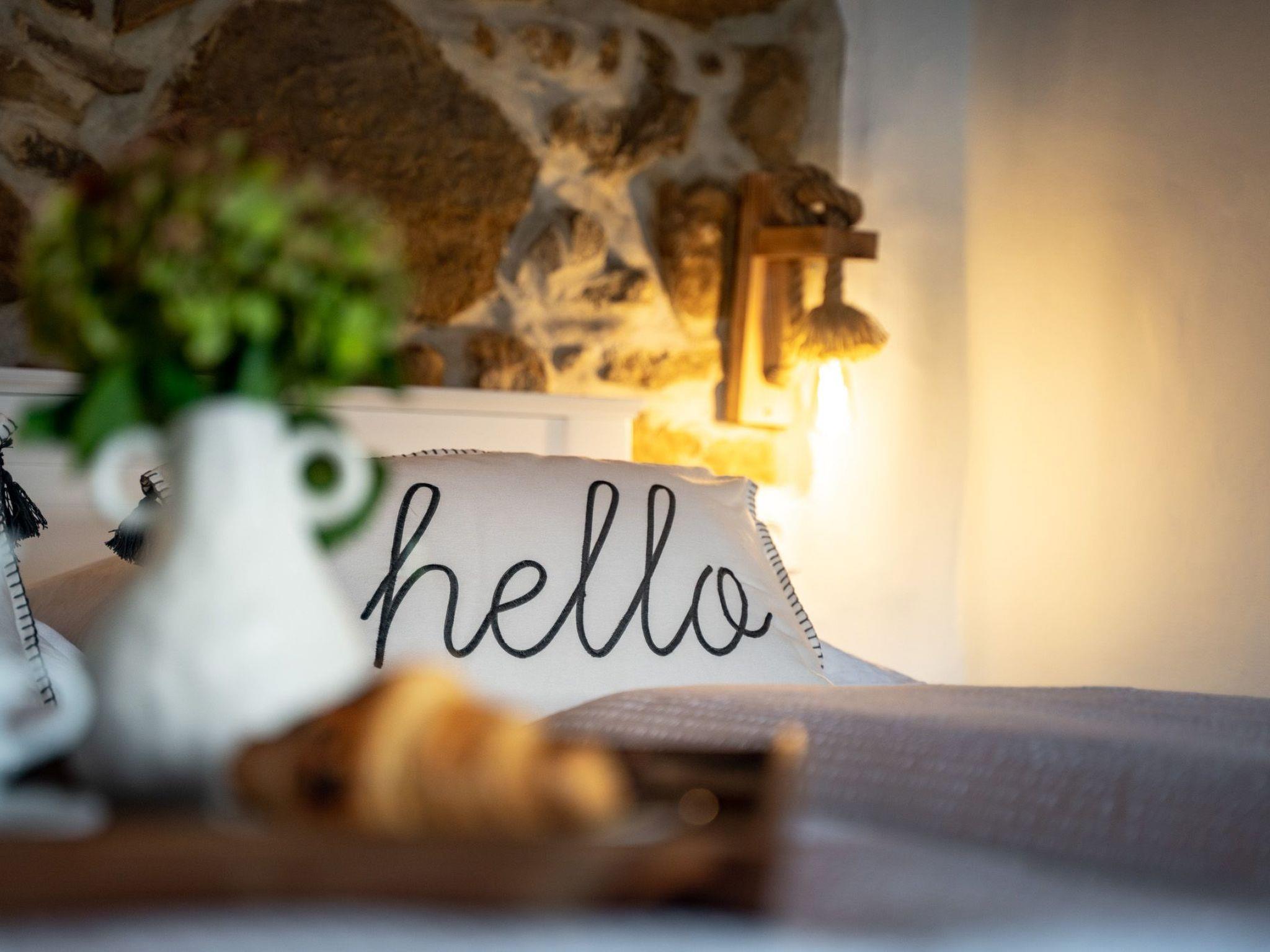 Das Äußere dieses traditionellen mediterranen Steinhauses fügt sich in die natürliche Umgebung ein. Es wurde 1895 erbaut und im Jahr 2020 wieder aufgebaut, wobei die ursprüngliche Identität des Hauses durch die Verwendung natürlicher Materialien erhalten wurde. Wir haben versucht, die Überreste der Vergangenheit zu bewahren, während wir jeden Winkel des Hauses renoviert haben. Treten Sie durch die Eingangstür und werden Sie von einer perfekten Mischung aus modernem und rustikalem mediterranem Interieur empfangen. Es erwarten Sie eine voll ausgestattete Küche mit Esstisch, eine Außenterrasse mit Grill und eine Lounge-Ecke. Das Wohnzimmer ist mit einer Couch und Schaukelstühlen ausgestattet, wo Sie sich mit einer Tasse Kaffee, einem guten Buch oder einem Brettspiel entspannen können. Wir haben darauf geachtet, dass unsere Wohnung nicht nur eine weitere Mietwohnung ist. Wir haben unseren Raum mit allem ausgestattet, was man für einen unverschämt guten Urlaub braucht. Bücher, Brettspiele, Kinderspielzeug - all diese Dinge finden Sie in unserem Raum.
