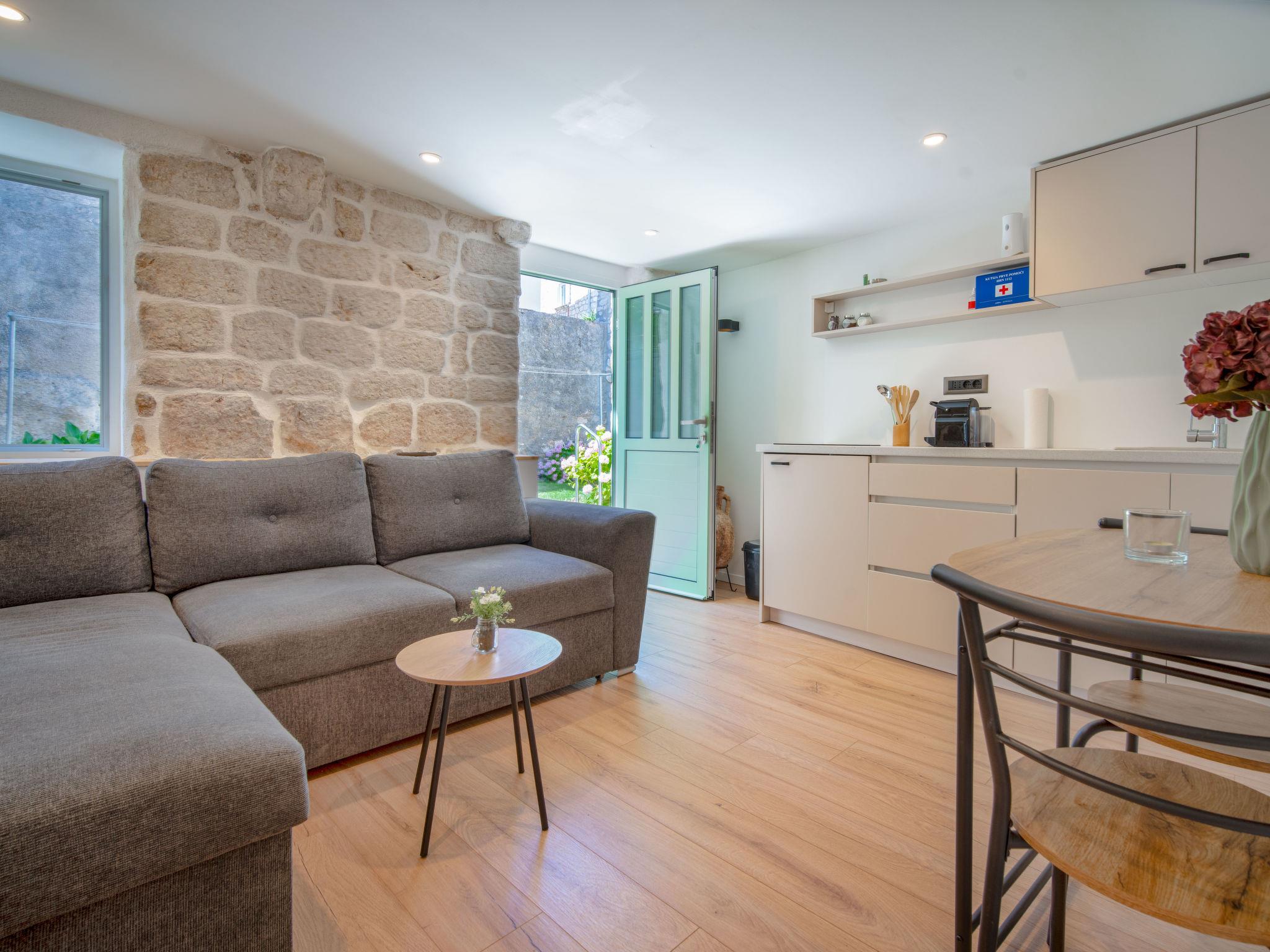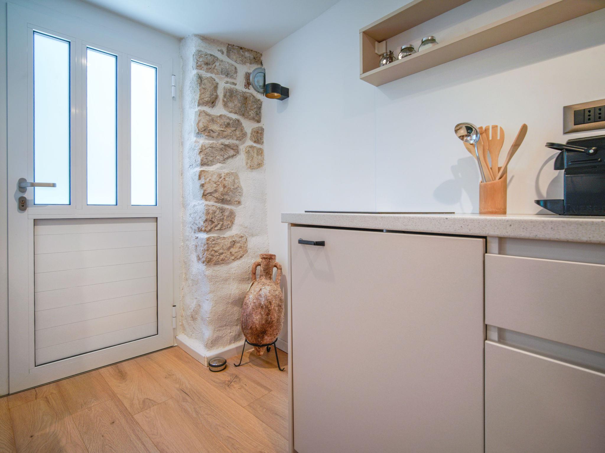 2-Zimmer-Wohnung 25 m2, im Erdgeschoss. Schön und gemütlich eingerichtet: Wohn-/Esszimmer mit TV (Flachbildschirm), Klimaanlage. 1 offenes Zimmer mit 1 franz. Bett (140 cm, Länge 200 cm), TV (Flachbildschirm). Offene Küche (Geschirrspüler, 2 Glaskeramikplatten, elektrische Kaffeemaschine). Dusche/WC. Keine Heizmöglichkeit. Zur Verfügung: Haartrockner. Internet (WLAN, gratis). Bitte beachten: Nichtraucher-Haus. Feuerlöscher.
