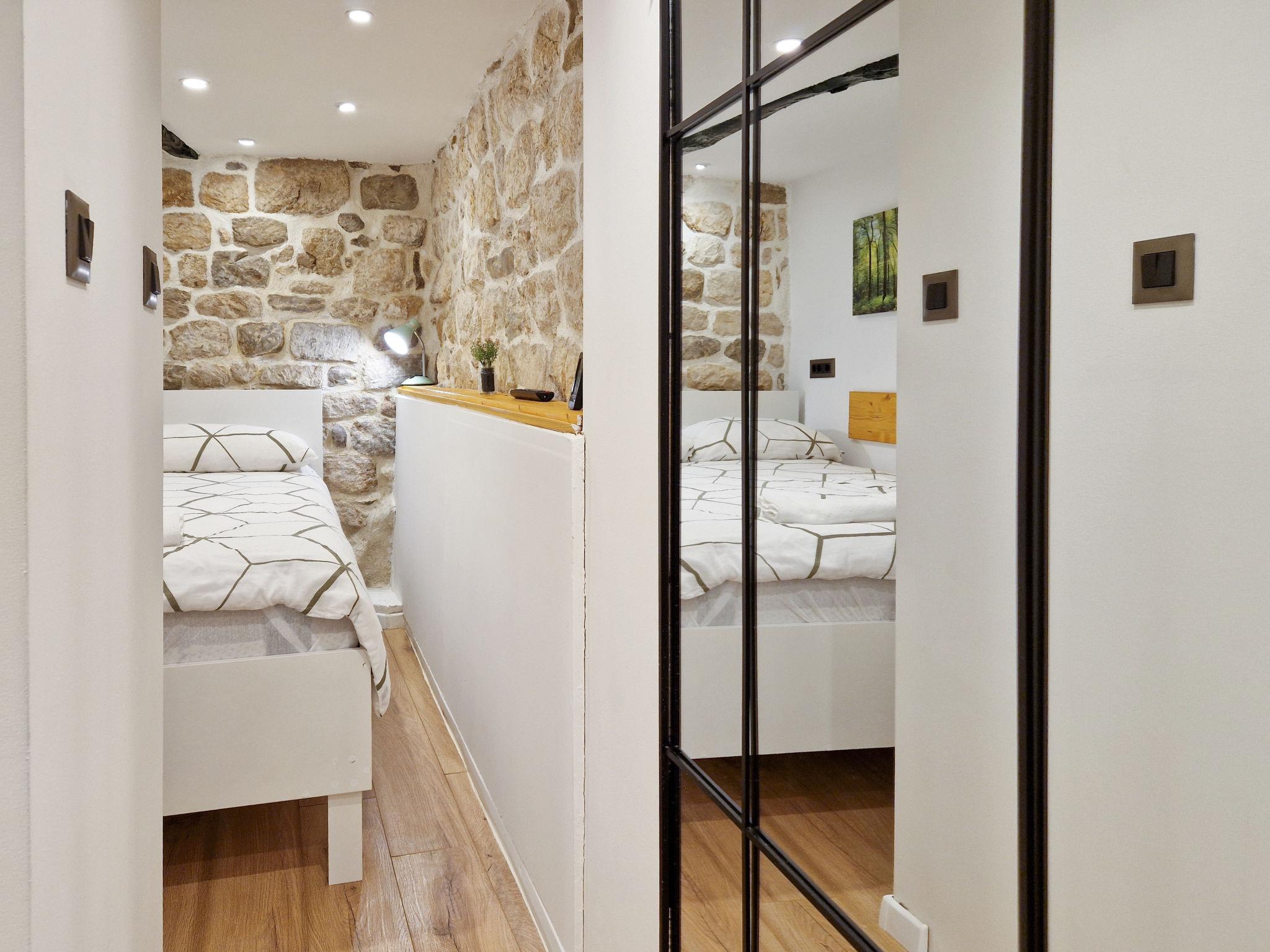 Mehrfamilienhaus "Rapski dvor", renoviert im Jahre 2023. Im Ortszentrum von Rab, 50 m vom Meer, 50 m vom Strand, direkter Zugang zum Strand, in einer Fussgängerzone. Zur Mitbenutzung: Terrasse (20 m2), Gartenmöbel. Im Hause: Internetzugang. Zufahrt bis 350 m zum Haus. Öffentliche Parkplätze 350 m. Einkaufsgeschäft 80 m, Supermarkt 350 m, Restaurant 500 m, Café 200 m, Bushaltestelle 750 m, Kieselstrand 50 m.