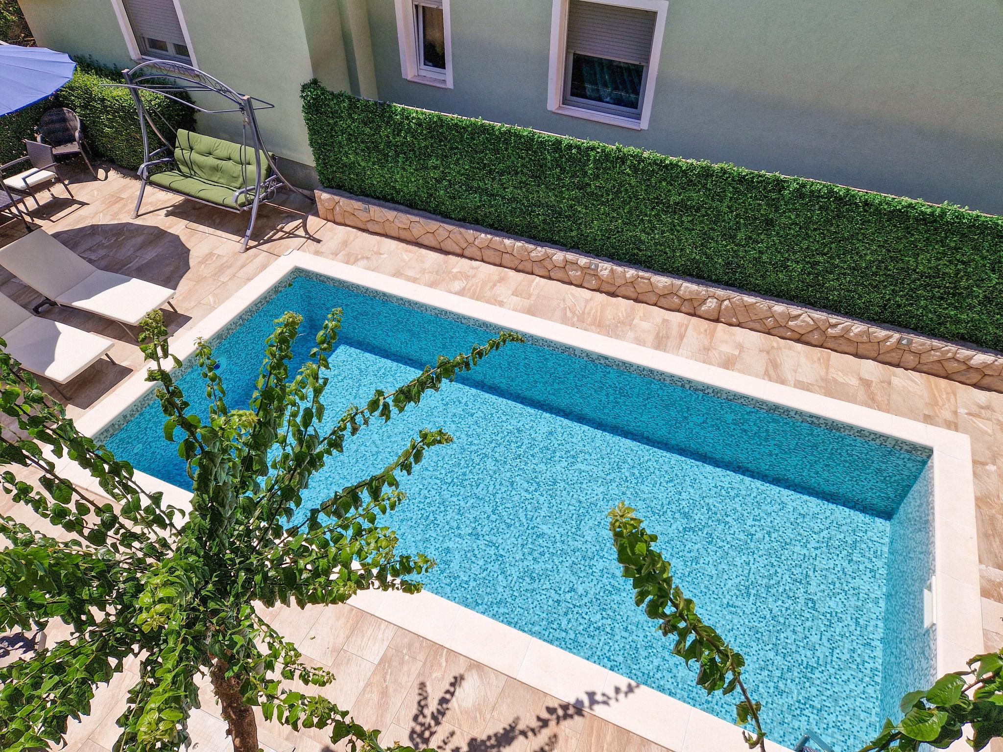 Schönes Appartementhaus "Olga". Im Ortsteil Banjol, 1 km vom Zentrum, 450 m vom Meer, 450 m vom Strand. Zur Mitbenutzung: Schwimmbad eckig (7 x 3 m, 25 m2, 155 cm tief, saisonale Verfügbarkeit: 01.Mai. - 01.Okt.) mit Salzelektrolyse-Reinigungssystem. Aussendusche, Grill. Im Hause: Internetzugang. Parkplatz beim Haus. Einkaufsgeschäft 300 m, Restaurant 150 m, Bushaltestelle 900 m, Sandstrand, Kieselstrand, Strandbad, betonierter Strand 450 m. Bitte beachten: Weitere Unterkünfte sind buchbar.
