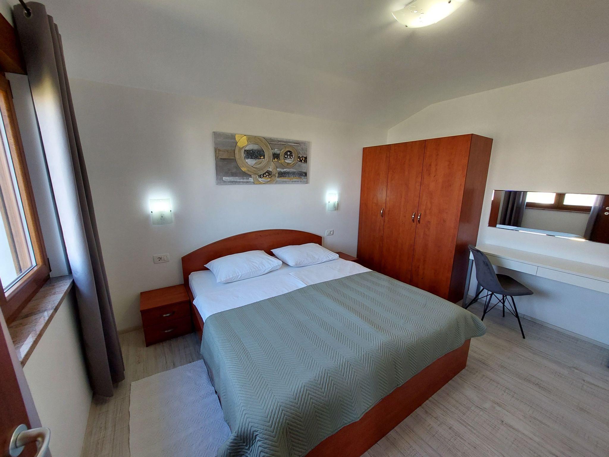 Diese Ferienwohnung mit Terrasse liegt im zweiten Stock der freistehenden Villa und bietet einen wunderschönen Ausblick von der Terrasse auf das Meer. Die Wohnung ist 2016 nach dem Viersterne- Standard gebaut worden.