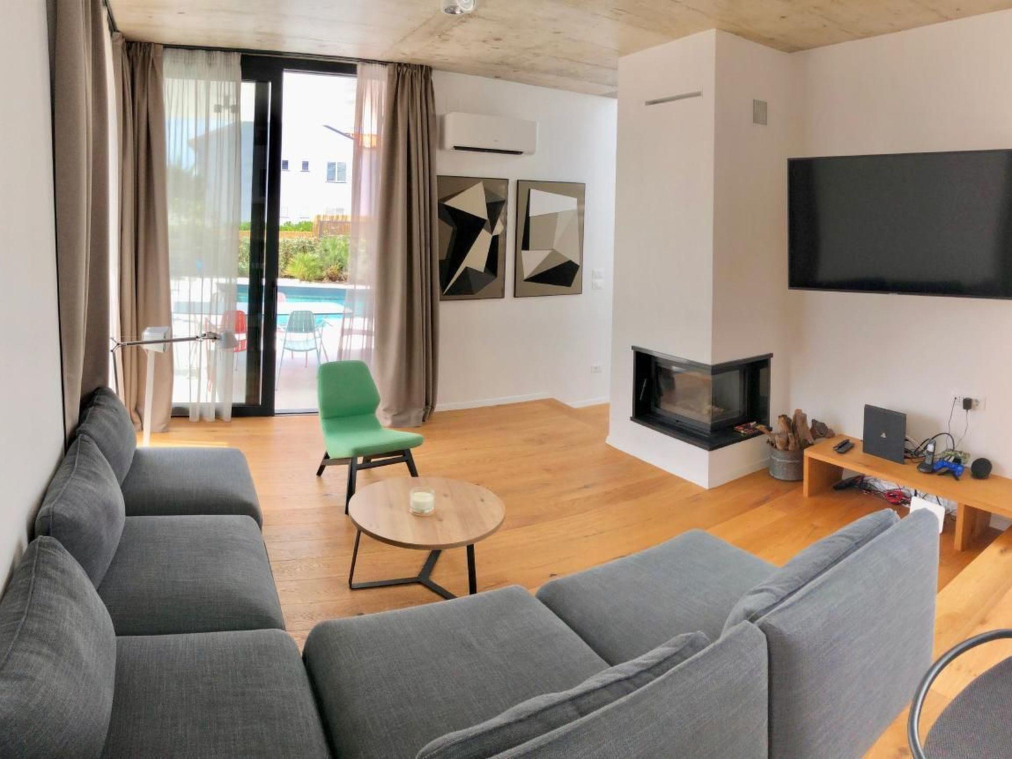 Luxuriöses Ferienhaus Sunny Garden befindet sich in Barbat, Insel Rab. Das Haus hat eine großartige Lage, nur 200 m von den Kiesstränden, 300 m von Bars und Restaurants und 200 m von Geschäften entfernt. Nur 4 km vom alten Stadtzentrum von Rab entfernt. Der Fährhafen ist 6 km vom Haus entfernt. Gesamtgröße des Hauses beträgt 106 m2 mit zwei getrennten Eingängen. Das modern Flachdachhaus besteht aus 2 Schlafzimmern und 2 Bädern, Wohnzimmer, Essbereich, Küche, großem 40 m2 Pool, Terrasse, 2 Parkplätzen (einer überdacht und einer unbedeckt). Alle Räume mit Umgebungslicht. Klimaanlage und WLAN in allen Zimmern verfügbar. Das Haus hat seitlichen Meerblick. Das erste Schlafzimmer hat eine Gesamtgröße von 10 m2 Das Schlafzimmer verfügt über 2 Einzelbetten 200 x 90, die Einzelbetten oder ein Doppelbett sein können. Es gibt auch einen Kleiderschrank, einen Schreibtisch, einen LCD-Smart-TV und Designerlampen von Artemide Das zweite Schlafzimmer hat eine Gesamtgröße von 14 m2. Das Schlafzimmer hat ein großes Doppelbett von 200 x 180 cm. Es gibt auch einen Kleiderschrank, einen LCD-Smart-TV, ein Bügeleisen, einen Safe und Designerlampen von Artemide. Das Schlafzimmer hat direkten Zugang zum Pool und zur Terrasse. Küche und Essbereich haben eine Gesamtgröße von 15 m2. Voll ausgestattete Küche mit Backofen, Kühlschrank mit Gefrierfach, Geschirrspüler, Elektroherd (Induktion), Kaffeemaschine, Wasserkocher, Toaster, Hochtisch, 6 Stühlen von Prostoria, Umgebungslicht. Wohnzimmergröße beträgt 18 m2. Sofa mit 2 Zustellbetten, Abmessungen 80 x 200 cm, Kamin, Smart-TV mit Kabelkanälen, Sonos Play 3 Audio-Lautsprecher, Play Station 4, Umgebungslicht. Badezimmer 1 ist 6 m2 gross mit WC, Waschmaschine, Badewanne und Umgebungslicht. Badezimmer 2 ist 4 m2 gross mit begehbarer Dusche, LED-Hintergrundbeleuchtung, WC und Umgebungslicht Vor dem Haus befindet sich eine 16 m2 große überdachte Terrasse mit Designer stühlen und -Tisch. Der Außenpool ist 41 m2 gross (3,5 x 8,5 x 6 m), Tiefe 1,5 m mit salzgefiltertem Wasser. Poolsystem ohne Chlorfiltration! Der eingezäunte Garten hat eine Gesamtgröße von 400 m2.
