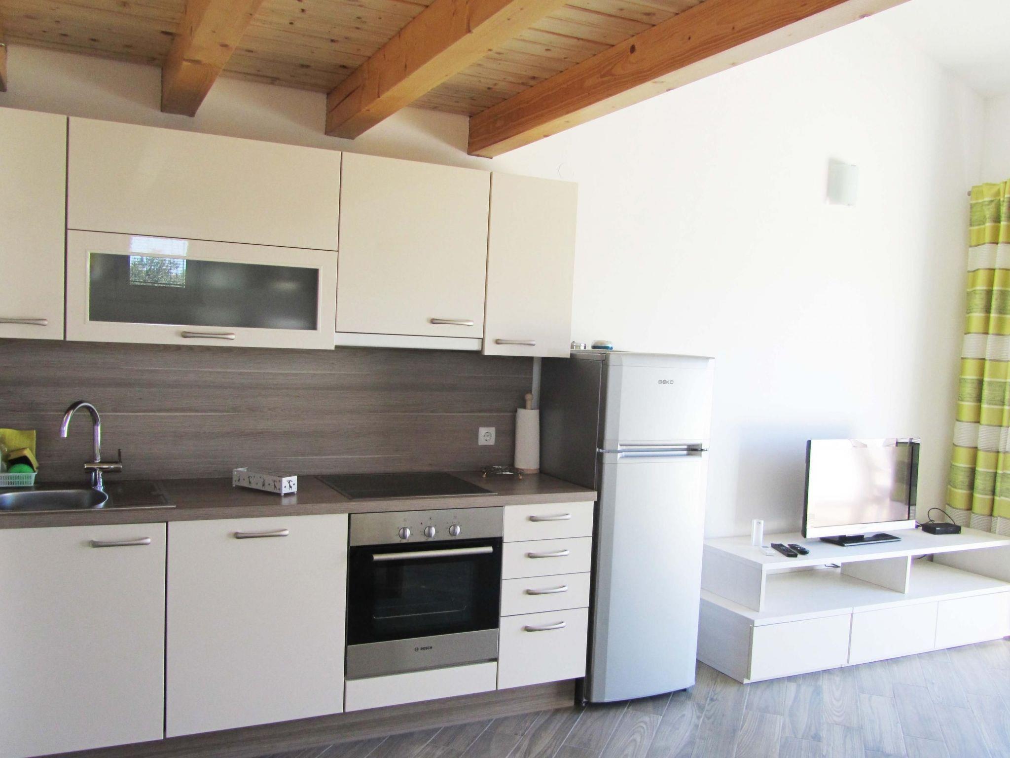 Die Wohnung SANDRA A2 4 (60 m2 + Terrasse 25 m2) befindet sich im ersten Stock und bietet Platz für maximal 4 Personen, 2 im Schlafzimmer und 2 im Doppelbett in der Galerie. Die Küche ist gut mit Geschirrspüler ausgestattet. Die Wohnung ist klimatisiert, mit kostenlosem WLAN und TV mit Satelliten-Kanälen. Bettwäsche und Handtücher sind im Preis inbegriffen (alle 7 Tage gewechselt). Das Parken ist in der Nähe des Hauses. Die Wohnung hat einen eigenen Eingang
