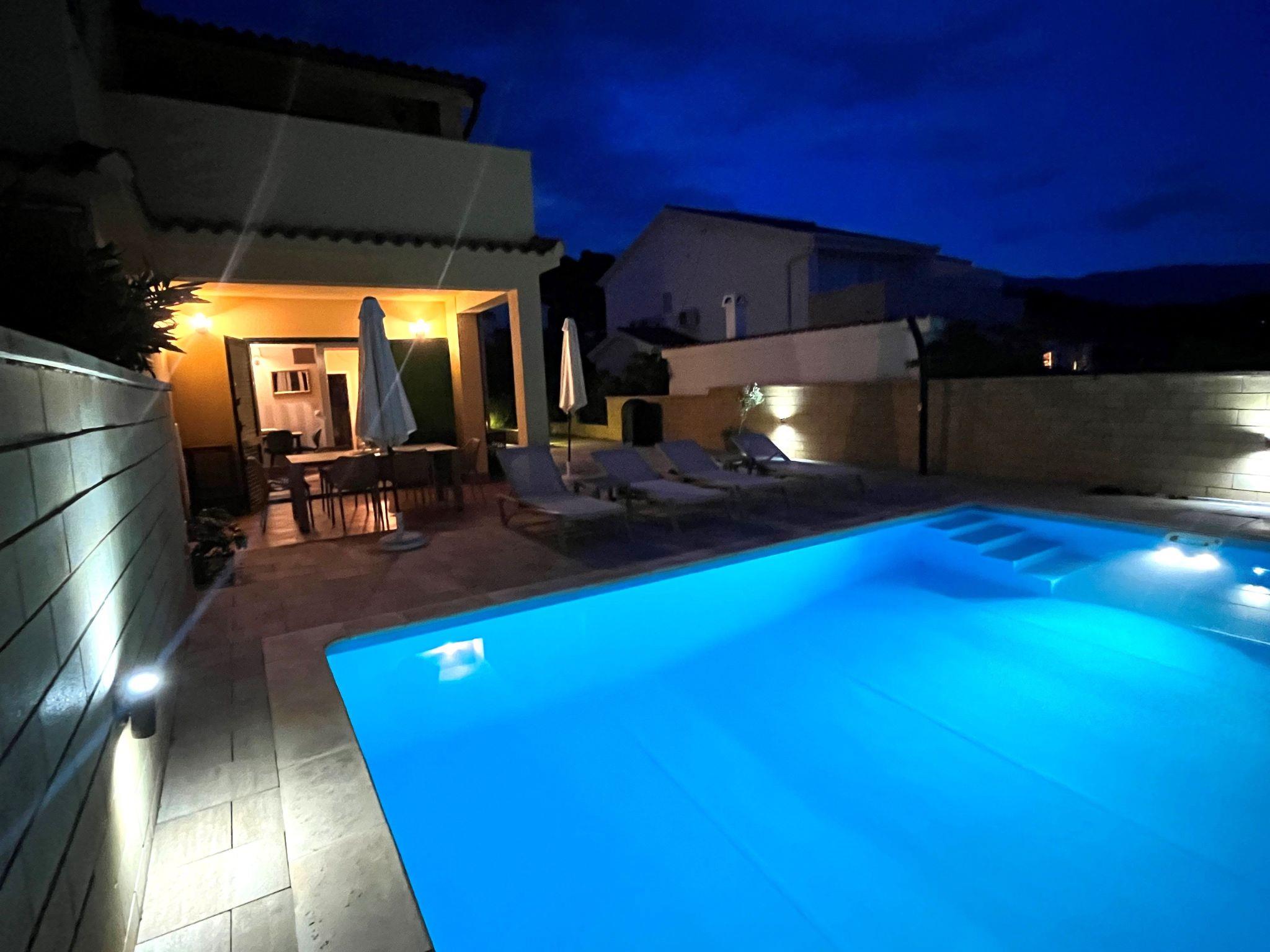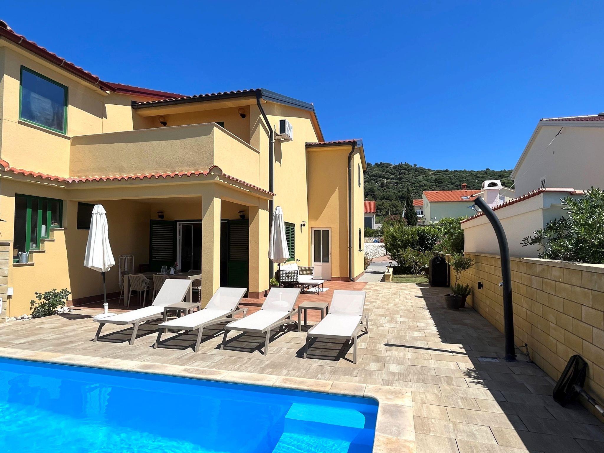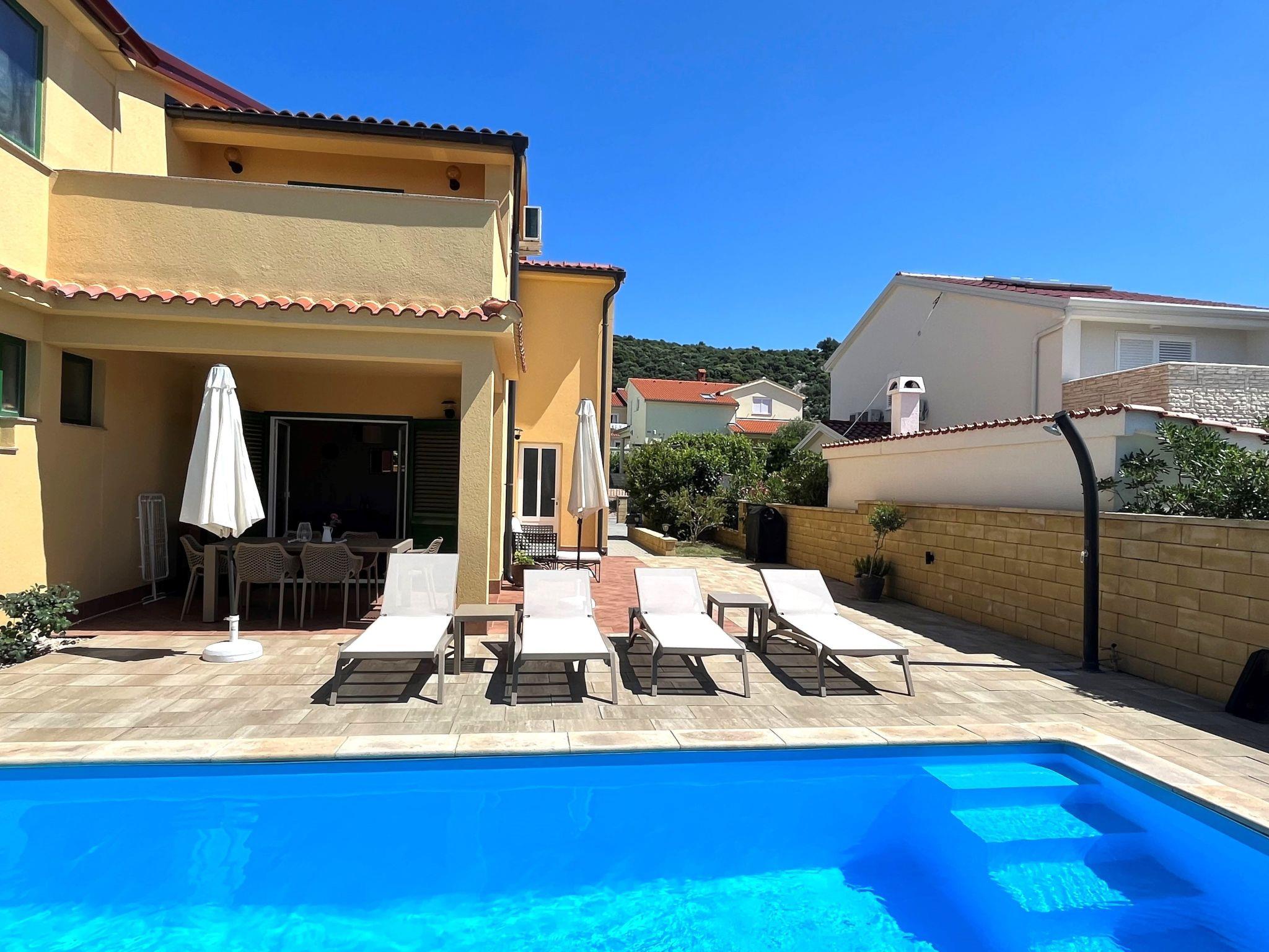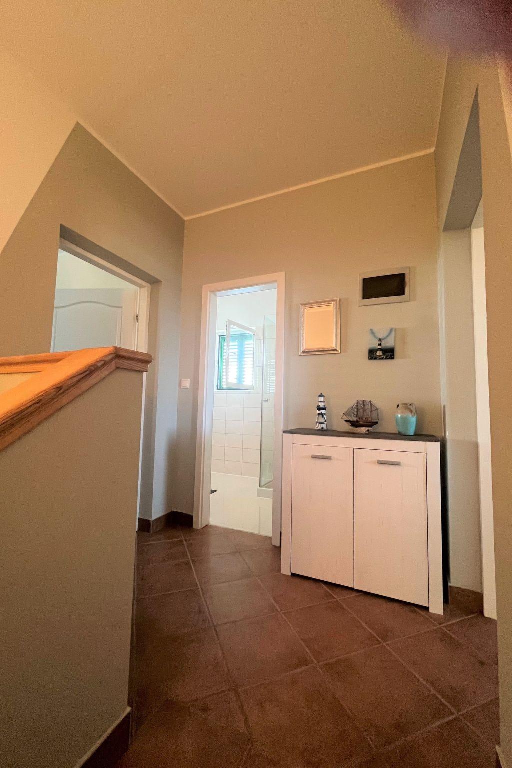 Das Ferienhaus "Summer escape 2" ist ein charmantes Ferienhaus mit Pool, das sich auf der Insel Rab, einer der schönsten Inseln der Adria, befindet. Dieses Haus befindet sich im Dorf Barbat, nur 70 Meter von den schönen Sandstränden entfernt. Die Highlights dieser großen Villa ist ein riesiger, schöner privater Garten mit einem Pool. Auch gibt es den Blick auf das Meer, die aus dem Schlafzimmer im ersten Stock genossen werden kann, oder die Aussicht auf die Hügel aus dem zweiten Schlafzimmer. Dieses Haus ist ideal für 6 Personen. Das offene Erdgeschoss bietet ein Wohnzimmer mit Küche, von wo aus Sie direkten Zugang zum Pool und zur überdachten Terrasse haben. Ein Schlafzimmer mit Doppelbett und eigenem Bad befindet sich ebenfalls im Erdgeschoss und hat einen direkten Zugang zur privaten Terrasse. Morgens können Sie vom Erdgeschoss aus den direkten Zugang zum Pool nutzen und das Schwimmen direkt vom Bett aus genießen. Im ersten Stock befinden sich 2 Schlafzimmer und ein Badezimmer. Alle Schlafzimmer haben eine Klimaanlage. Alle Schlafzimmer im ersten Stock haben Terrassen, von denen aus sich ein schöner Blick über die Umgebung erstreckt.