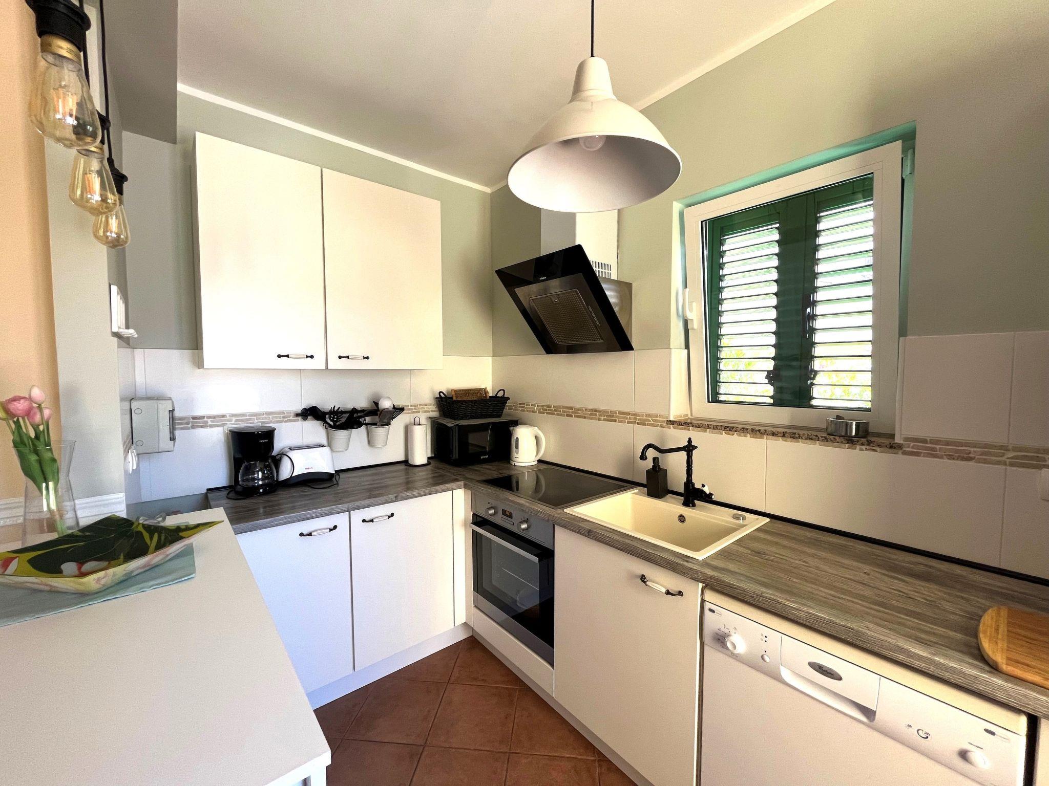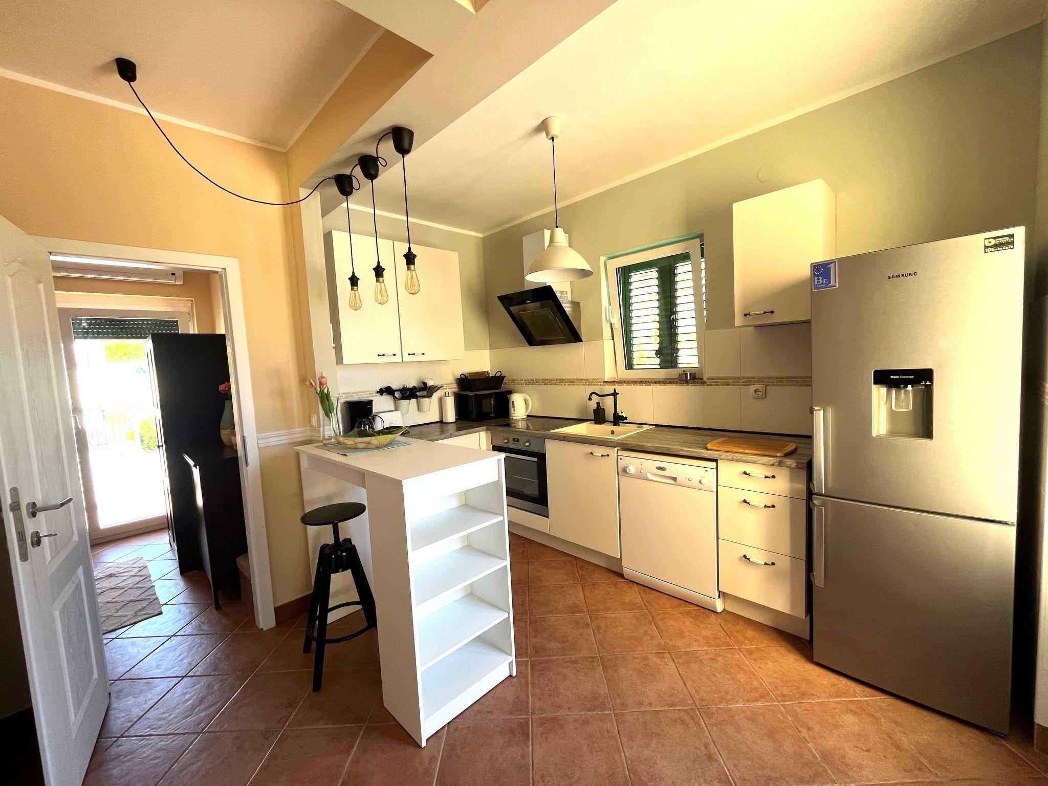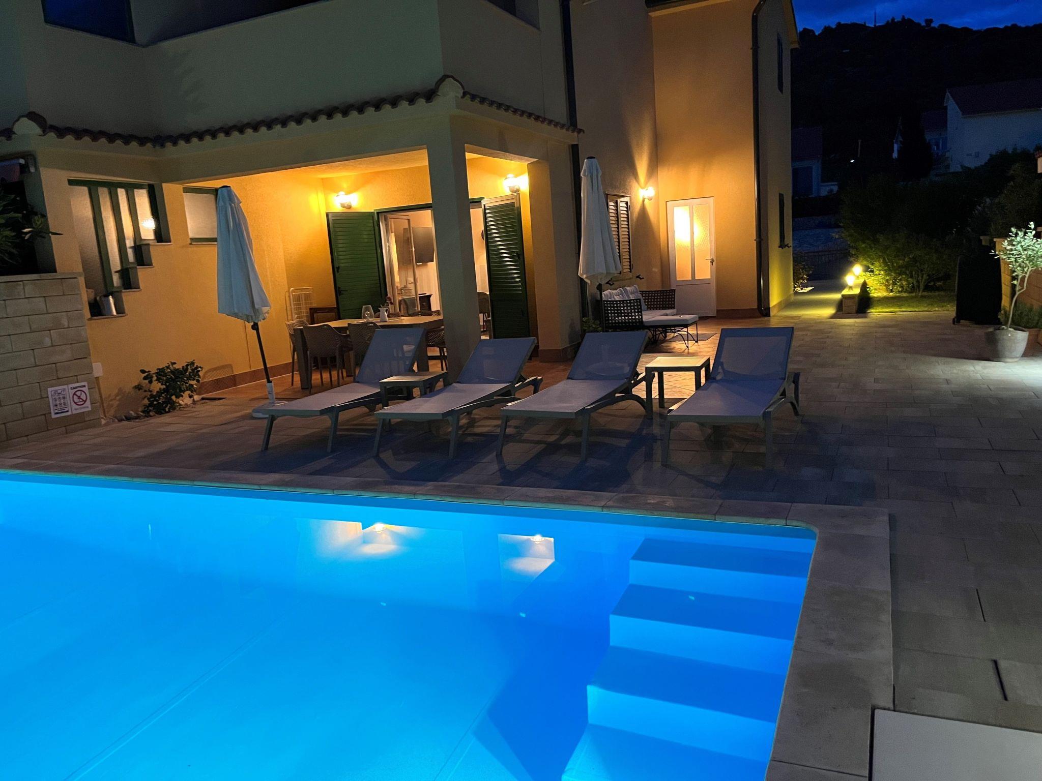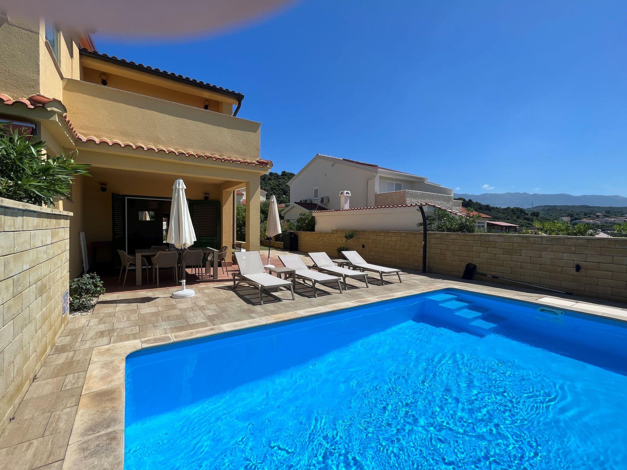 Das Ferienhaus "Summer escape 2" ist ein charmantes Ferienhaus mit Pool, das sich auf der Insel Rab, einer der schönsten Inseln der Adria, befindet. Dieses Haus befindet sich im Dorf Barbat, nur 70 Meter von den schönen Sandstränden entfernt. Die Highlights dieser großen Villa ist ein riesiger, schöner privater Garten mit einem Pool. Auch gibt es den Blick auf das Meer, die aus dem Schlafzimmer im ersten Stock genossen werden kann, oder die Aussicht auf die Hügel aus dem zweiten Schlafzimmer. Dieses Haus ist ideal für 6 Personen. Das offene Erdgeschoss bietet ein Wohnzimmer mit Küche, von wo aus Sie direkten Zugang zum Pool und zur überdachten Terrasse haben. Ein Schlafzimmer mit Doppelbett und eigenem Bad befindet sich ebenfalls im Erdgeschoss und hat einen direkten Zugang zur privaten Terrasse. Morgens können Sie vom Erdgeschoss aus den direkten Zugang zum Pool nutzen und das Schwimmen direkt vom Bett aus genießen. Im ersten Stock befinden sich 2 Schlafzimmer und ein Badezimmer. Alle Schlafzimmer haben eine Klimaanlage. Alle Schlafzimmer im ersten Stock haben Terrassen, von denen aus sich ein schöner Blick über die Umgebung erstreckt.