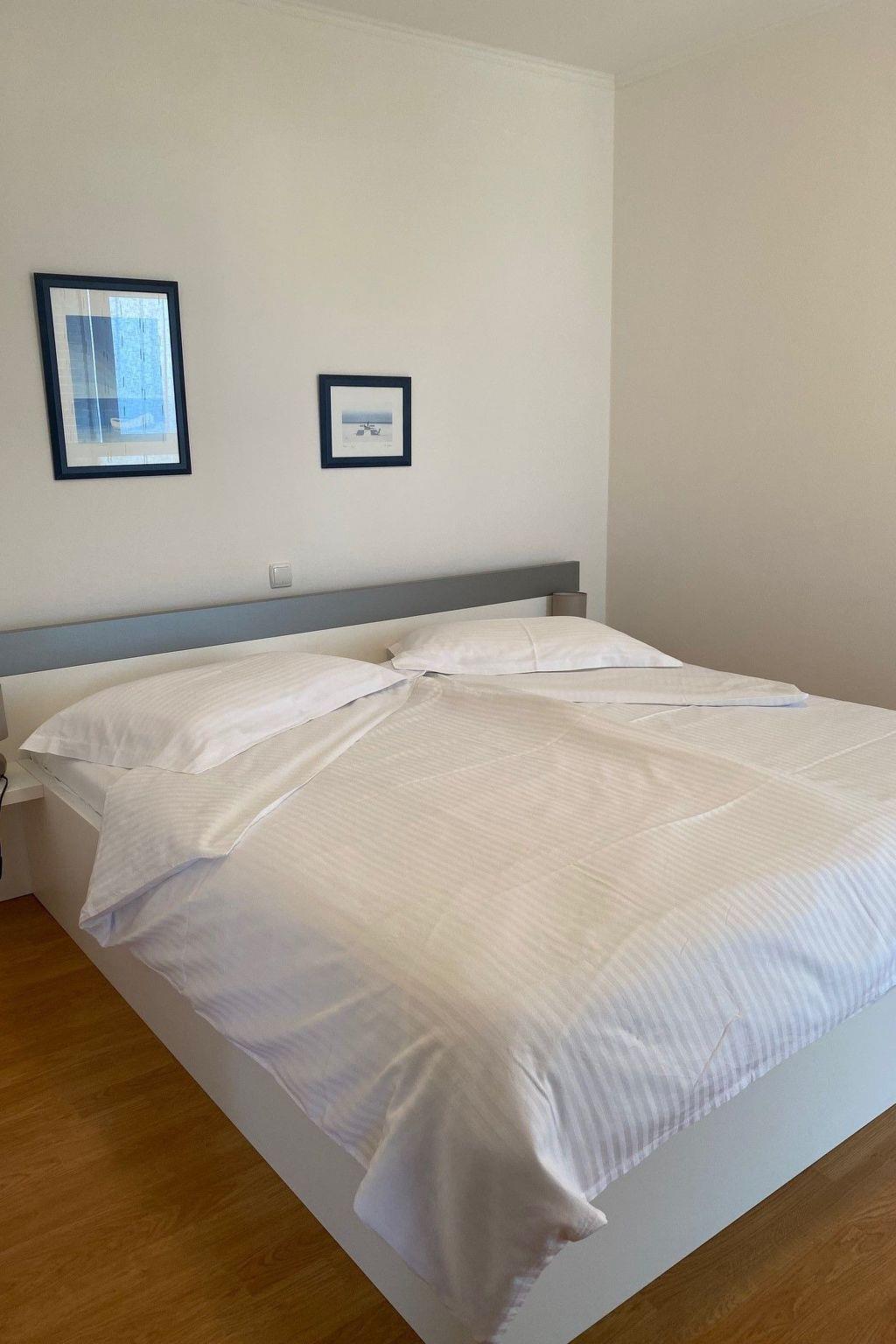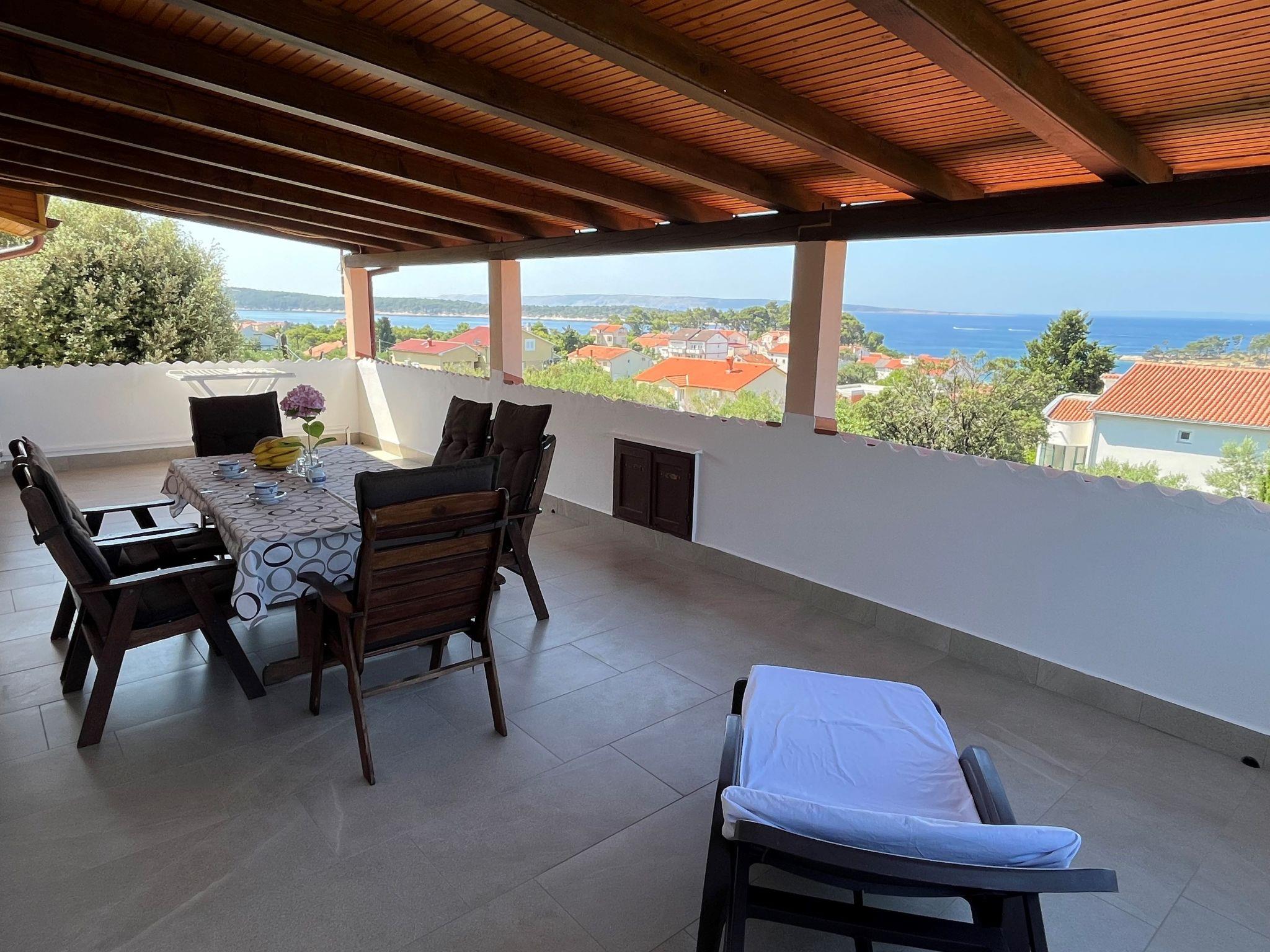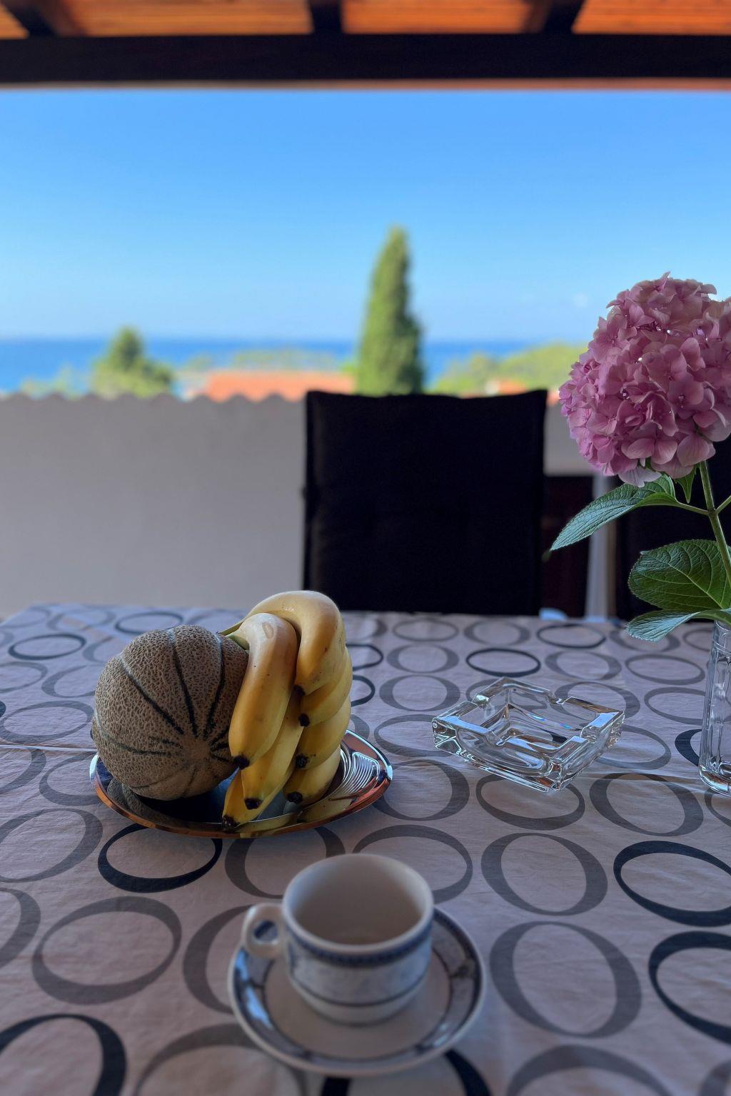 Die 125m2 große Wohnung verfügt über drei Schlafzimmer mit jeweils einem Doppelbett. In zwei Schlafzimmern kann ein Zusatzbett aufgestellt werden. Die Küche ist komplett ausgestattet mit 4-Platten-Herd, Ofen, Kaffeemaschine sowie Besteck und Geschirr. Das Wohn- und Esszimmer bietet noch eine Couch sowie einen Esstisch mit Stühlen für sechs bis acht Personen. Zudem sind ein Fernseher mit Sat.-TV, Klimaanlage und Internet verfügbar. Zwei Badezimmer mit Wanne bzw. Dusche stehen bereit. Die Terrasse mit dem herrlichen Ausblick verfügt über einen Tisch mit Stühlen sowie noch Liegestühlen.