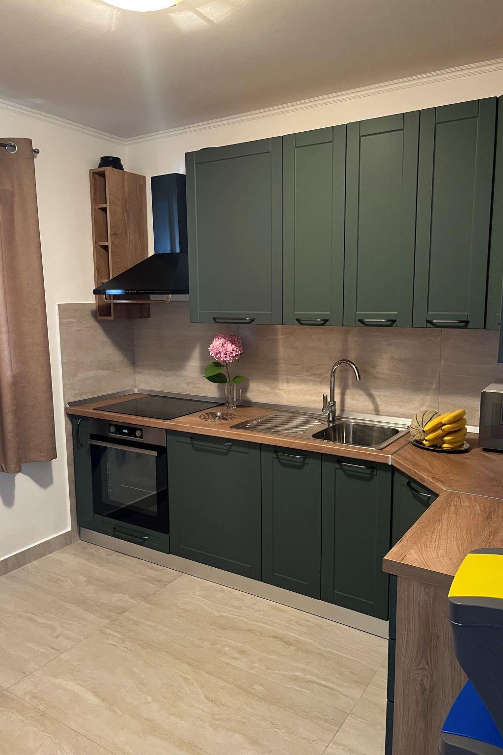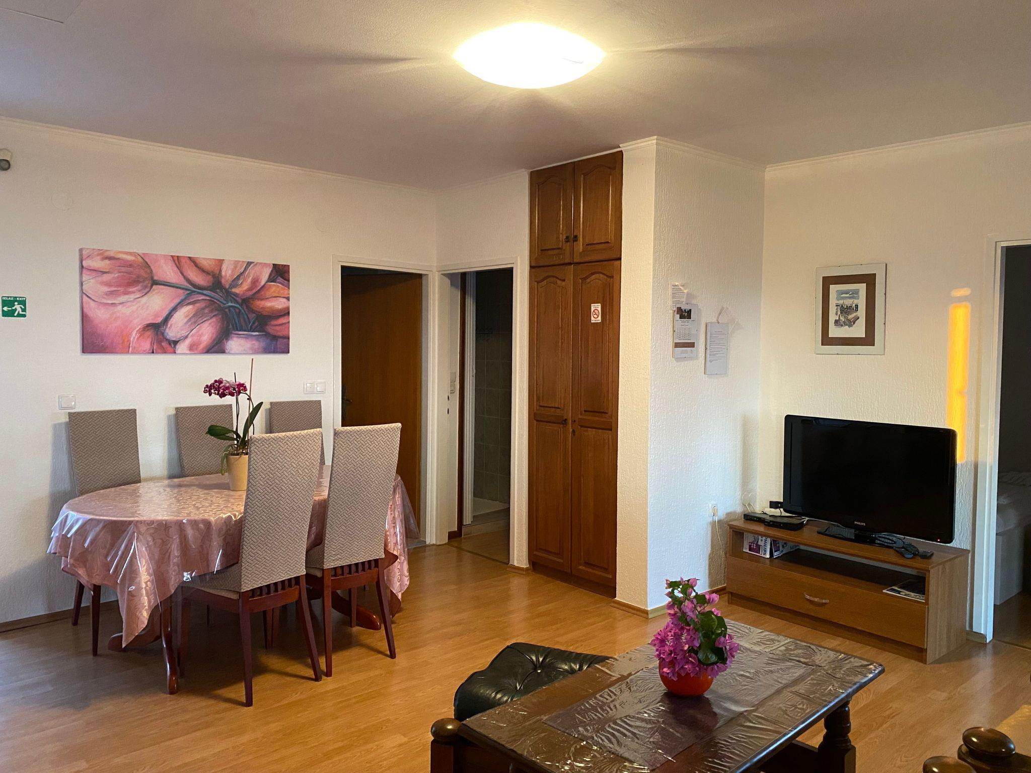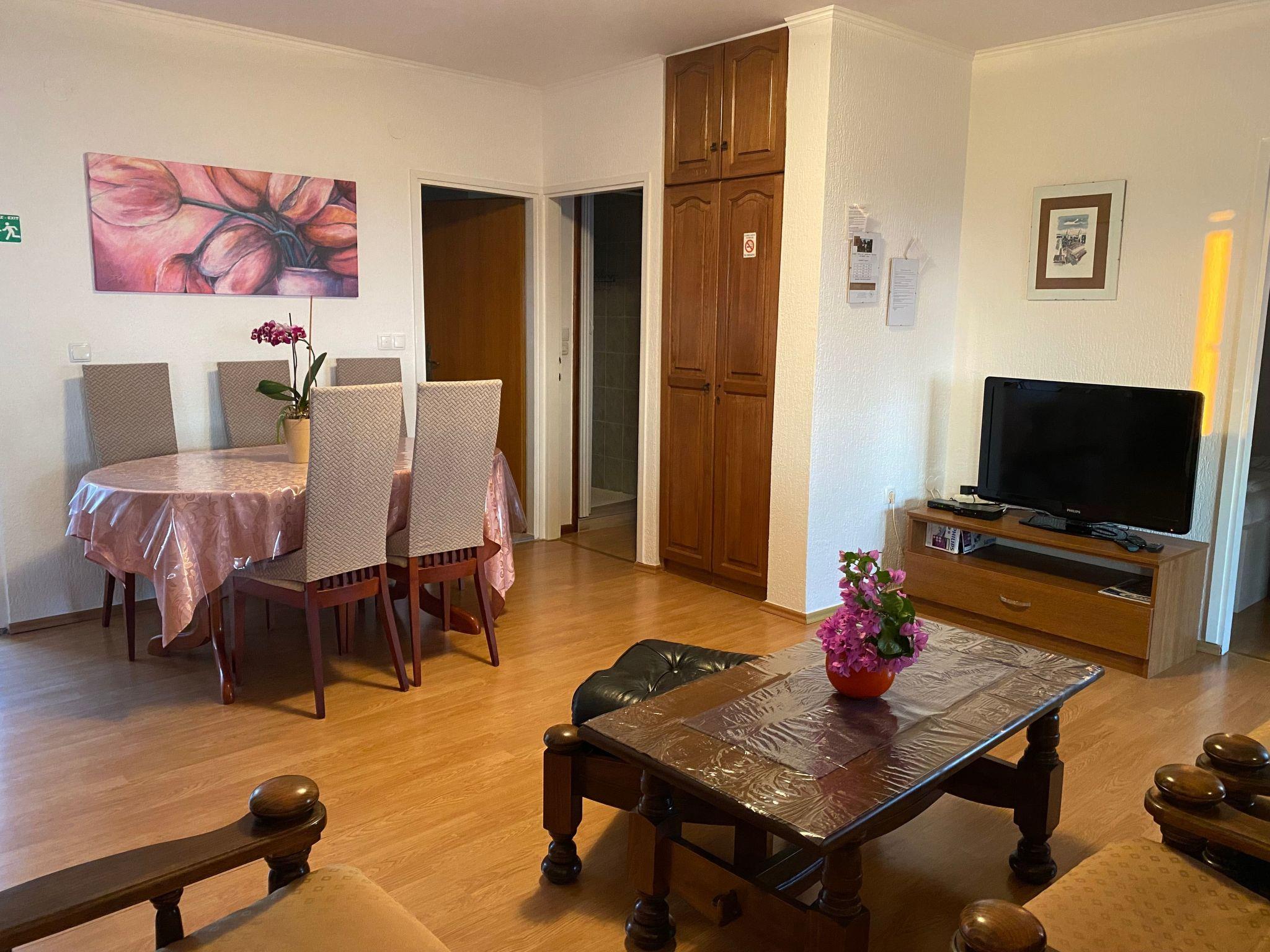 Die 125m2 große Wohnung verfügt über drei Schlafzimmer mit jeweils einem Doppelbett. In zwei Schlafzimmern kann ein Zusatzbett aufgestellt werden. Die Küche ist komplett ausgestattet mit 4-Platten-Herd, Ofen, Kaffeemaschine sowie Besteck und Geschirr. Das Wohn- und Esszimmer bietet noch eine Couch sowie einen Esstisch mit Stühlen für sechs bis acht Personen. Zudem sind ein Fernseher mit Sat.-TV, Klimaanlage und Internet verfügbar. Zwei Badezimmer mit Wanne bzw. Dusche stehen bereit. Die Terrasse mit dem herrlichen Ausblick verfügt über einen Tisch mit Stühlen sowie noch Liegestühlen.