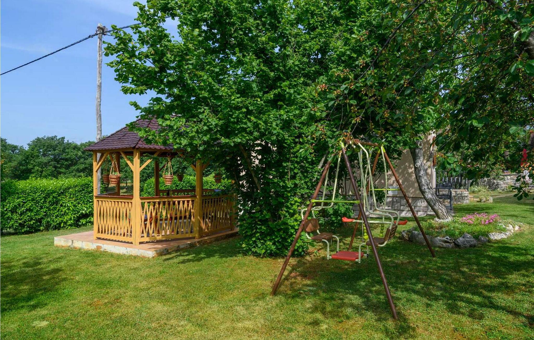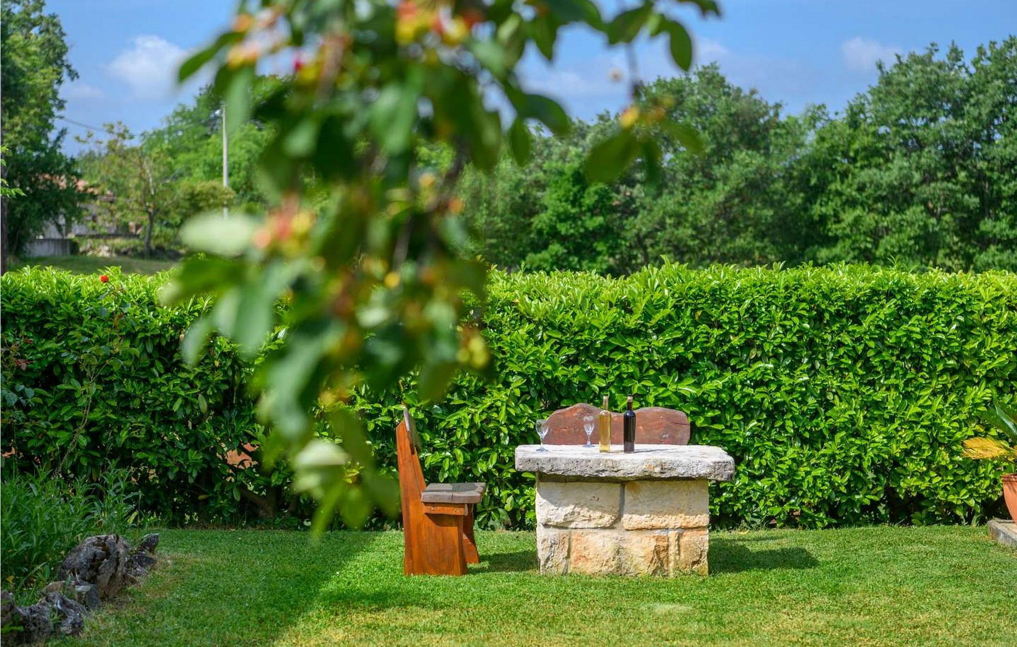 Im großzügigen Garten gibt es einen privaten Pool, Sonnenliegen, einen Holzkamin zum Kochen von Fleisch oder Fisch im Außenbereich, Gartenmöbel, Fußballtore, ein Badmintonnetz, einen Kinderspielplatz mit Schaukeln, mehrere Parkplätze und vieles mehr. Im Garten neben dem Haus gibt es einen Wald, in dem man auch bei größter Hitze Zuflucht im natürlichen Schatten finden kann.