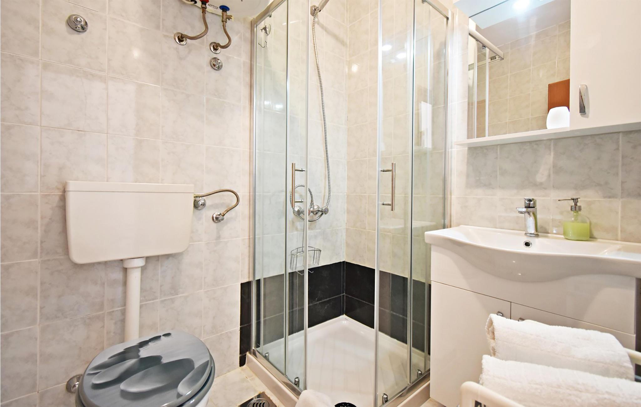 Badezimmer (nr. 1) - WC. Warmes und kaltes Wasser. Dusche