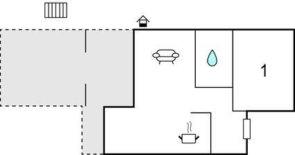 Wohnraum/Küche - 2 Schlafmöglichkeiten. (Einzelbett(en)).