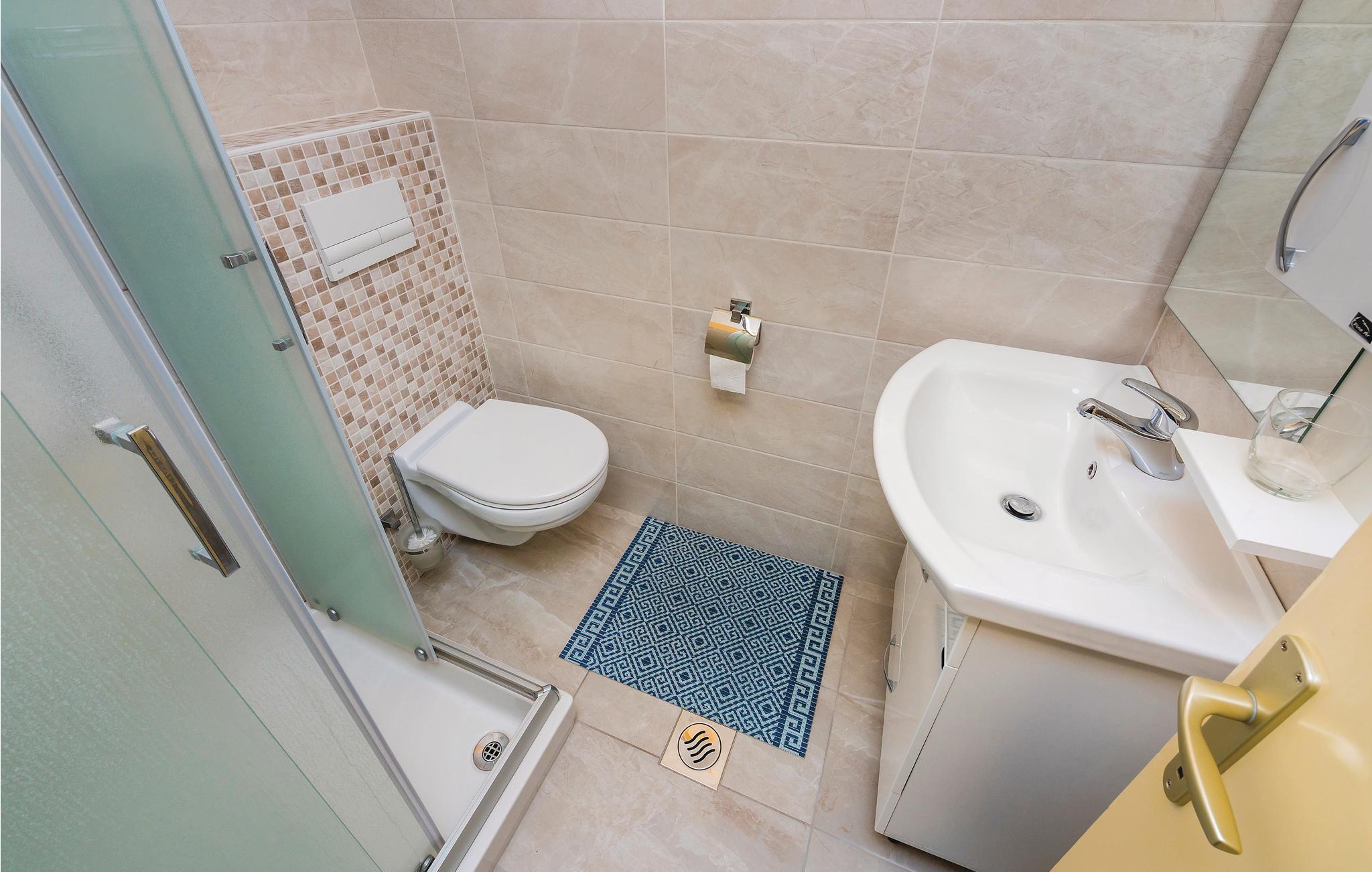Badezimmer (nr. 1) - WC. Warmes und kaltes Wasser. Dusche