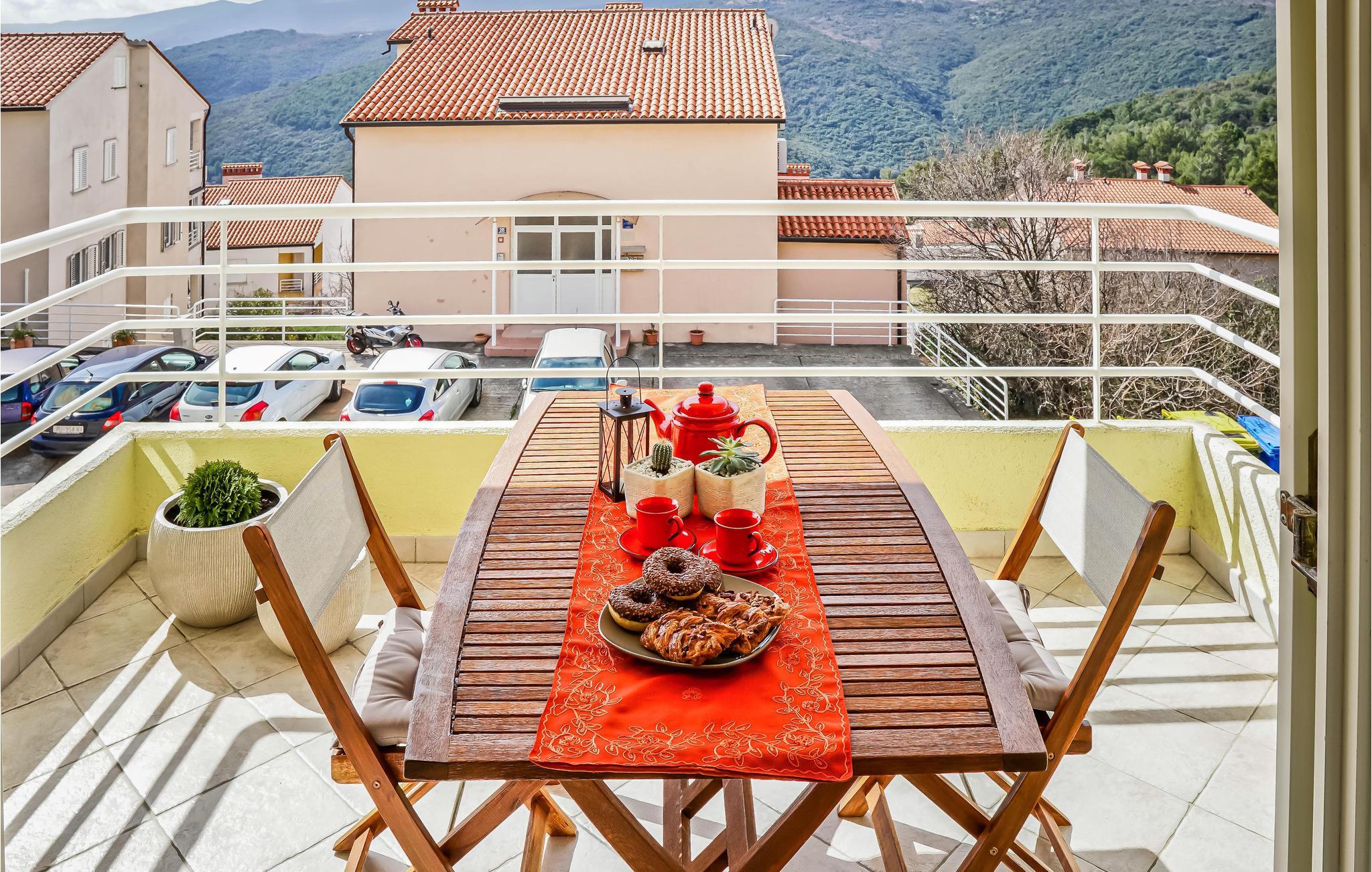 Willkommen in der schönen, modernen Wohnung in Rabac, einem beliebten Urlaubsziel, das für seine schönen Kiesstrände und das kristallklare Meer bekannt ist. Moderne und helle Innenräume in freundlichen Farben sorgen für einen angenehmen Urlaub. Genießen Sie das Frühstück auf der überdachten Terrasse, oder lassen Sie hier einen erlebnisreichen Tag mit kalten Getränken ausklingen.