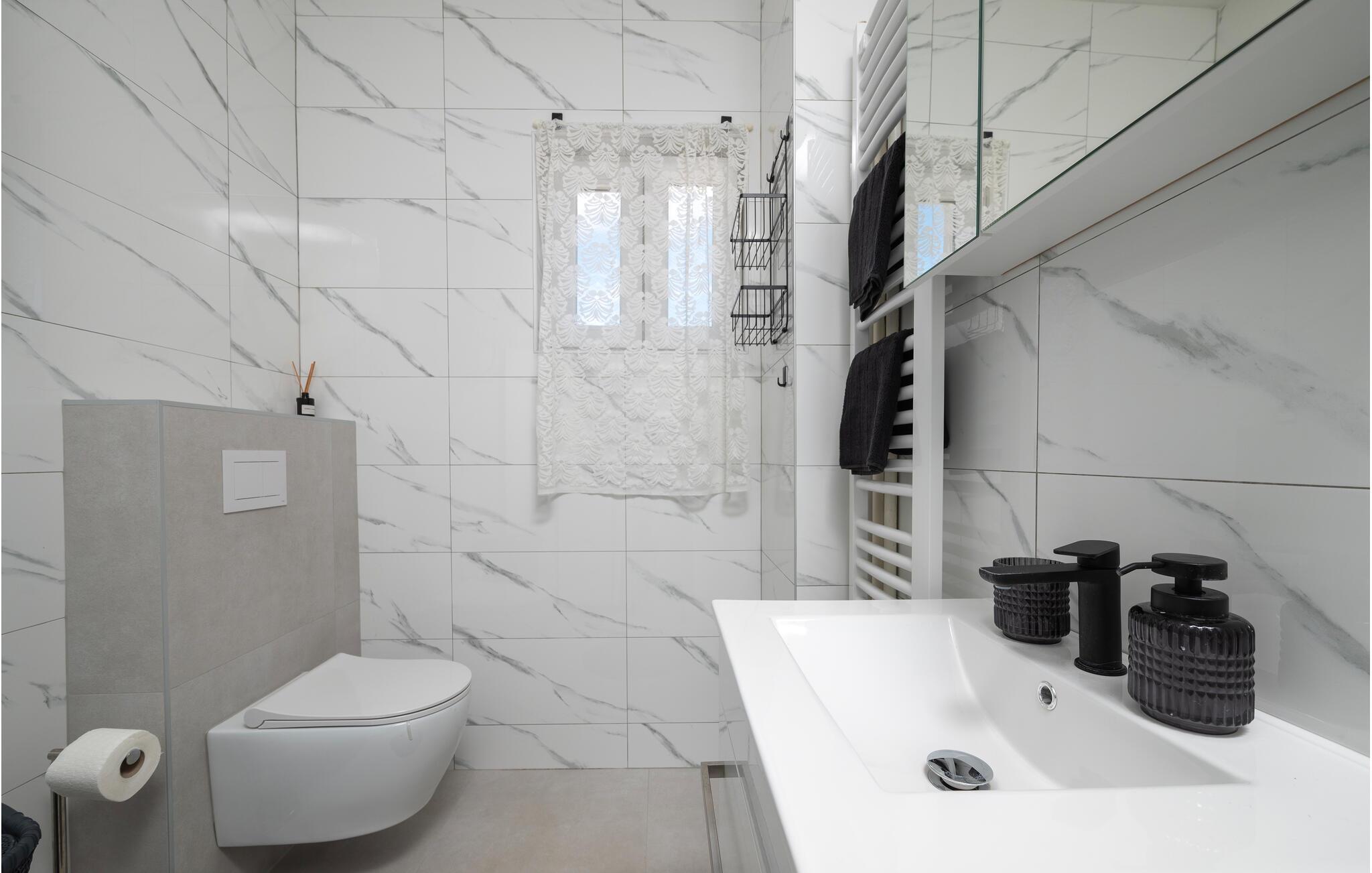 Badezimmer 5m2 (nr. 1) - WC. Warmes und kaltes Wasser. Dusche