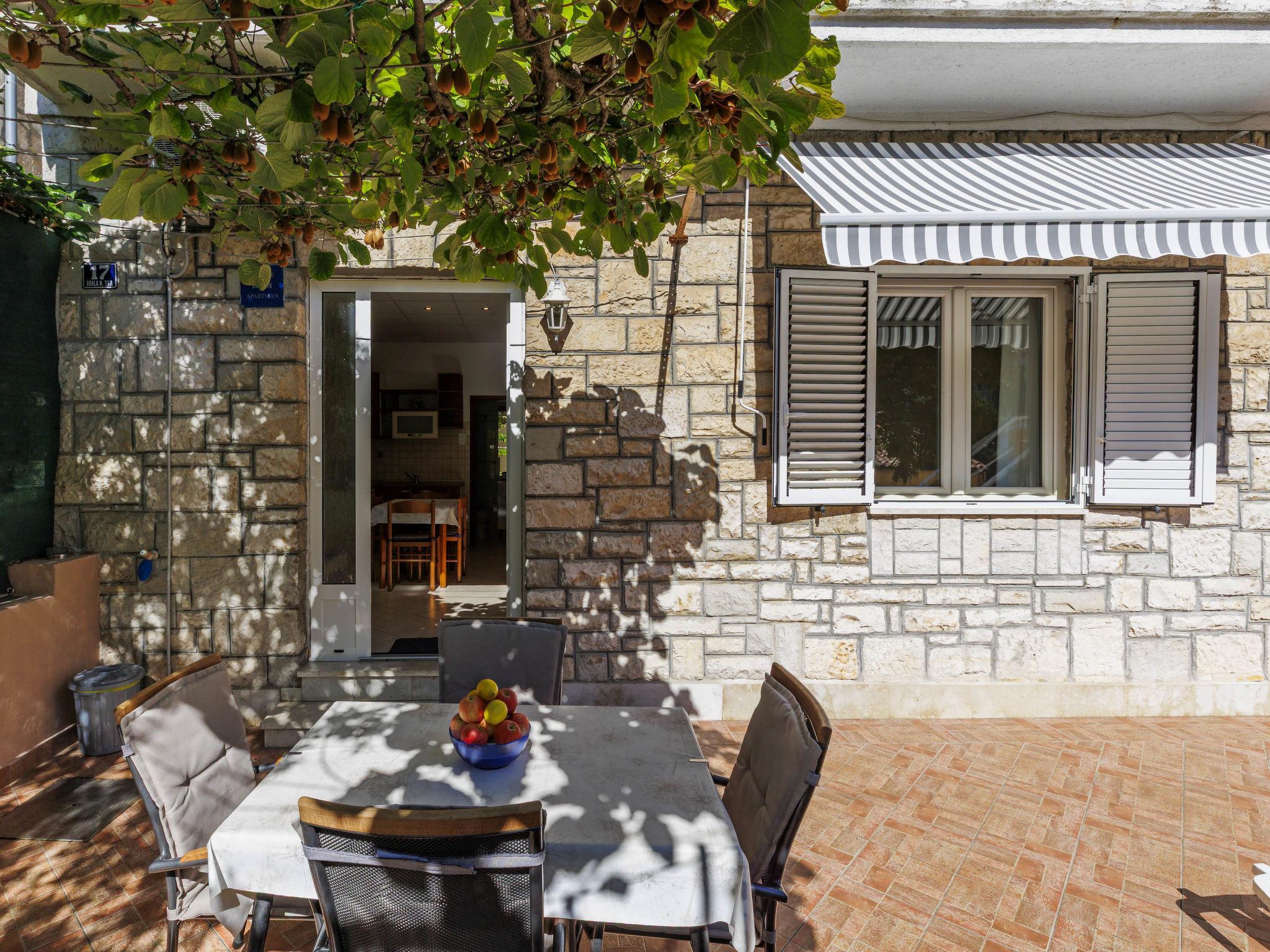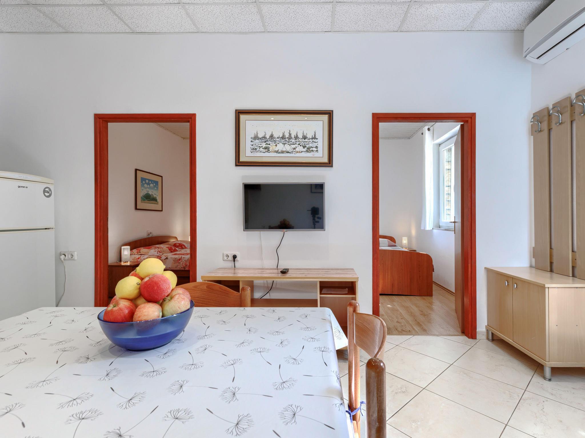 "Lidija", 3-Zimmer-Wohnung 38 m2, im Erdgeschoss. Zweckmässig eingerichtet: Wohn-/Esszimmer mit Esstisch, Sat-TV und Klimaanlage. Ausgang zur Terrasse. 2 Zimmer, jedes Zimmer mit 1 franz. Bett. Offene Küche (4 Kochplatten, Backofen, Tiefkühler, elektrische Kaffeemaschine). Dusche/WC. E-Heizung. Terrasse 25 m2. Terrassenmöbel, Liegestühle (2). Bitte beachten: Nichtraucher-Haus. Istarska zupanija Ispostava Labin Ur.broj 2163-09/