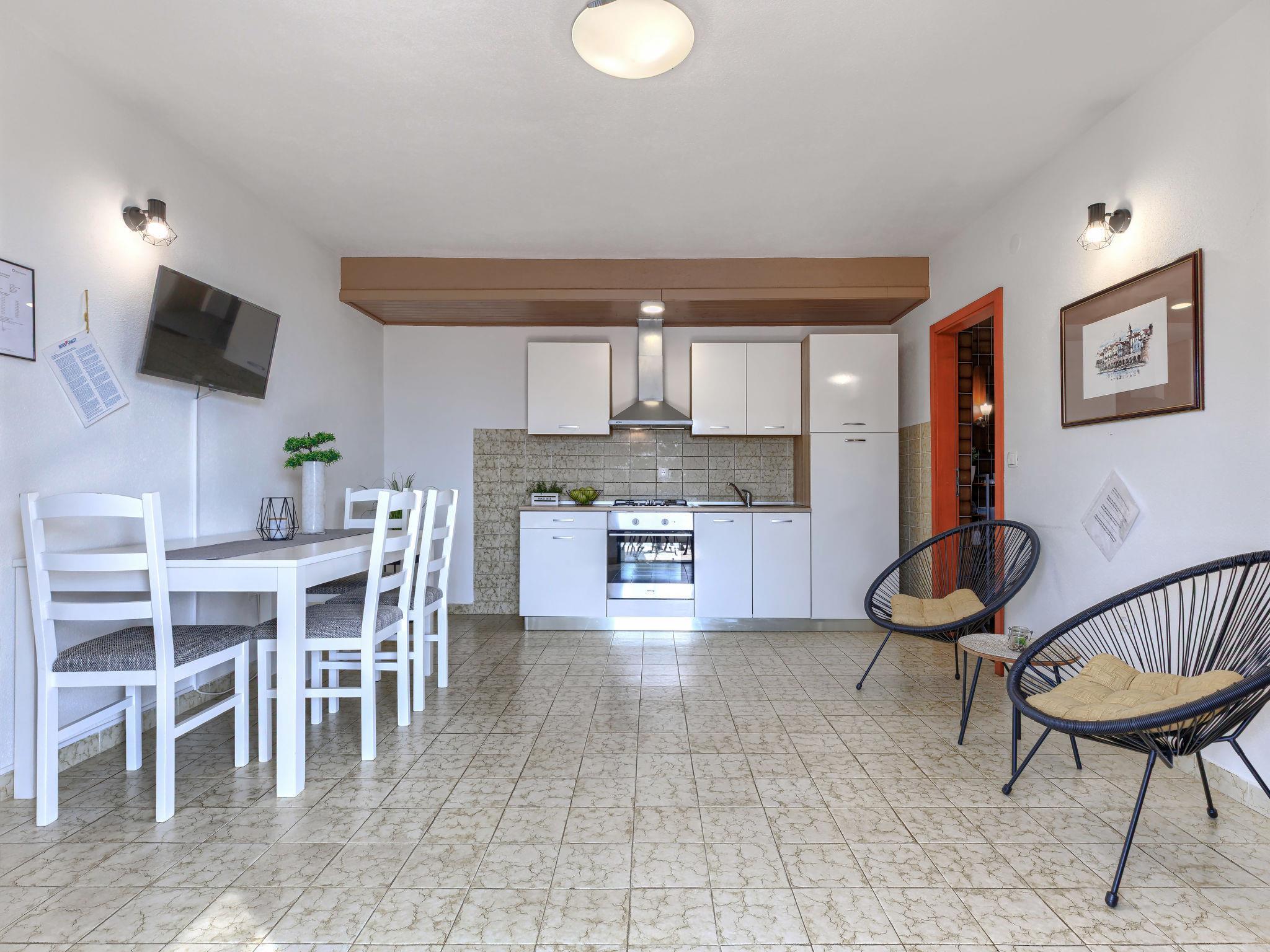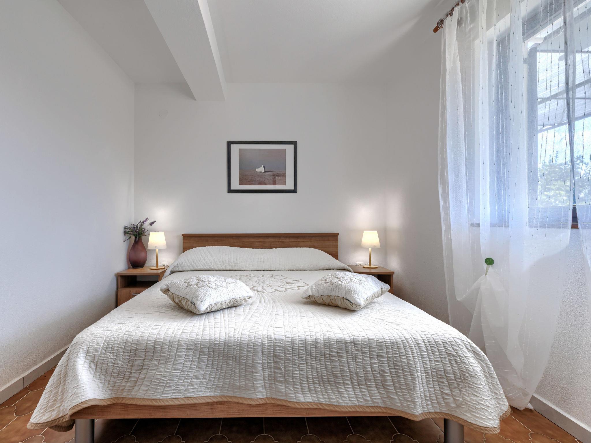 "Katarina", 3-Zimmer-Wohnung 55 m2, im Erdgeschoss. Wohn-/Esszimmer mit Sat-TV und Klimaanlage. Ausgang zur Terrasse. 1 Zimmer mit 1 franz. Bett (160 cm, Länge 200 cm). 1 Zimmer mit 2 Betten. Offene Küche (1 Kochplatte, Backofen, 3 Flammen, Toaster, Wasserkocher, elektrische Kaffeemaschine). Dusche/WC. Keine Heizmöglichkeit. Terrasse 15 m2. Terrassenmöbel, Gartengrill (mobil), Liegestühle (2). Sicht auf das Meer. Zur Verfügung: Internet (Wireless LAN, gratis). Bitte beachten: Nichtraucher-Haus. Eigener Eingang.