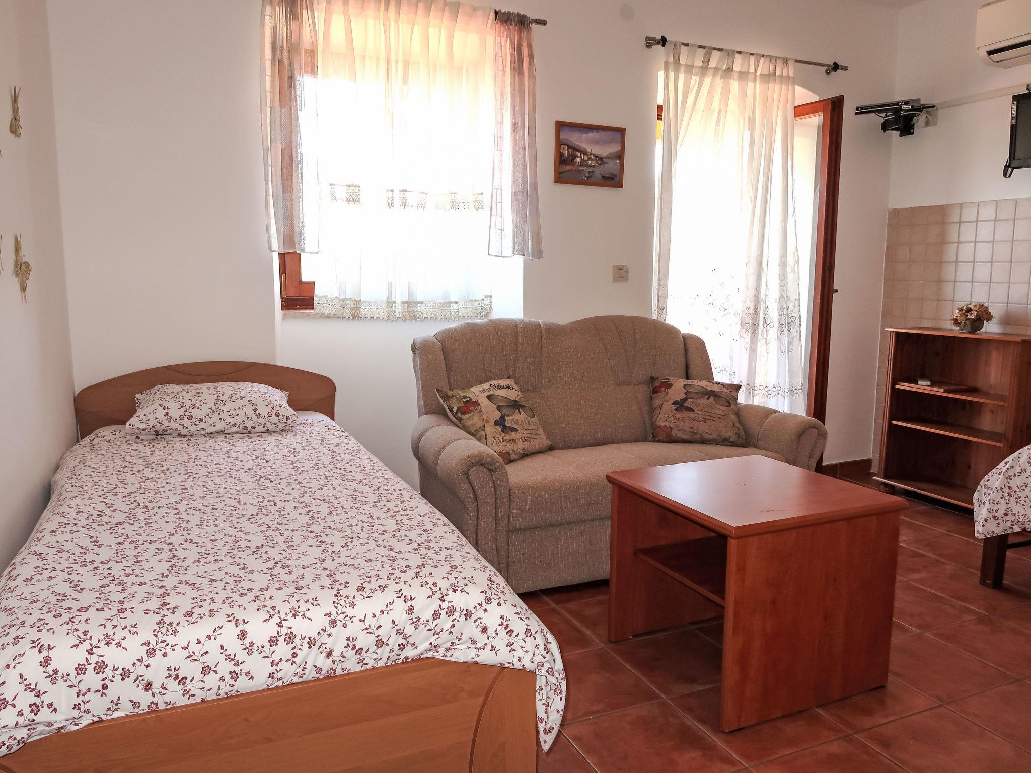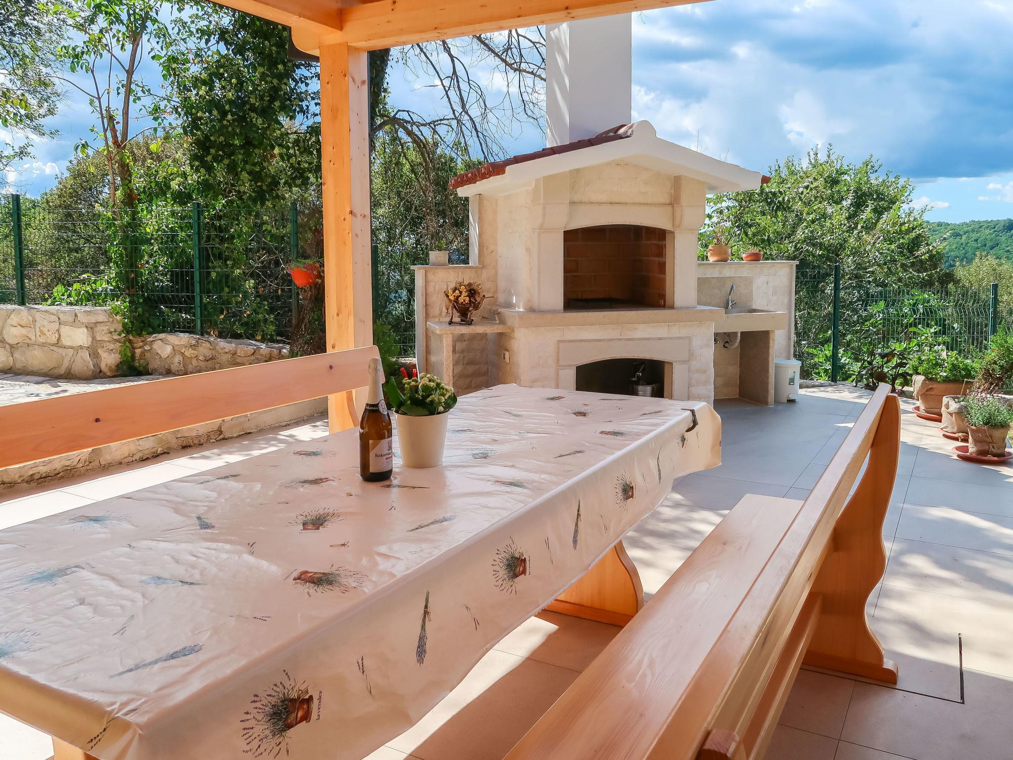 Einfamilienhaus "Marija", auf 2 Stockwerken. Oberhalb von Rabac, im Weiler Ripenda, 4 km vom Zentrum von Labin, 5 km vom Zentrum von Rabac, 4.6 km vom Meer, 4.6 km vom Strand. Zur Alleinbenutzung: Grundstück 2'000 m2 mit Pflanzen und Bäumen, Schwimmbad eckig (7 x 3 m, 25 m2, 120 cm tief, saisonale Verfügbarkeit: 03.Apr. - 30.Okt.). Tischtennis, Volleyball, Pergola, Gartenmöbel, Grill (Schaukel). Im Hause: Internetzugang, Waschmaschine. Parkplatz (für 4 Autos) auf dem Grundstück. Einkaufsgeschäft 4 km, Restaurant 1.6 km, Bushaltestelle 3.6 km, Kieselstrand 4.6 km, Felsstrand 4.6 km. Bitte beachten: Ein Teil des Hauses ist geschlossen und nicht bewohnt. Flugplatz 50 km vom Haus. Das Haus besteht aus 2 Wohnungen vermietet als eine Einheit : eine Wohnung im Erdgeschoss und eine Wohnung im ersten Stock.