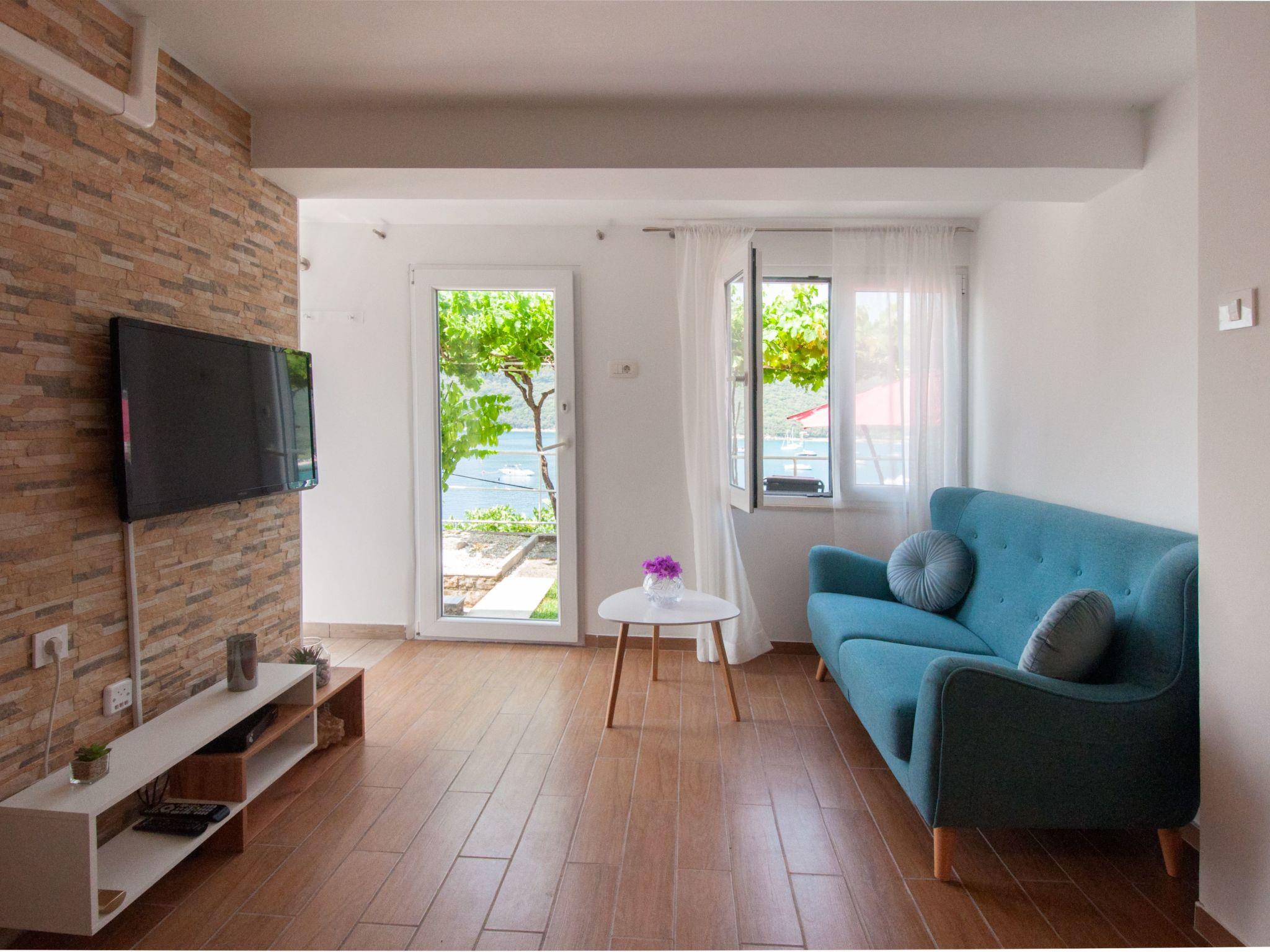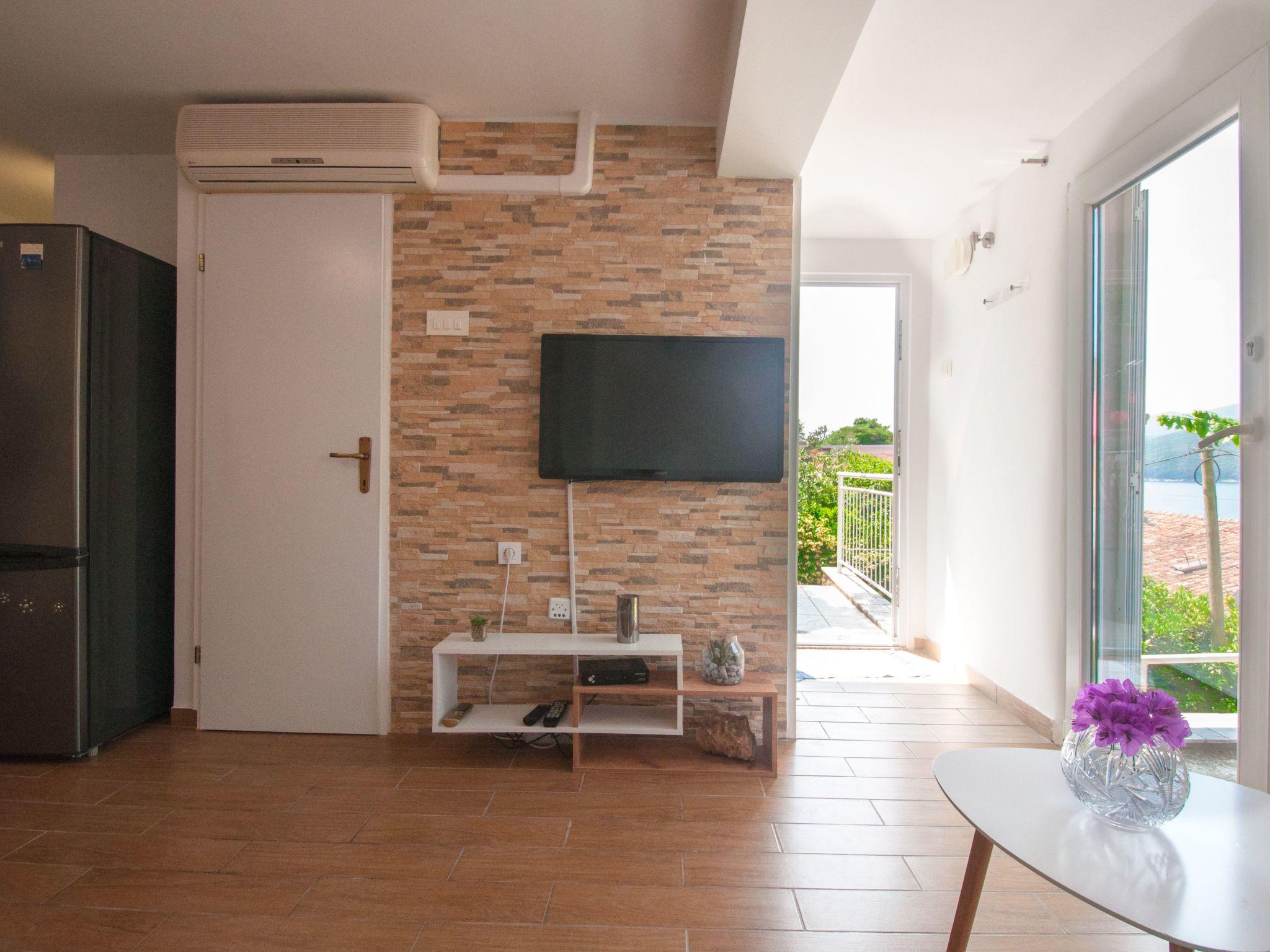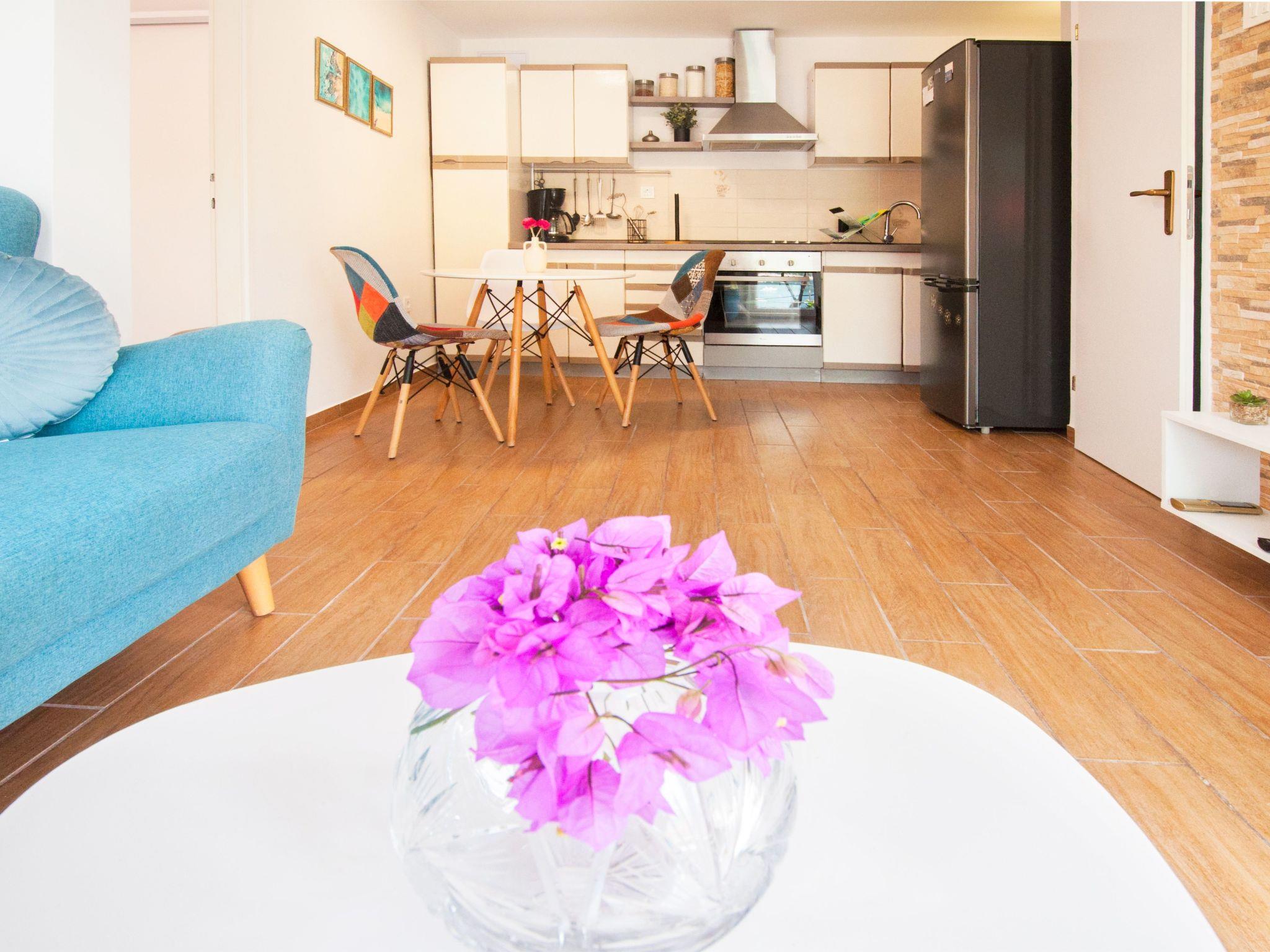 Im Inneren ist die Wohnung mit den wichtigsten Annehmlichkeiten ausgestattet, um einen angenehmen Aufenthalt zu gewährleisten. Es verfügt über ein Schlafzimmer und ein Badezimmer mit Dusche, das perfekt auf die Bedürfnisse eines Paares abgestimmt ist. Die Küchenzeile ist mit einem 2-Platten-Herd, einer Filterkaffeemaschine und einem Wasserkocher ausgestattet, so dass die Gäste einfache Mahlzeiten leicht zubereiten können. Obwohl der Wohnbereich kompakt ist, ist er durchdacht eingerichtet, um den Platz und den Komfort zu maximieren, und ein Teil der Wohnung ist klimatisiert, um Ihren Komfort in den wärmeren Monaten zu gewährleisten.