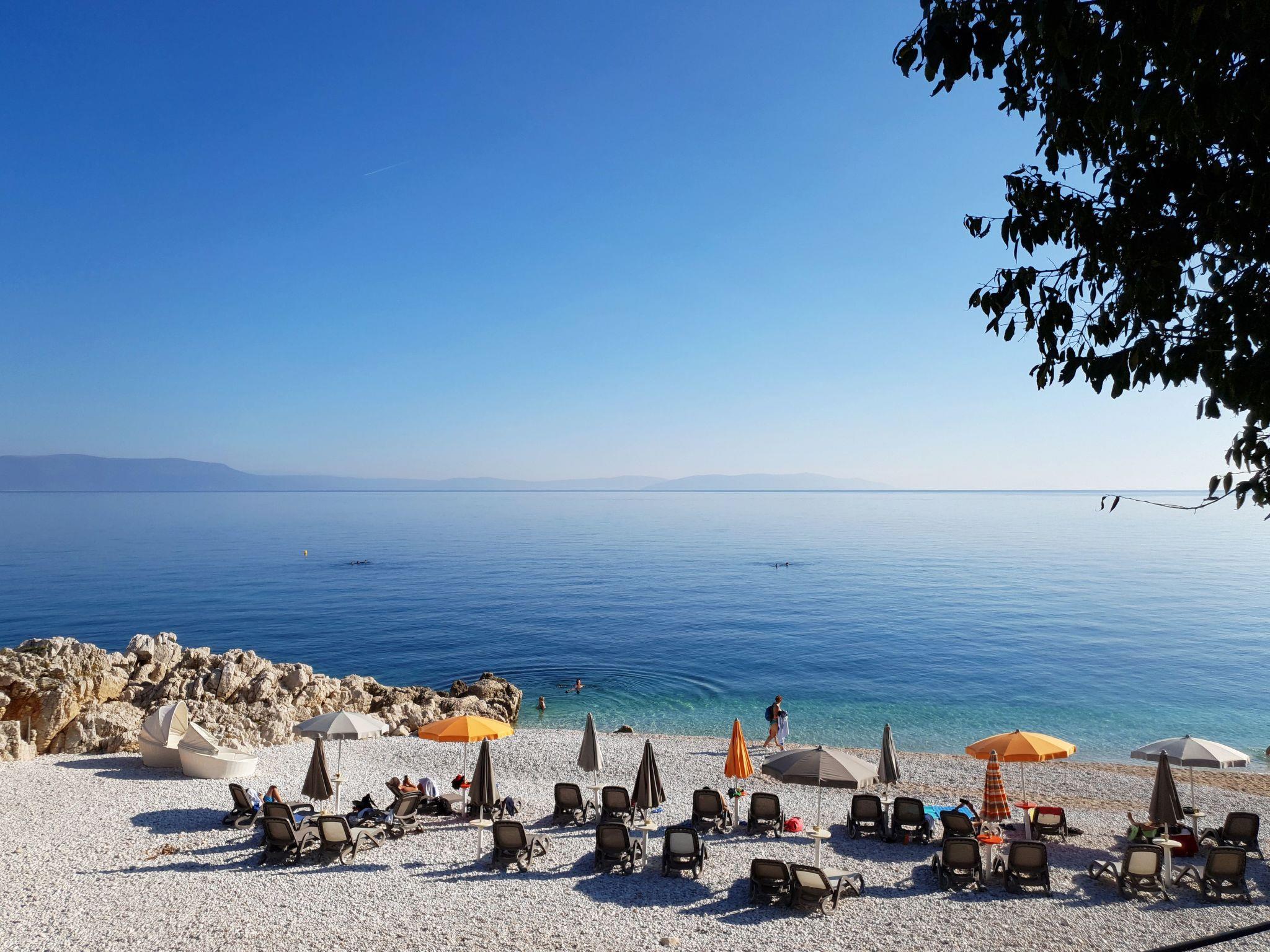 Der Außenbereich des Apartments besticht durch seinen Balkon mit Meerblick, auf dem Sie in aller Ruhe Ihren Morgenkaffee genießen oder die Abendbrise genießen können. Dieser Außenbereich ist der perfekte Aussichtspunkt, um den atemberaubenden Blick auf die Bucht von Rabac und den nahe gelegenen Strand zu genießen. Zwar gibt es keinen Garten oder Pool, aber der Balkon ist ein schöner Ort, um sich zu entspannen und die natürliche Schönheit der Umgebung zu genießen.