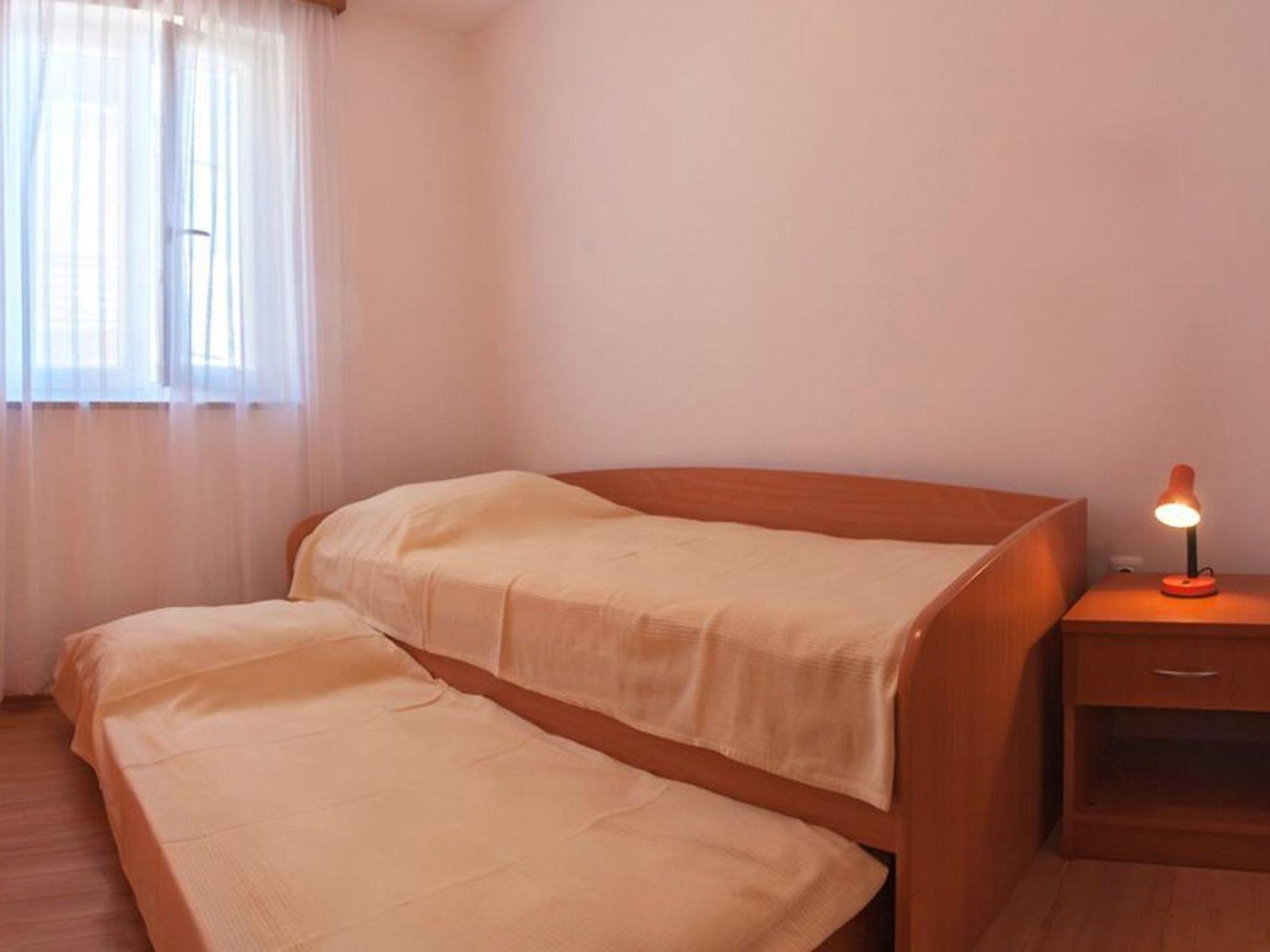 Im Inneren ist die Wohnung so eingerichtet, dass bis zu 4 Personen bequem Platz finden. Ein Schlafzimmer verfügt über ein Doppelbett, während das andere mit 2 Einzelbetten ausgestattet ist, die beide für erholsame Nächte sorgen. Der Wohnbereich ist mit der Küche kombiniert, in der Sie alle notwendigen Geräte finden, darunter einen Herd, einen Kühlschrank mit Gefrierfach, eine Kaffeemaschine, eine Mikrowelle sowie Koch- und Essgeschirr, so dass die Zubereitung von Mahlzeiten ein Kinderspiel ist. Eine Dusche und eine Toilette ergänzen die Ausstattung, so dass alle Ihre Bedürfnisse erfüllt werden.