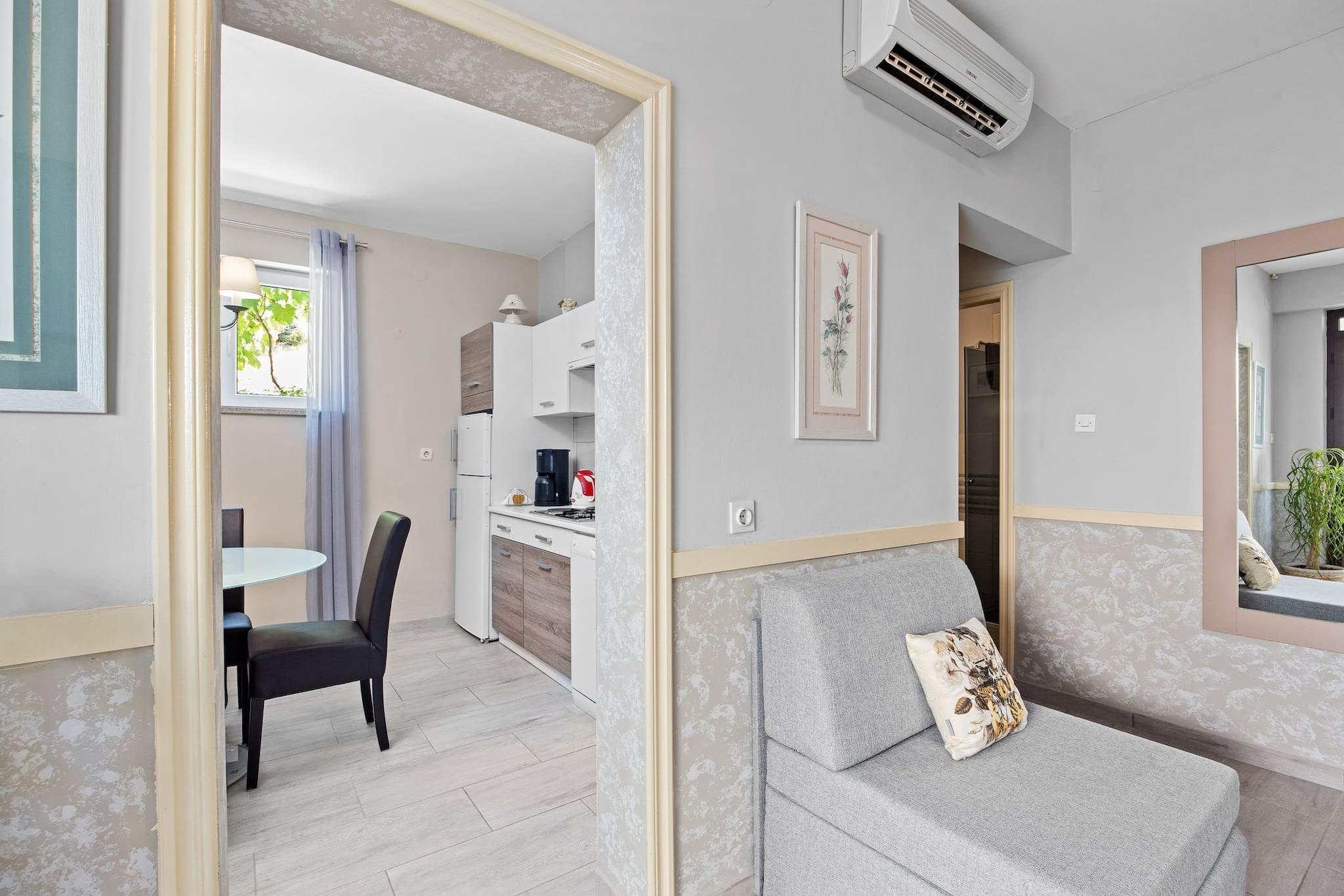 Das stilvolle Apartment Lady M White im malerischen Rabac bietet Platz für bis zu vier Gäste. Es verfügt über einen großzügigen Balkon mit Panoramablick auf das Meer, eine voll ausgestattete Küche mit Essbereich und ein eigenes Bad. Ein Schlafzimmer ist mit einem Doppelbett, die anderen beiden mit Einzelbetten ausgestattet – ideal für Familien oder kleine Gruppen. Zur Ausstattung gehören Klimaanlage, kostenloses WLAN, Sat-TV (englische Sender) und Parkplätze auf dem Gelände. Nur 400 Meter vom Strand, einem Lebensmittelgeschäft und dem beliebten Restaurant Rapcanka entfernt, bietet das Apartment Komfort und Ruhe. Die mit der Blauen Flagge ausgezeichneten Strände von Rabac – Maslinica, Sv. Andrea, Lanterna und Girandella – laden zum Schwimmen und Sonnenbaden ein. Die Strandpromenade lädt zum Radfahren, Joggen oder Skaten ein. Gäste können außerdem in der Nähe Aktivitäten wie Tauchen, Tennis, Bootsverleih und Jetskifahren nachgehen. Ob Sie auf dem Balkon entspannen oder die Küste erkunden – dieses Apartment bietet einen unvergesslichen Urlaub in Istrien.