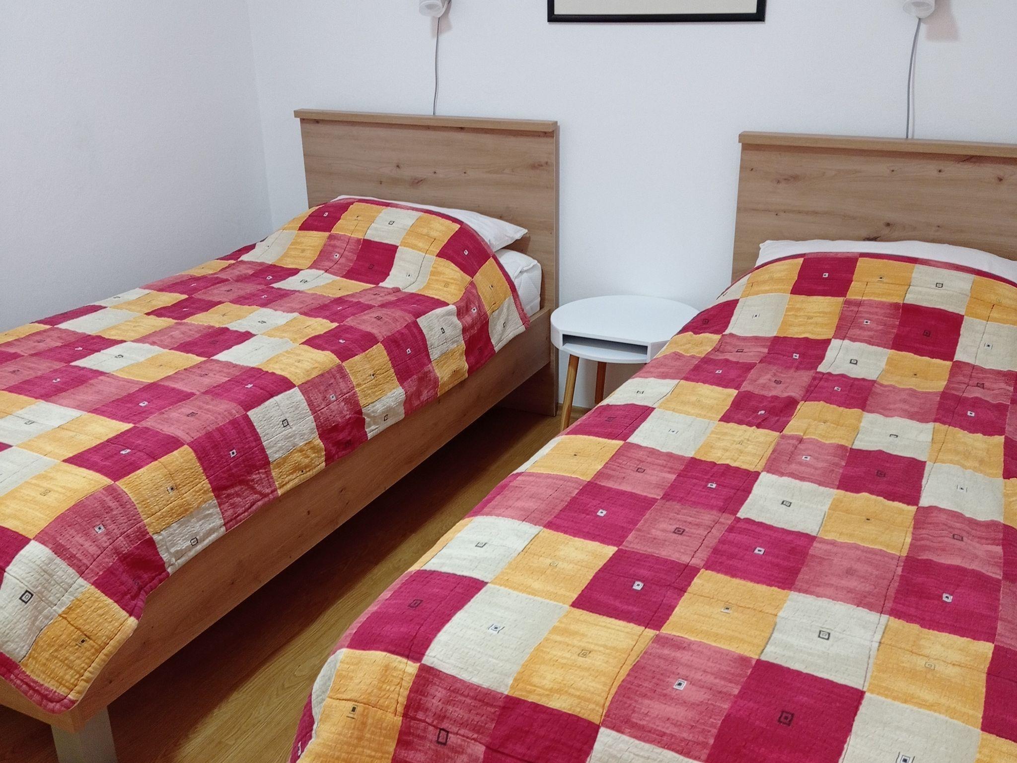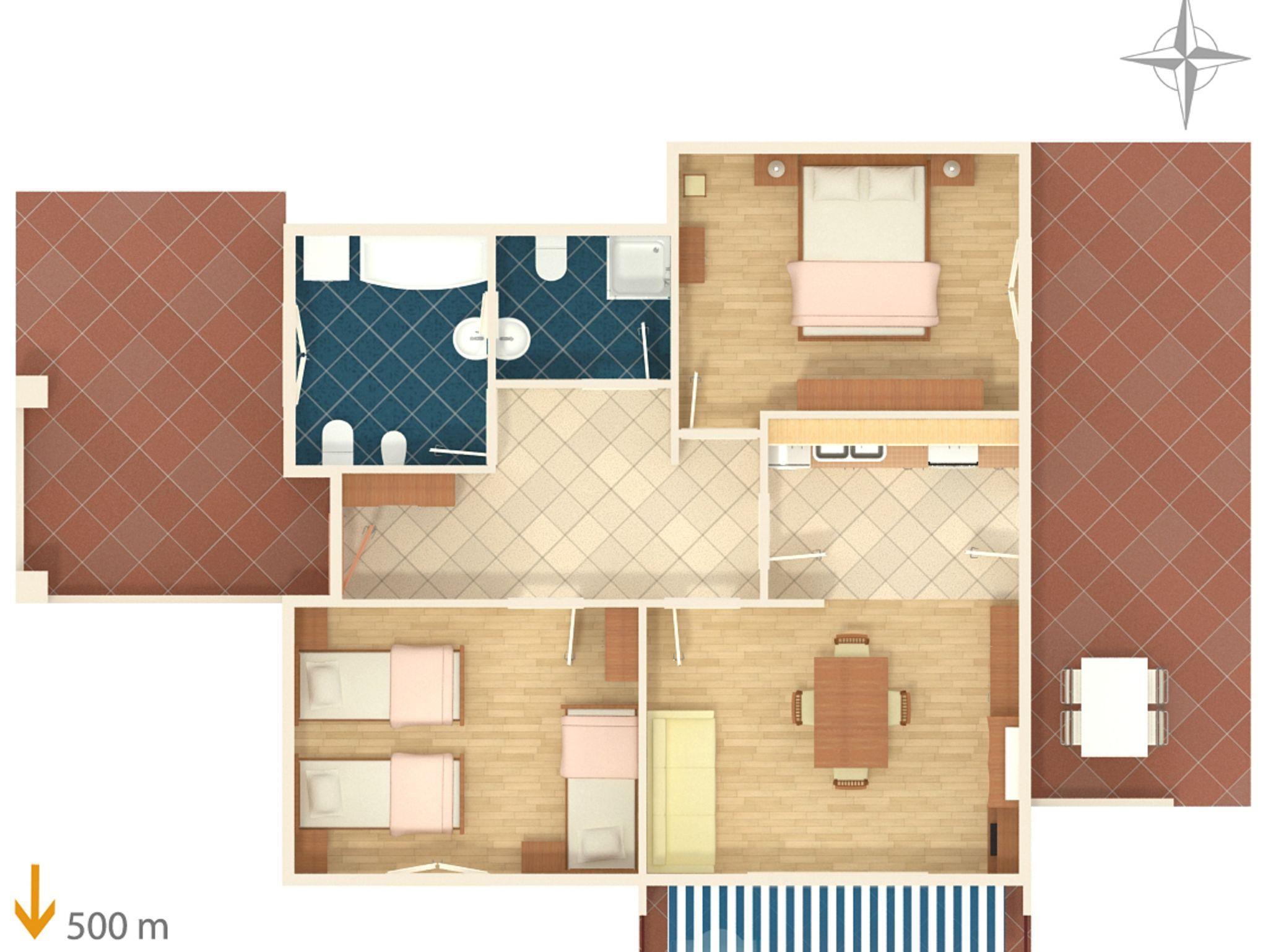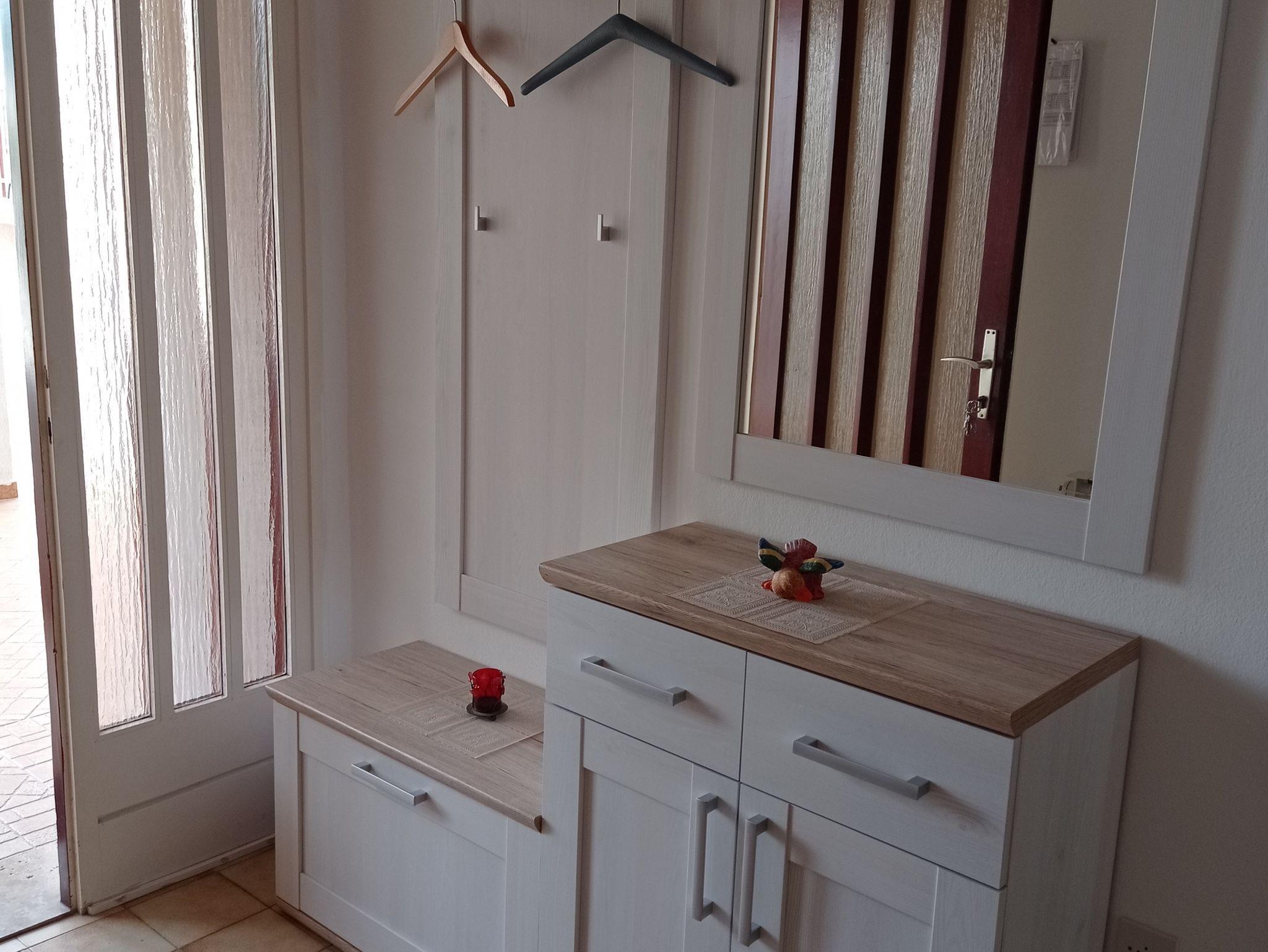 Ferienwohnung bietet Platz für 5 Gäste. Die Betten sind in Schlafzimmern, die es 2 gibt, innerhalb einer Gesamtfläche von 66m2, angeordnet. Die Gäste haben eine eigene Terrasse zur Verfügung, auf der sie in warmen Sommernächten genießen können. Das Apartment bietet Meerblick. Es ist erlaubt, Speisen auf dem Gemeinschafts-Grill vorzubereiten. IM PREIS INBEGRIFFEN: Kurtaxe, Endreinigung, Parkplatz, Garage, Internet, Kinderbett, Bügeleisen, tragbarer Grill. VERBINDLICHE ZUSÄTZLICHE KOSTEN: Aufzahlung für Kurzaufenthalte (prozentualer Zuschlag pro Nächtigungsanzahl: 30% - 1, 20% - 2, 10% - 3). UNVERBINDLICHE ZUSÄTZLICHE KOSTEN: Klimatisierung (7,00 € pro Nacht), Zentralheizung (5,00 € pro Nacht). Die Verfügbarkeit zusätzlicher Dienstleistungen in Ihrem reservierten Termin und die Preise derselben (falls nicht aufgeführt) müssen im Voraus überprüft werden. Zusätzliche Dienstleistungen die in der Zahlungsaufforderung nicht aufgeführt sind werden direkt beim Vermieter bezahlt, angenommen der Gast nutzt auch diese.