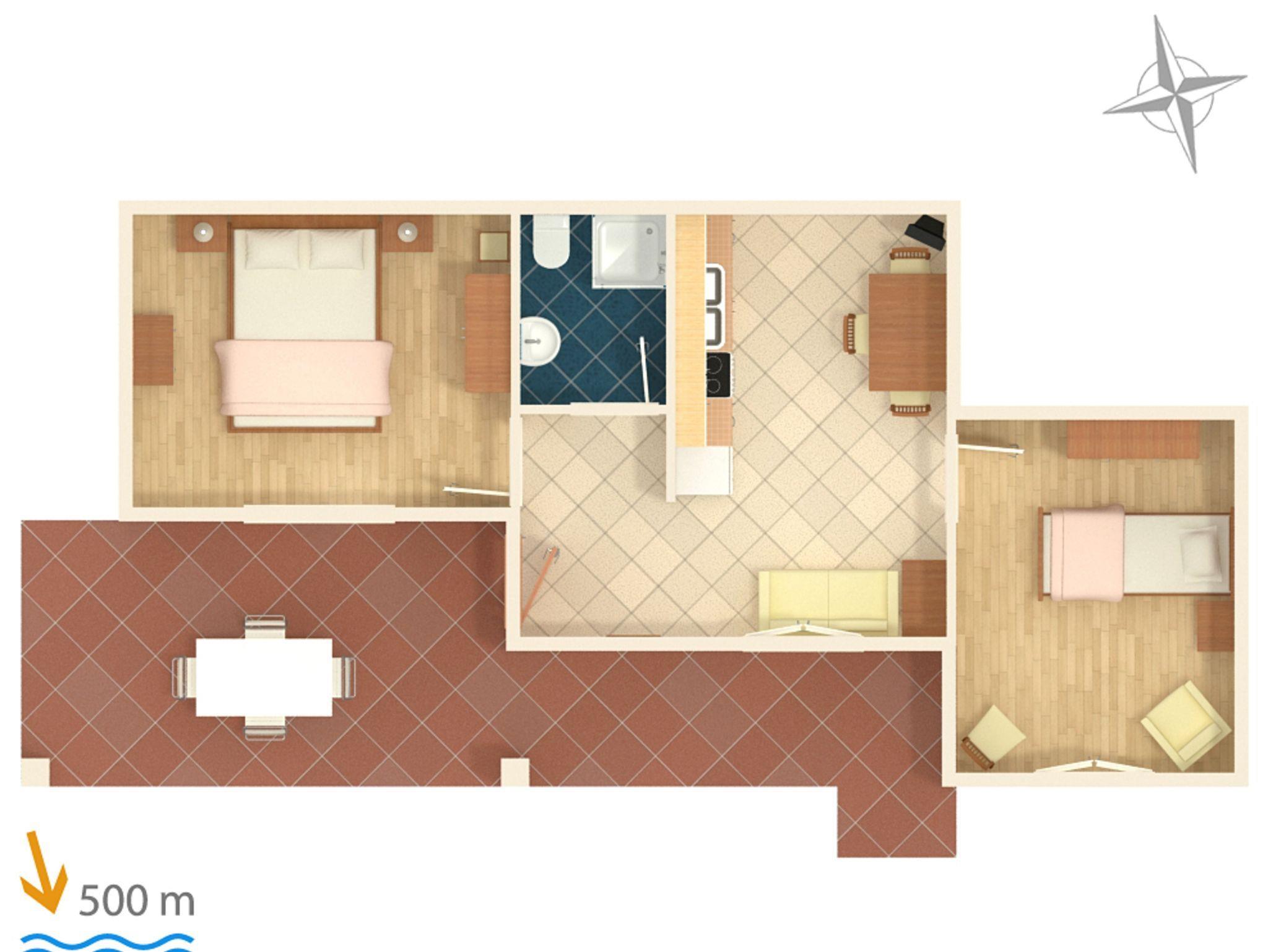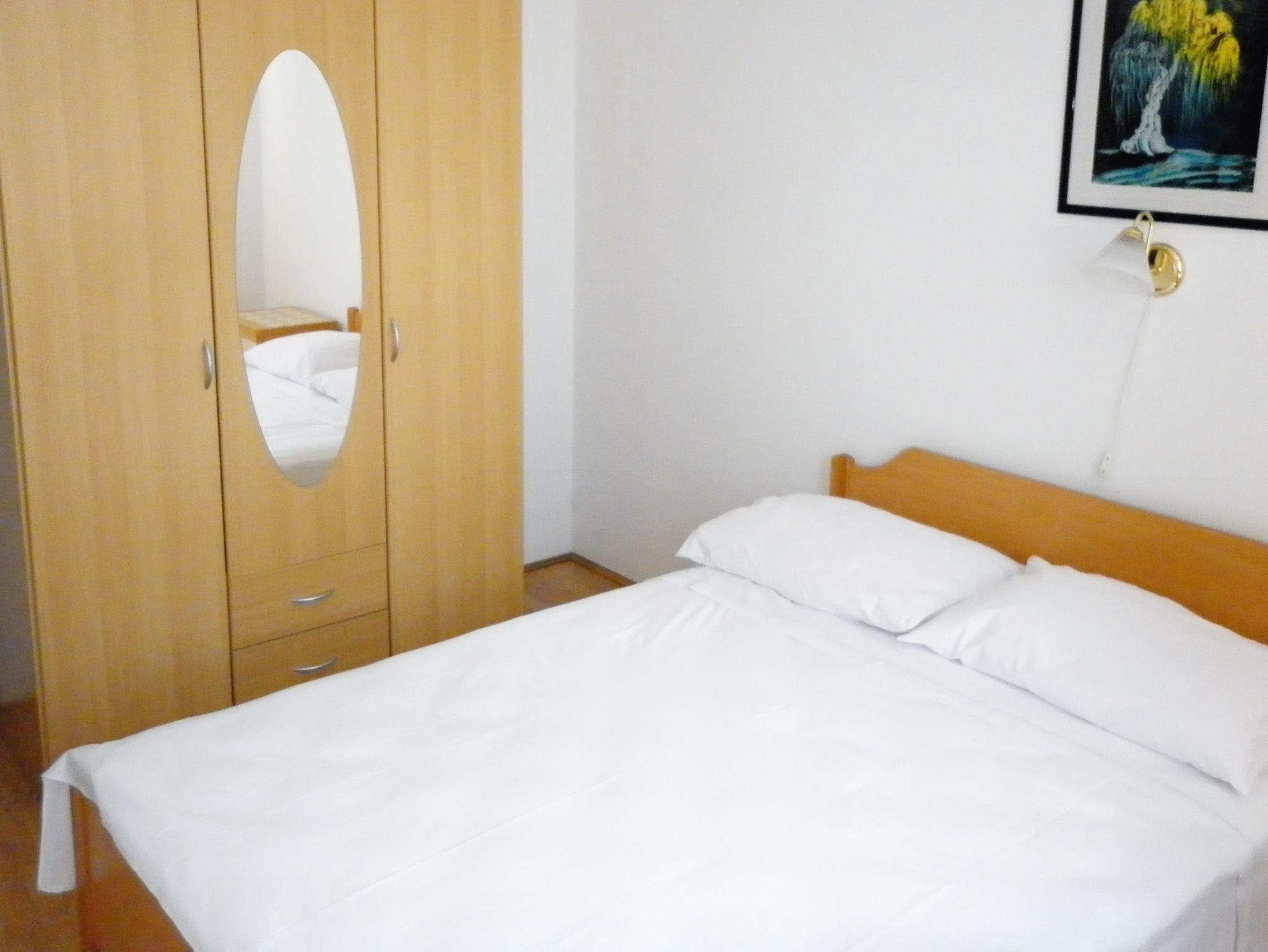 Ferienwohnung bietet Platz für 4 Gäste. Die Betten sind in Schlafzimmern, die es 2 gibt, innerhalb einer Gesamtfläche von 41m2, angeordnet. Die Gäste haben eine eigene Terrasse zur Verfügung, auf der sie in warmen Sommernächten genießen können. Das Apartment bietet Meerblick. Es ist erlaubt, Speisen auf dem Gemeinschafts-Grill vorzubereiten. IM PREIS INBEGRIFFEN: Kurtaxe, Endreinigung, Parkplatz, Garage, Internet, Kinderbett, Bügeleisen, tragbarer Grill. VERBINDLICHE ZUSÄTZLICHE KOSTEN: Aufzahlung für Kurzaufenthalte (prozentualer Zuschlag pro Nächtigungsanzahl: 30% - 1, 20% - 2, 10% - 3). UNVERBINDLICHE ZUSÄTZLICHE KOSTEN: Klimatisierung (7,00 € pro Nacht). Die Verfügbarkeit zusätzlicher Dienstleistungen in Ihrem reservierten Termin und die Preise derselben (falls nicht aufgeführt) müssen im Voraus überprüft werden. Zusätzliche Dienstleistungen die in der Zahlungsaufforderung nicht aufgeführt sind werden direkt beim Vermieter bezahlt, angenommen der Gast nutzt auch diese.