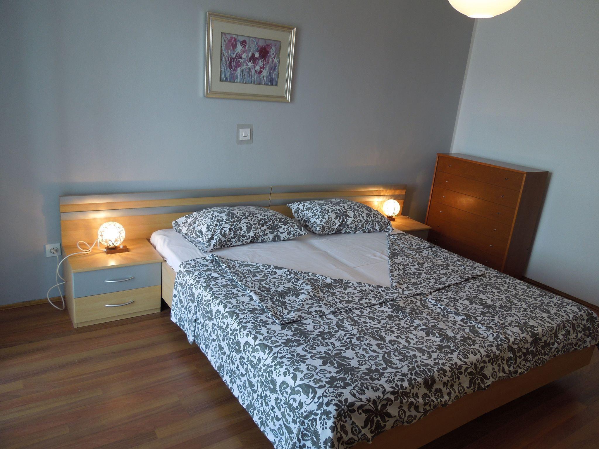 Ferienwohnung bietet Platz für 4 Gäste. Die Betten sind in Schlafzimmern, die es 2 gibt, innerhalb einer Gesamtfläche von 55m2, angeordnet. Die Gäste haben eine eigene Terrasse zur Verfügung, auf der sie in warmen Sommernächten genießen können. Das Apartment bietet Meerblick. Es ist erlaubt, Speisen auf dem Gemeinschafts-Grill vorzubereiten. IM PREIS INBEGRIFFEN: Kurtaxe, Endreinigung, Klimatisierung, Zentralheizung, Parkplatz, Internet, Bügeleisen, Bügelbrett, Föhn, tragbarer Grill. Die Verfügbarkeit zusätzlicher Dienstleistungen in Ihrem reservierten Termin und die Preise derselben (falls nicht aufgeführt) müssen im Voraus überprüft werden. Zusätzliche Dienstleistungen die in der Zahlungsaufforderung nicht aufgeführt sind werden direkt beim Vermieter bezahlt, angenommen der Gast nutzt auch diese. Ermäßigung auf den Grundpreis: Gratistag 14=13 (bei einem Aufenthalt von 14 Tagen oder mehr erhalten Sie einen Gratistag für den Aufenthalt bis 31.12.26).