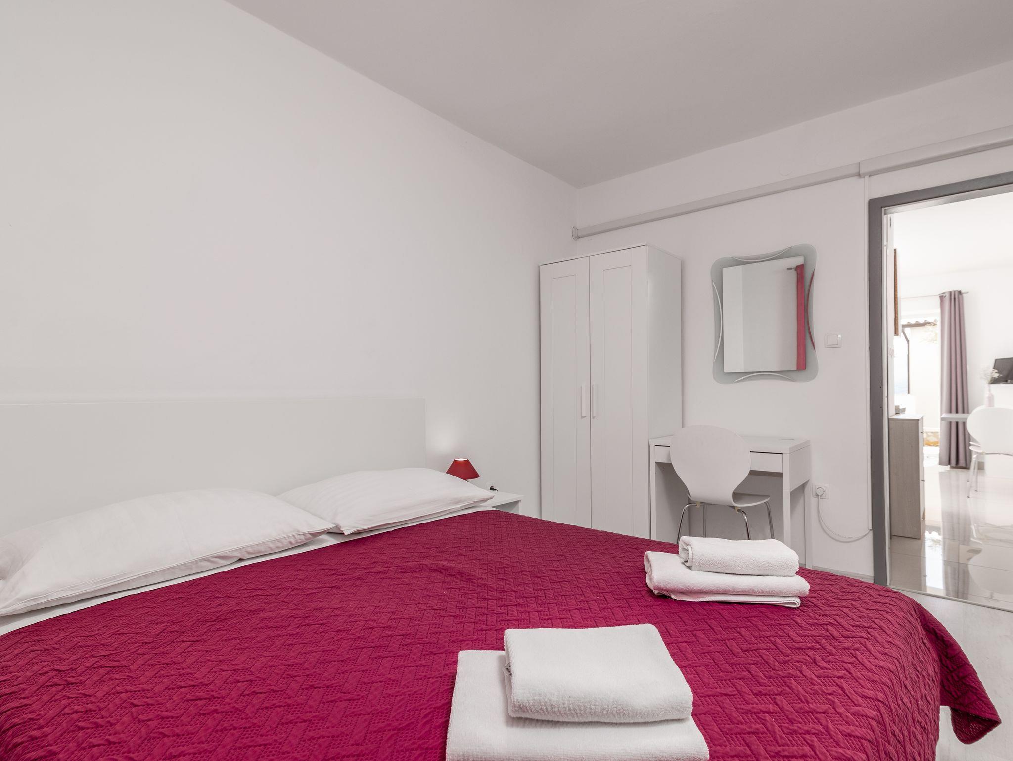 Ferienwohnung bietet Platz für 2 Gäste. Die Betten sind in Schlafzimmern, die es 1 gibt, innerhalb einer Gesamtfläche von 29m2, angeordnet. Die Gäste haben eine eigene Terrasse zur Verfügung, auf der sie in warmen Sommernächten genießen können. Es ist erlaubt, Speisen auf dem Gemeinschafts-Grill vorzubereiten. In der Unterkunftseinheit besteht die Möglichkeit des Mitbringens von Haustieren gegen Aufpreis. IM PREIS INBEGRIFFEN: Kurtaxe, Endreinigung, Klimatisierung, Parkplatz, Internet, Bügeleisen, Bügelbrett, Föhn. VERBINDLICHE ZUSÄTZLICHE KOSTEN: Aufzahlung für Kurzaufenthalte (prozentualer Zuschlag pro Nächtigungsanzahl: 30% - 1, 20% - 2, 10% - 3). UNVERBINDLICHE ZUSÄTZLICHE KOSTEN: Haustiere (12,00 € pro Nacht). Die Verfügbarkeit zusätzlicher Dienstleistungen in Ihrem reservierten Termin und die Preise derselben (falls nicht aufgeführt) müssen im Voraus überprüft werden. Zusätzliche Dienstleistungen die in der Zahlungsaufforderung nicht aufgeführt sind werden direkt beim Vermieter bezahlt, angenommen der Gast nutzt auch diese.