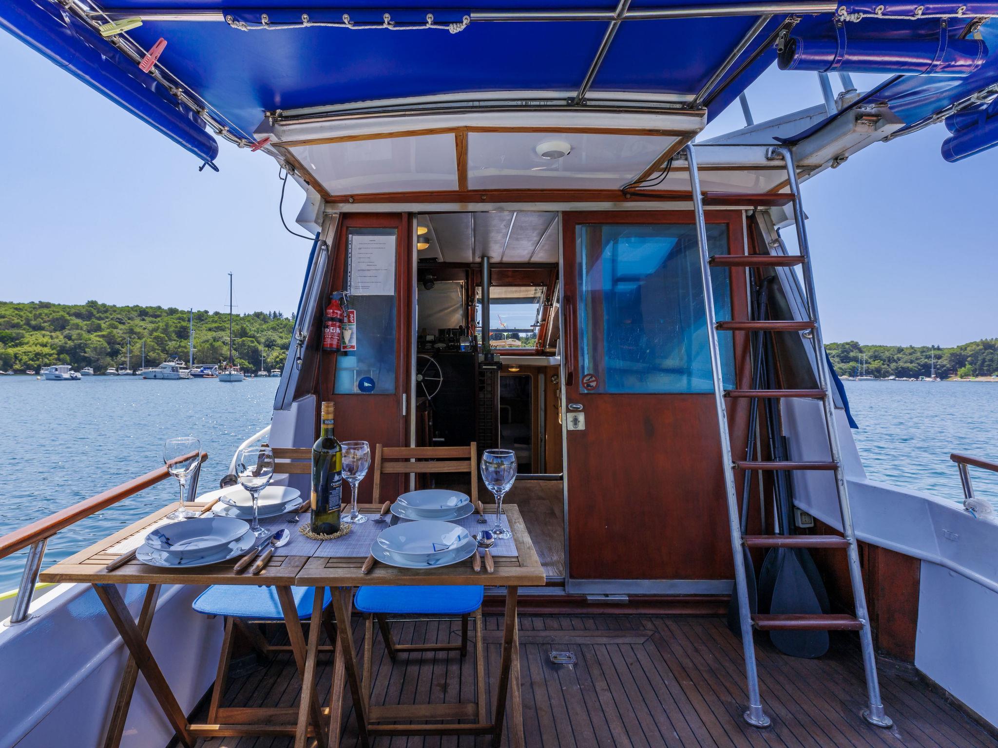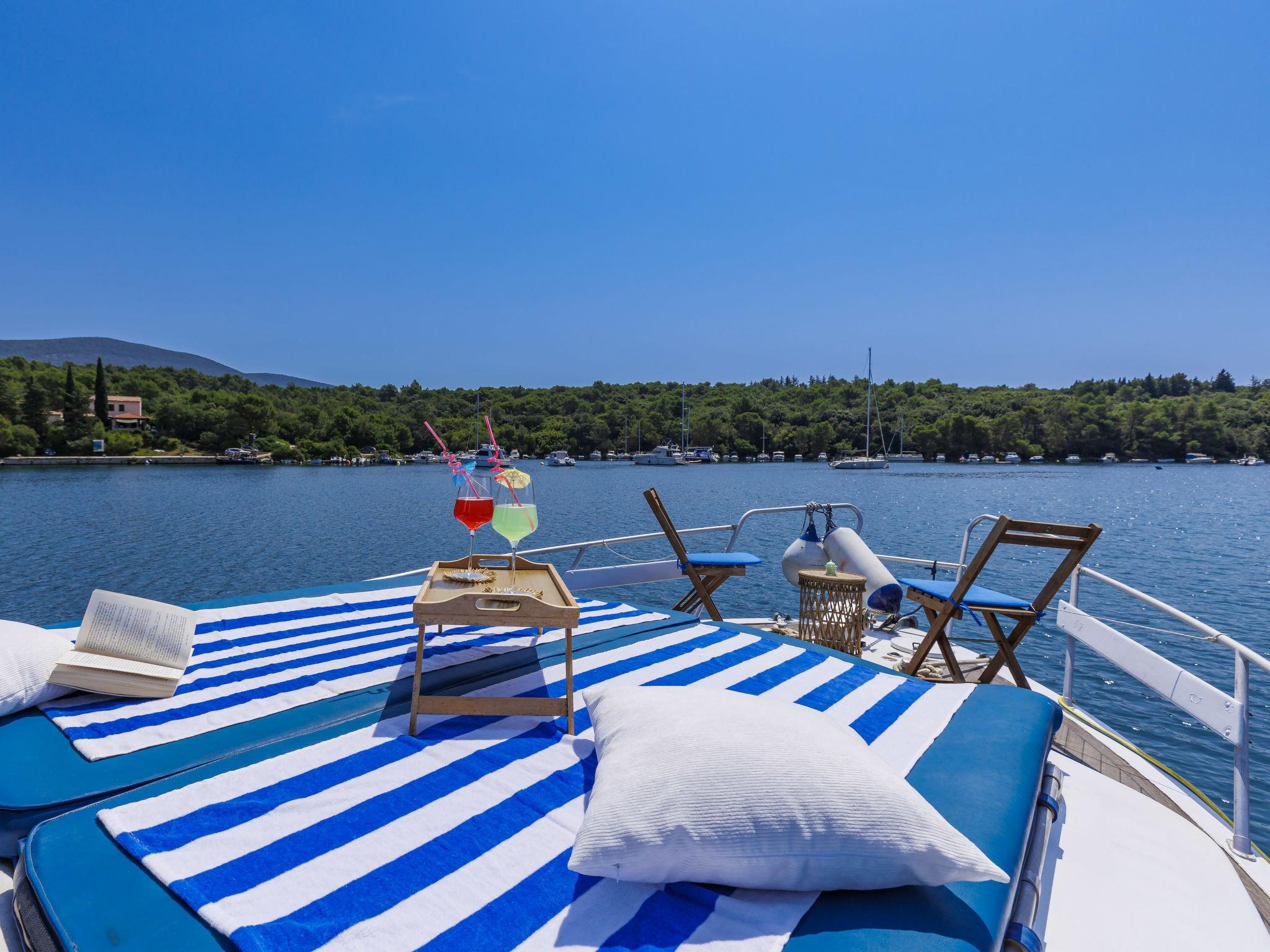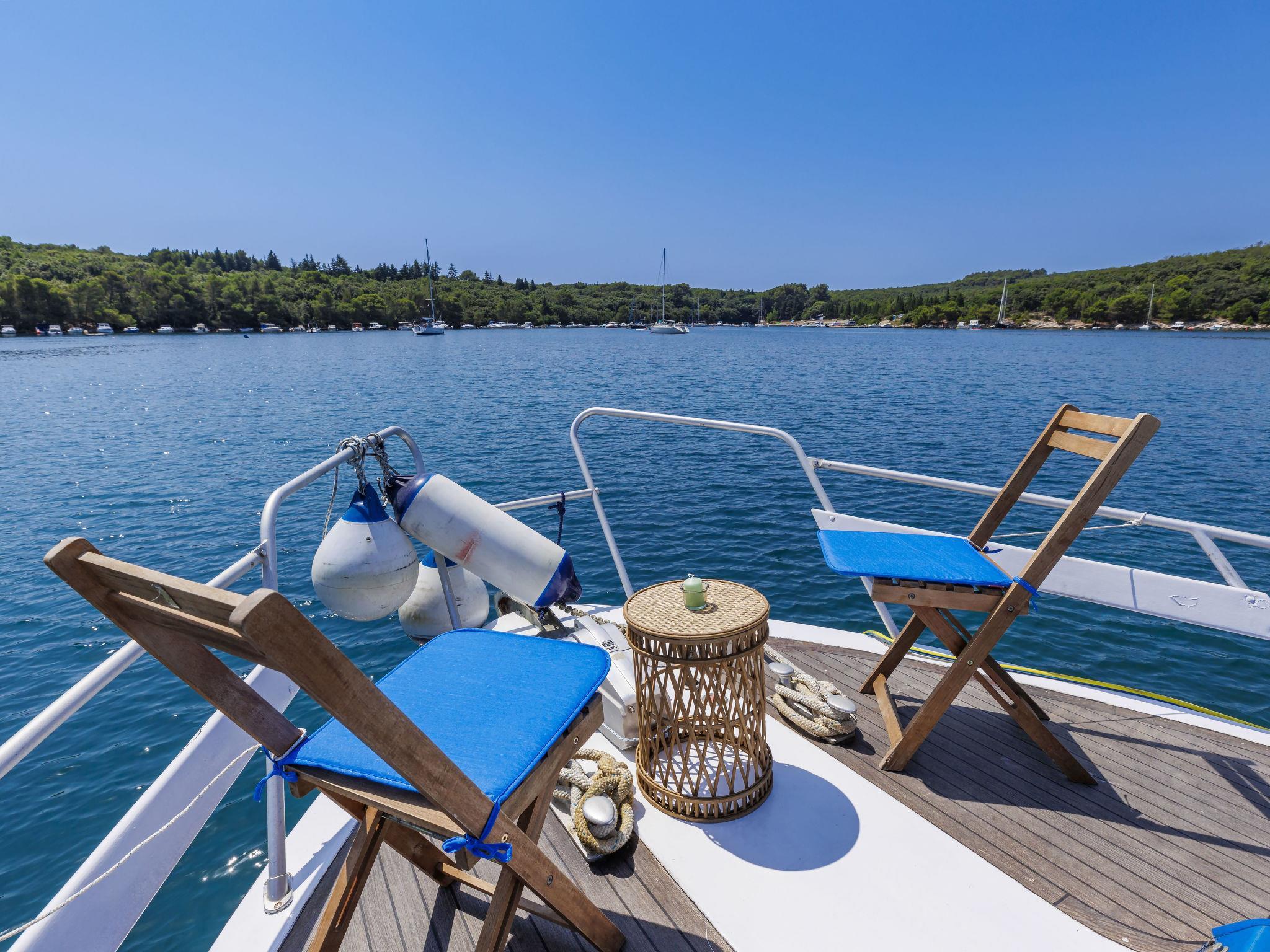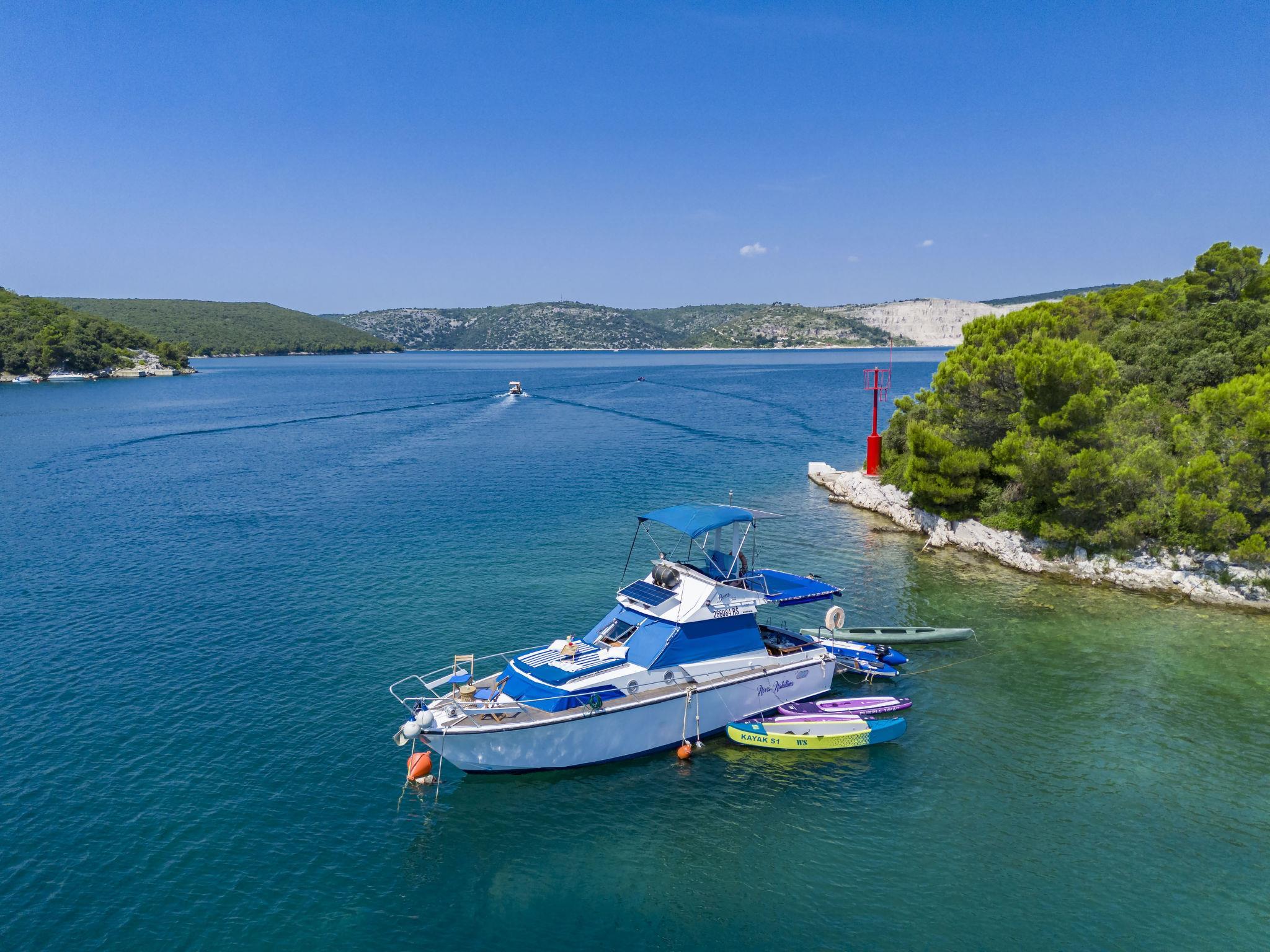 Sveti Lovrec Labinski 20 km von Rabac: Das Hausboot liegt in einer wunderschönen, geschützten und ruhigen Bucht vor Anker. Das mit Sorgfalt und Geschick renovierte Boot bietet alles für einen schönen und entspannten Urlaub. Hausboot "Nova Natalina". 16 km vom Zentrum von Labin, ruhige, sonnige Lage, direkt am Meer, direkt am Strand. Zur Alleinbenutzung: Aussendusche, Gartenmöbel, Grill. Im Hause: Internetzugang. Zufahrt bis 150 m zum Haus (800 m Naturweg). Öffentliche Parkplätze 150 m. Einkaufsgeschäft, Restaurant 550 m, Bushaltestelle 18.5 km, Kieselstrand 550 m, Felsstrand 10 m. Wanderwege ab Haus 150 m, Radweg 200 m. Verfügbar: Schlauchboot (2,6 PS) für den Transfer vom Land zum Hausboot und vom Hausboot zum Land und für eine Besichtigung der nahe gelegenen Strände und Restaurants in der Bucht von Raša, im eigenen Arrangement. Verfügbar: 2 x Kajak, 2 x Stehpaddel (alles im Preis inbegriffen).