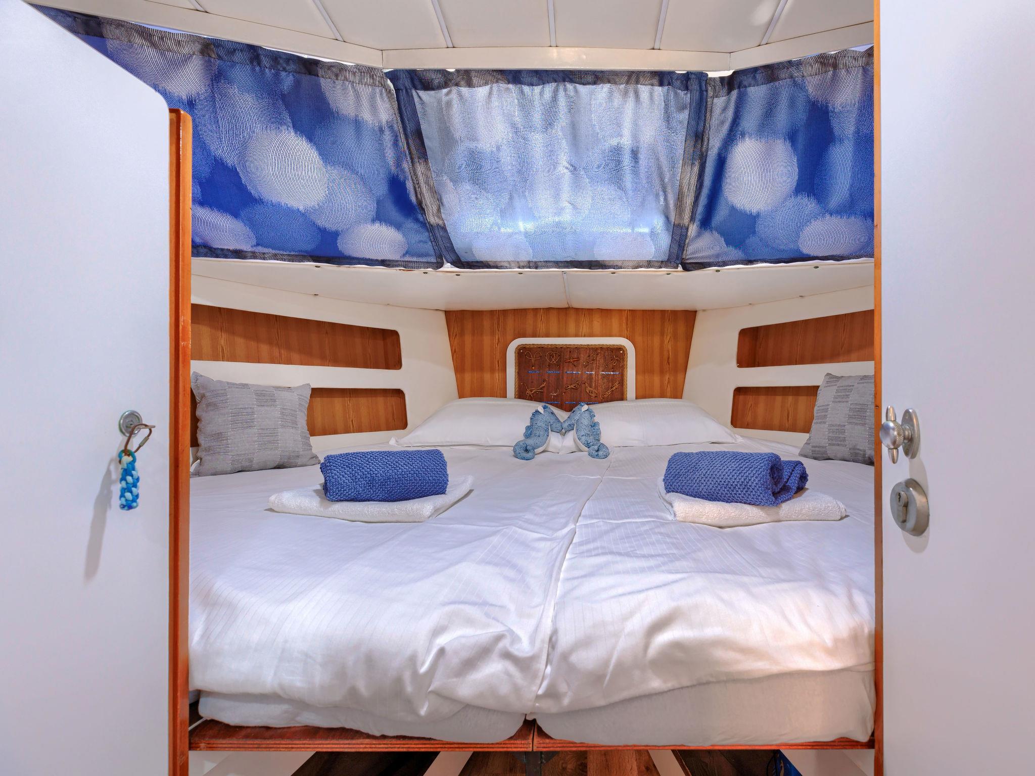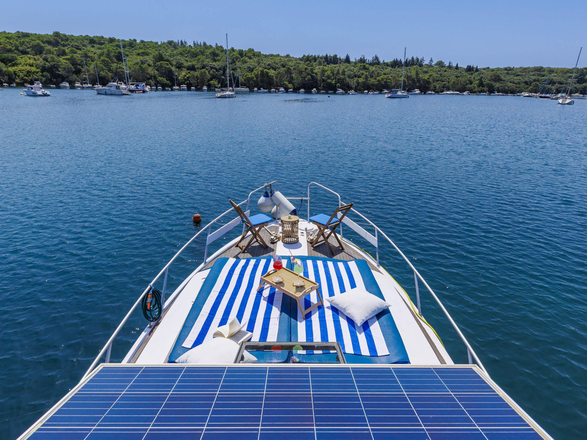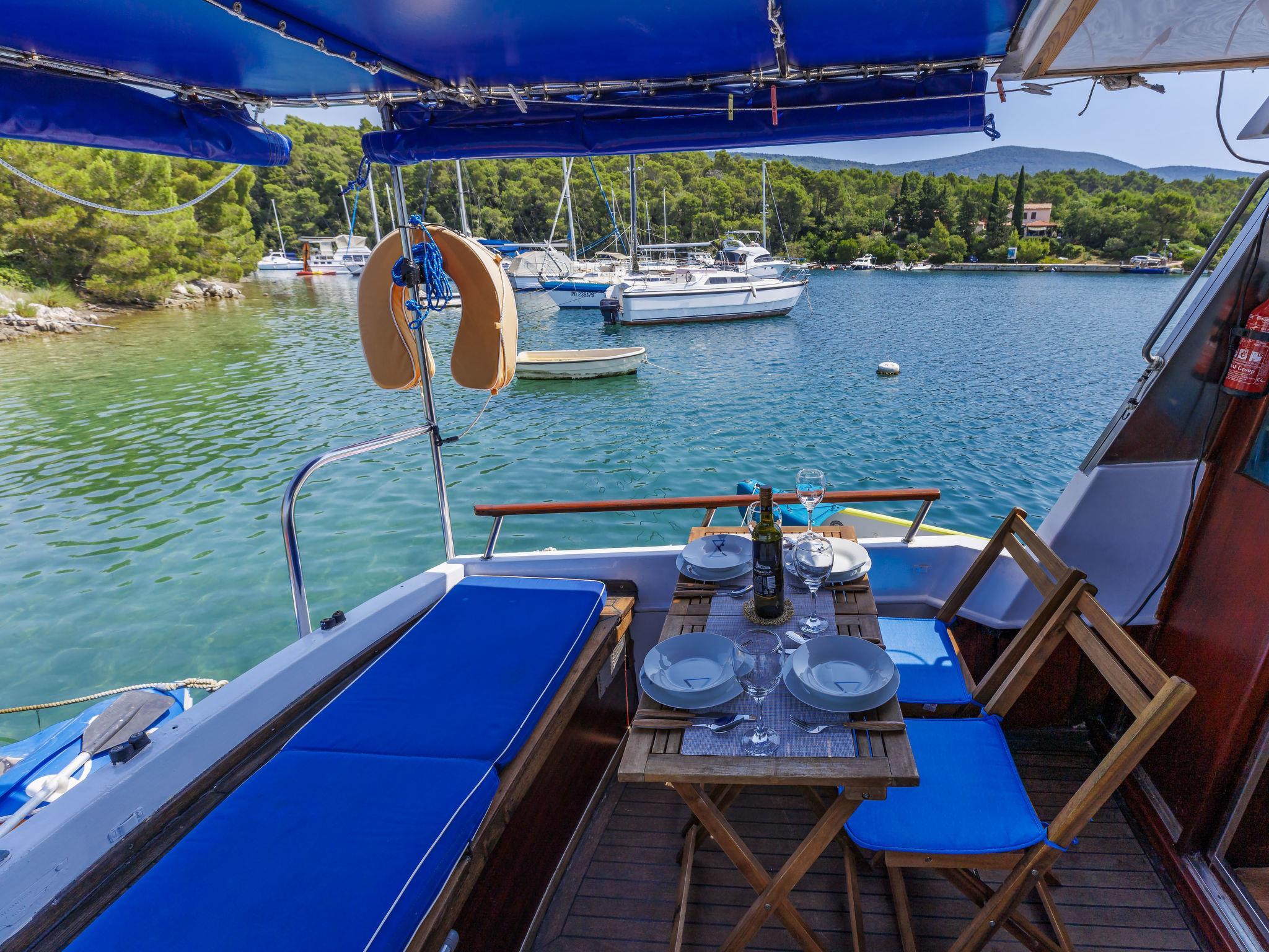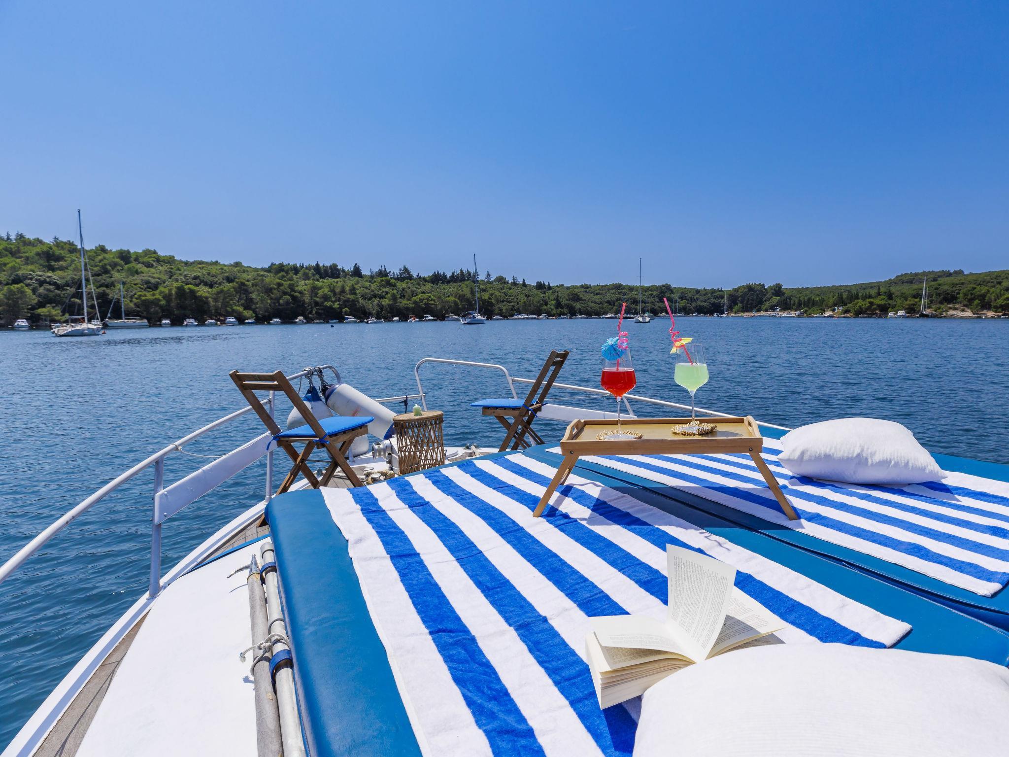 Sveti Lovrec Labinski 20 km von Rabac: Das Hausboot liegt in einer wunderschönen, geschützten und ruhigen Bucht vor Anker. Das mit Sorgfalt und Geschick renovierte Boot bietet alles für einen schönen und entspannten Urlaub. Hausboot "Nova Natalina". 16 km vom Zentrum von Labin, ruhige, sonnige Lage, direkt am Meer, direkt am Strand. Zur Alleinbenutzung: Aussendusche, Gartenmöbel, Grill. Im Hause: Internetzugang. Zufahrt bis 150 m zum Haus (800 m Naturweg). Öffentliche Parkplätze 150 m. Einkaufsgeschäft, Restaurant 550 m, Bushaltestelle 18.5 km, Kieselstrand 550 m, Felsstrand 10 m. Wanderwege ab Haus 150 m, Radweg 200 m. Verfügbar: Schlauchboot (2,6 PS) für den Transfer vom Land zum Hausboot und vom Hausboot zum Land und für eine Besichtigung der nahe gelegenen Strände und Restaurants in der Bucht von Raša, im eigenen Arrangement. Verfügbar: 2 x Kajak, 2 x Stehpaddel (alles im Preis inbegriffen).