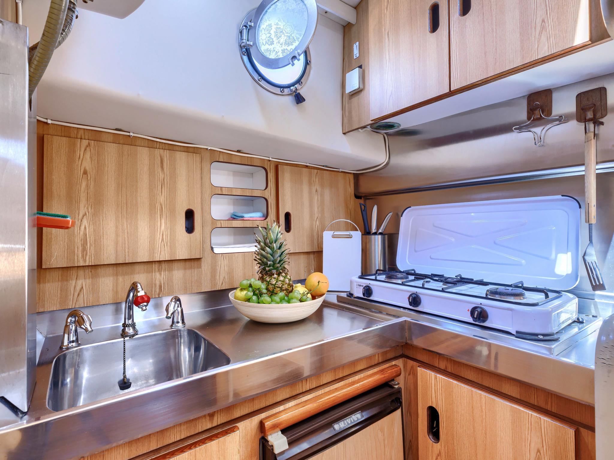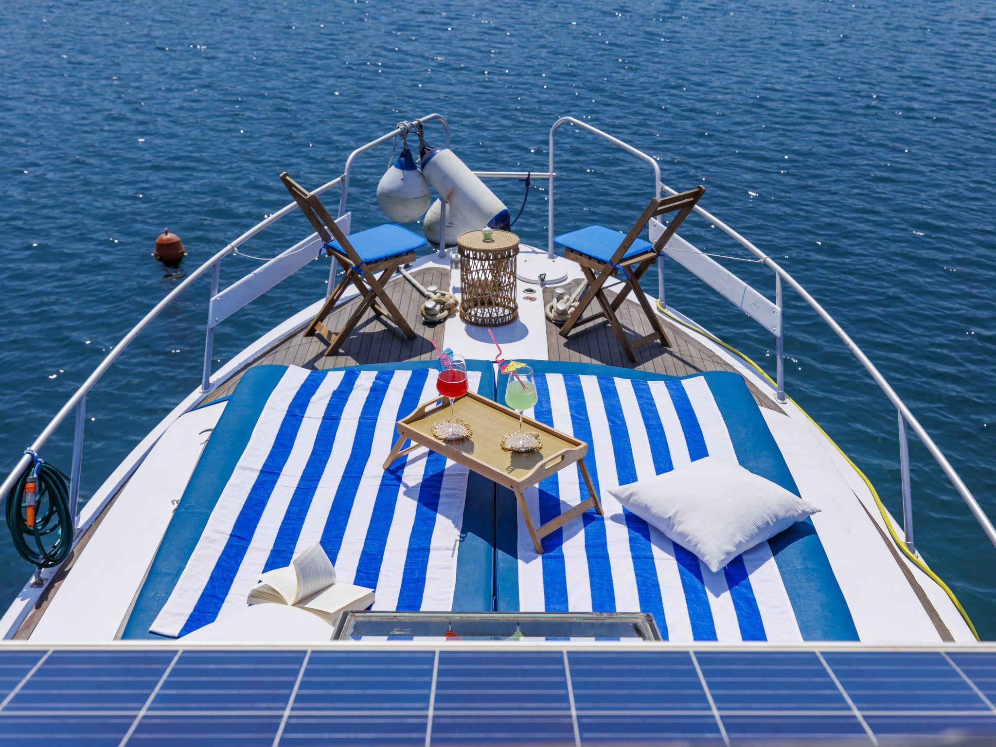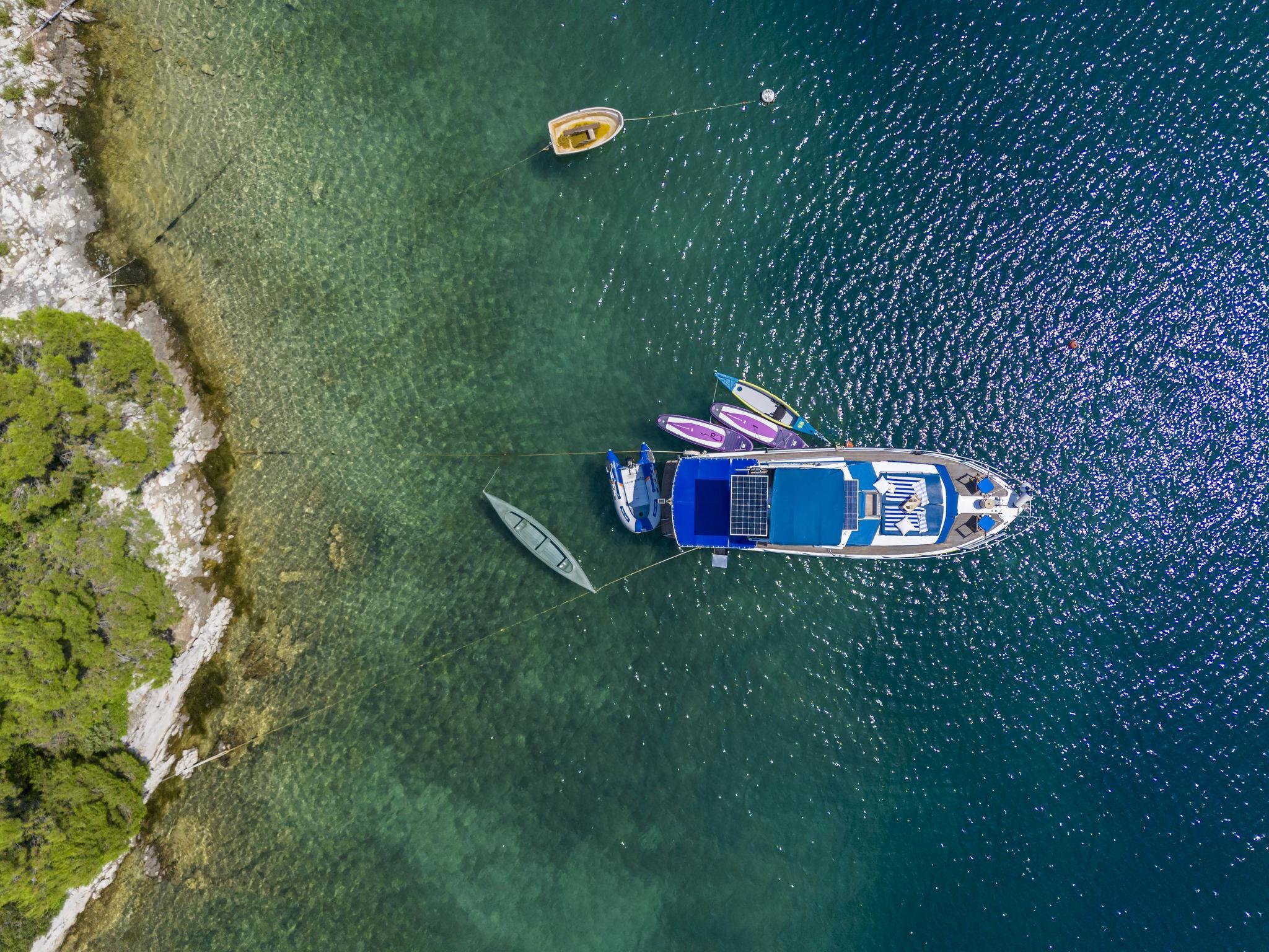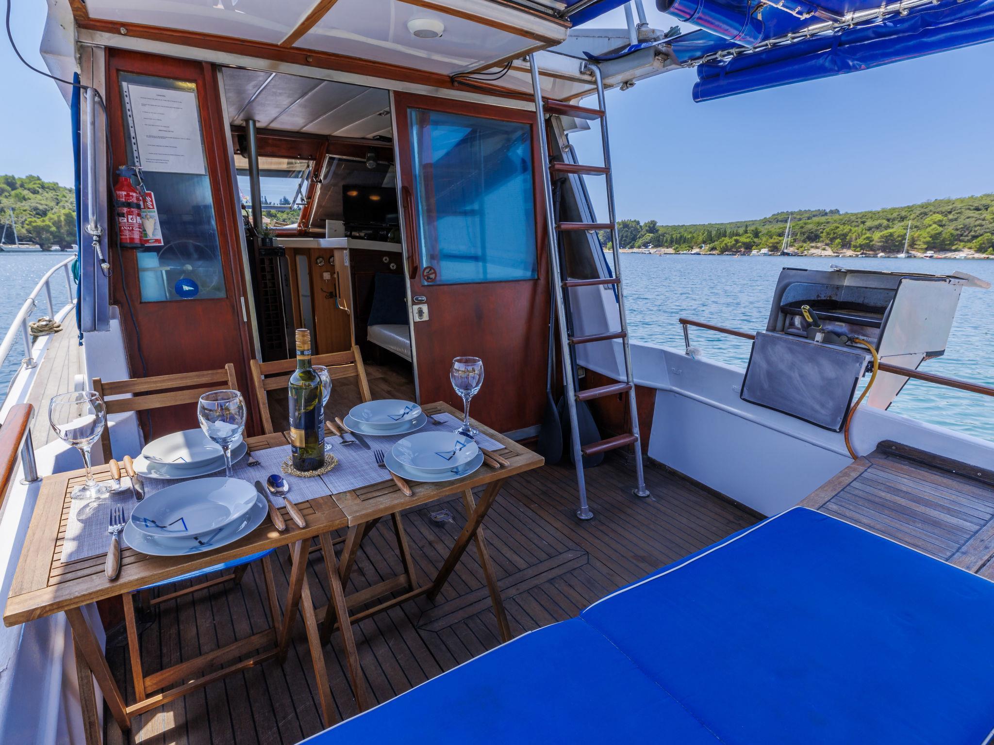 Sveti Lovrec Labinski 20 km von Rabac: Das Hausboot liegt in einer wunderschönen, geschützten und ruhigen Bucht vor Anker. Das mit Sorgfalt und Geschick renovierte Boot bietet alles für einen schönen und entspannten Urlaub. Hausboot "Nova Natalina". 16 km vom Zentrum von Labin, ruhige, sonnige Lage, direkt am Meer, direkt am Strand. Zur Alleinbenutzung: Aussendusche, Gartenmöbel, Grill. Im Hause: Internetzugang. Zufahrt bis 150 m zum Haus (800 m Naturweg). Öffentliche Parkplätze 150 m. Einkaufsgeschäft, Restaurant 550 m, Bushaltestelle 18.5 km, Kieselstrand 550 m, Felsstrand 10 m. Wanderwege ab Haus 150 m, Radweg 200 m. Verfügbar: Schlauchboot (2,6 PS) für den Transfer vom Land zum Hausboot und vom Hausboot zum Land und für eine Besichtigung der nahe gelegenen Strände und Restaurants in der Bucht von Raša, im eigenen Arrangement. Verfügbar: 2 x Kajak, 2 x Stehpaddel (alles im Preis inbegriffen).