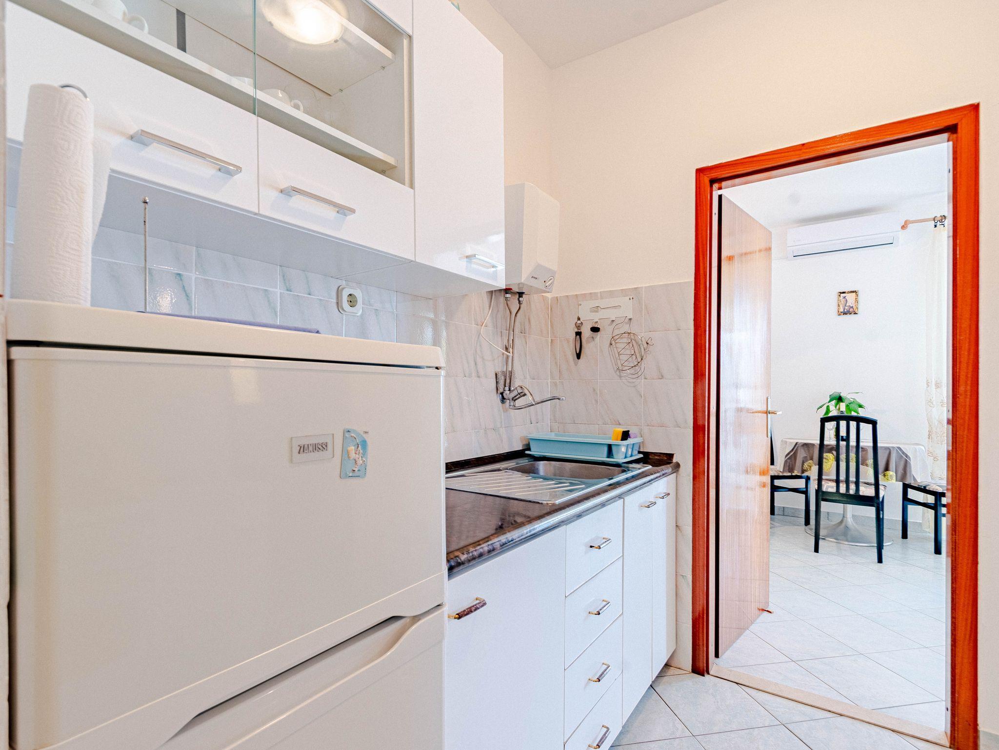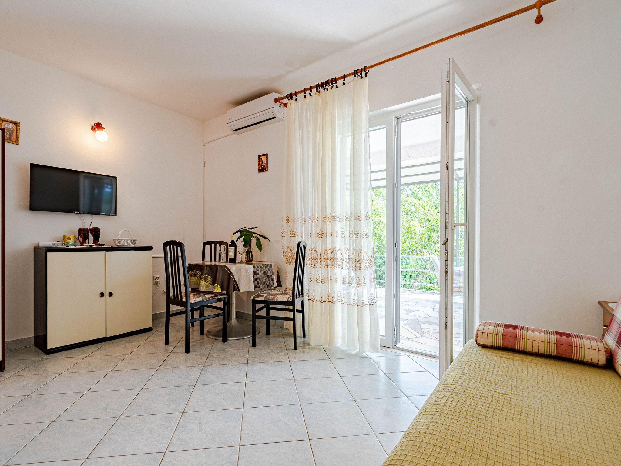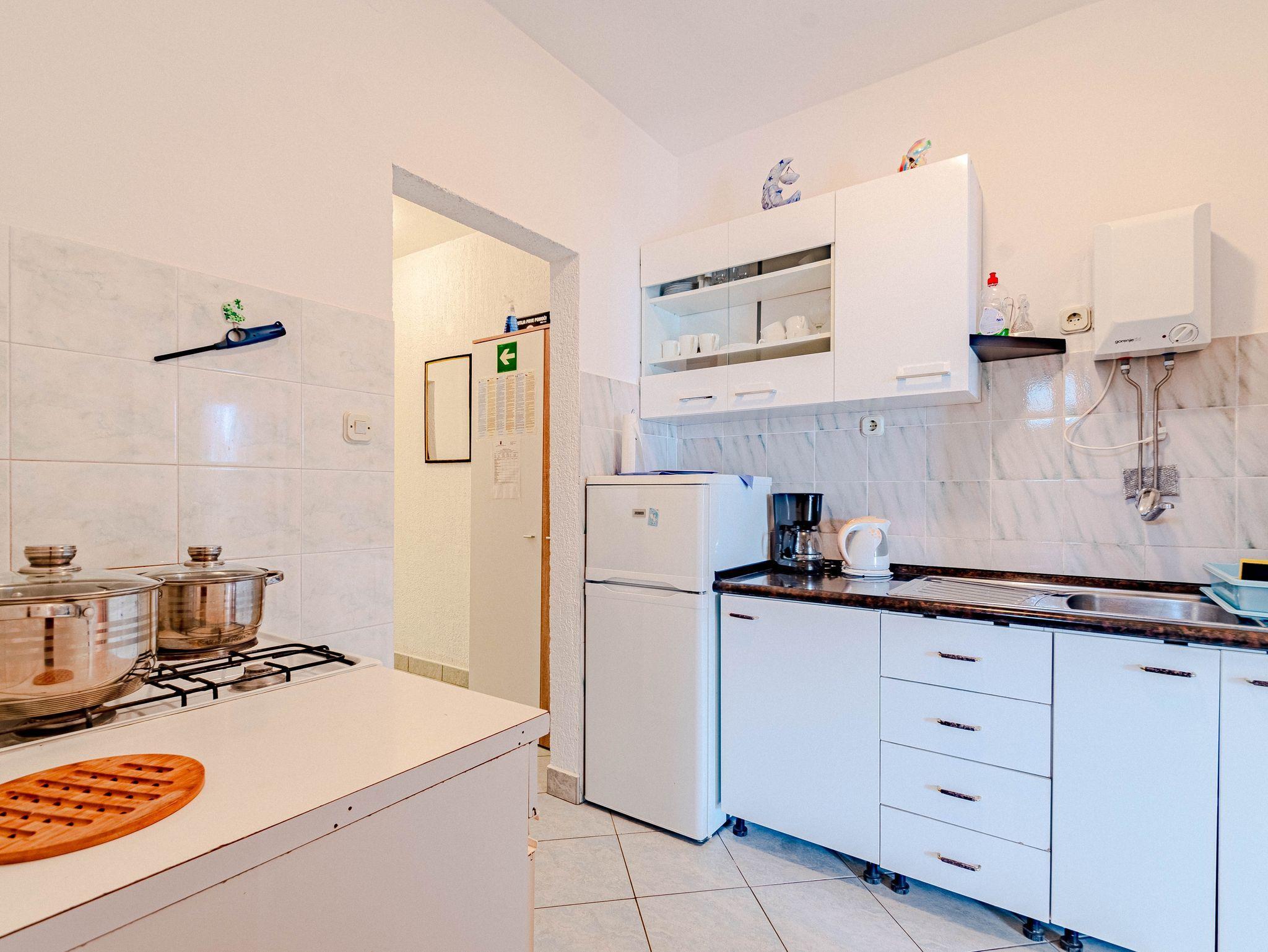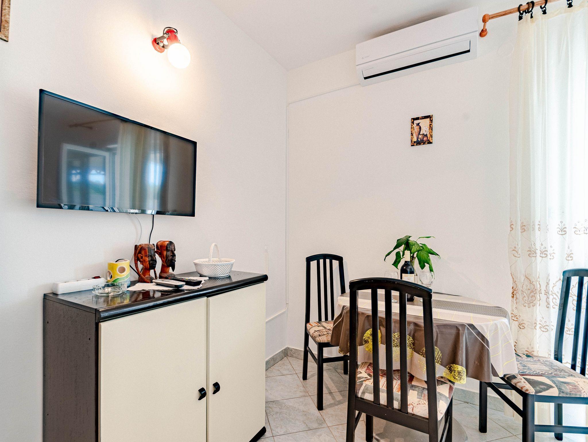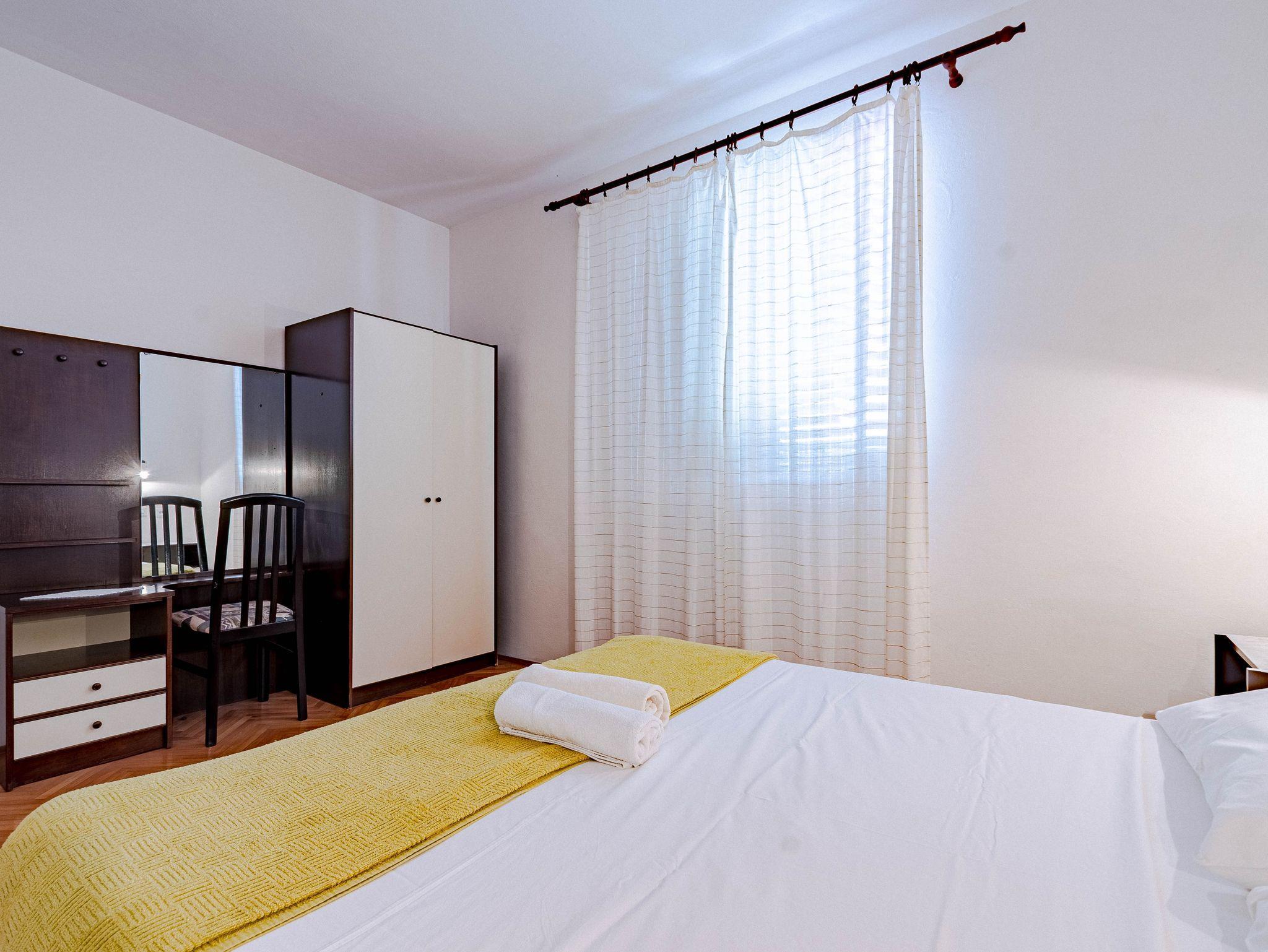 Ferienwohnung bietet Platz für 4 Gäste. Die Betten sind in Schlafzimmern, die es 1 gibt, und in Wohnzimmer, innerhalb einer Gesamtfläche von 39m2, angeordnet. Die Gäste haben eine eigene Terrasse zur Verfügung, auf der sie in warmen Sommernächten genießen können. Das Apartment bietet Meerblick. Es ist erlaubt, Speisen auf dem Gemeinschafts-Grill vorzubereiten. IM PREIS INBEGRIFFEN: Kurtaxe, Endreinigung, Klimatisierung, Parkplatz, Internet, Wäschewaschen, Kinderbett, Bügeleisen, Bügelbrett, Föhn, Liegestühle. VERBINDLICHE ZUSÄTZLICHE KOSTEN: Aufzahlung für Kurzaufenthalte (prozentualer Zuschlag pro Nächtigungsanzahl: 30% - 1, 20% - 2, 10% - 3). Die Verfügbarkeit zusätzlicher Dienstleistungen in Ihrem reservierten Termin und die Preise derselben (falls nicht aufgeführt) müssen im Voraus überprüft werden. Zusätzliche Dienstleistungen die in der Zahlungsaufforderung nicht aufgeführt sind werden direkt beim Vermieter bezahlt, angenommen der Gast nutzt auch diese. Ermäßigung auf den Grundpreis: Gratistag 14=13 (bei einem Aufenthalt von 14 Tagen oder mehr erhalten Sie einen Gratistag für den Aufenthalt bis 31.12.26).