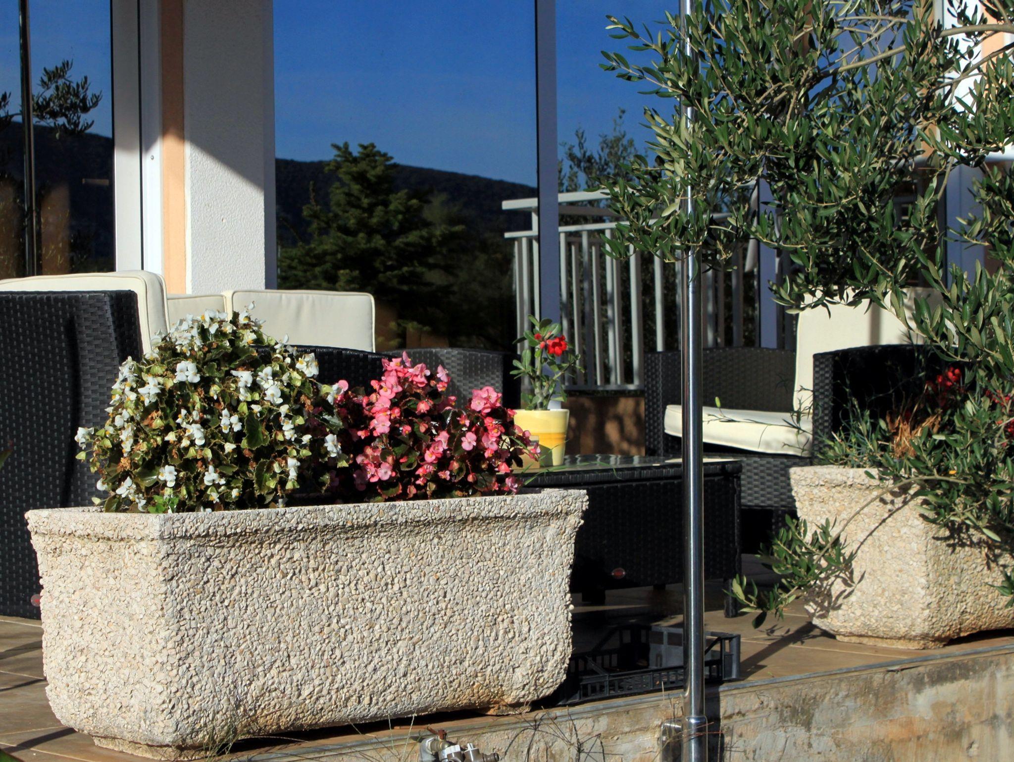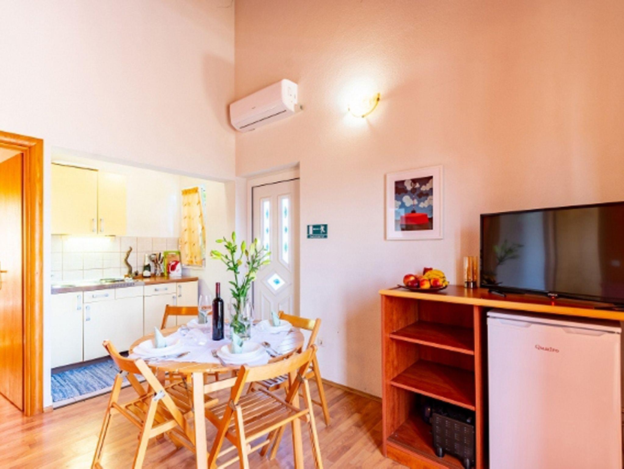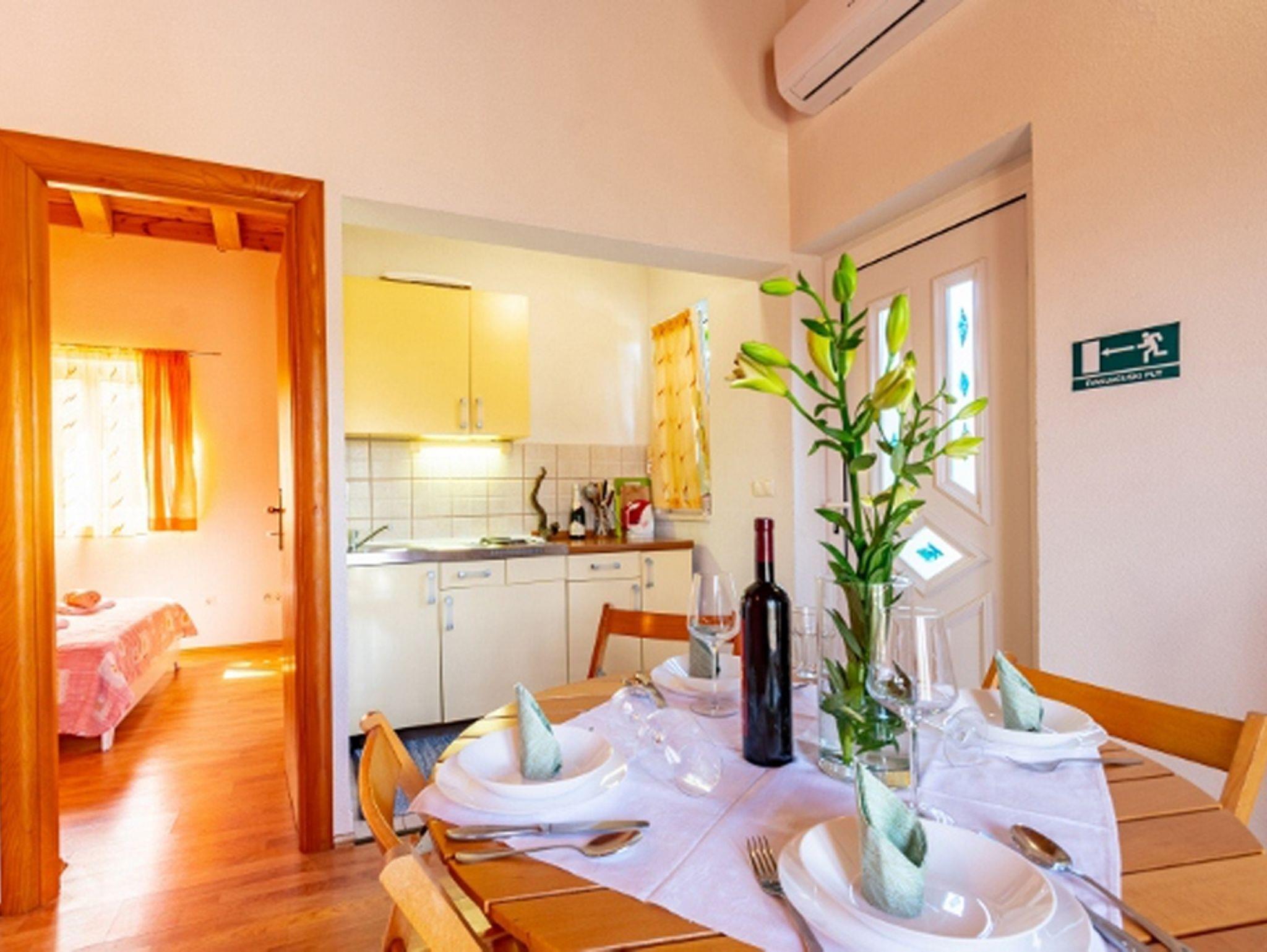 Ferienwohnung bietet Platz für 4 Gäste. Die Betten sind in Schlafzimmern, die es 2 gibt, innerhalb einer Gesamtfläche von 42m2, angeordnet. Die Gäste haben eine eigene Terrasse zur Verfügung, auf der sie in warmen Sommernächten genießen können. Das Apartment bietet Meerblick. Es ist erlaubt, Speisen auf dem Gemeinschafts-Grill vorzubereiten. In der Unterkunftseinheit besteht die Möglichkeit des Mitbringens von Haustieren, und die Dienstleistung ist im Preis der Unterkunft enthalten. IM PREIS INBEGRIFFEN: Kurtaxe, Endreinigung, Klimatisierung, Parkplatz, Internet, Haustiere, Föhn, Sonnenschirm, Liegestühle, 1 Bett für Kinder (im Preis enthalten). VERBINDLICHE ZUSÄTZLICHE KOSTEN: Aufzahlung für Kurzaufenthalte (prozentualer Zuschlag pro Nächtigungsanzahl: 30% - 1, 20% - 2, 10% - 3). Die Verfügbarkeit zusätzlicher Dienstleistungen in Ihrem reservierten Termin und die Preise derselben (falls nicht aufgeführt) müssen im Voraus überprüft werden. Zusätzliche Dienstleistungen die in der Zahlungsaufforderung nicht aufgeführt sind werden direkt beim Vermieter bezahlt, angenommen der Gast nutzt auch diese.