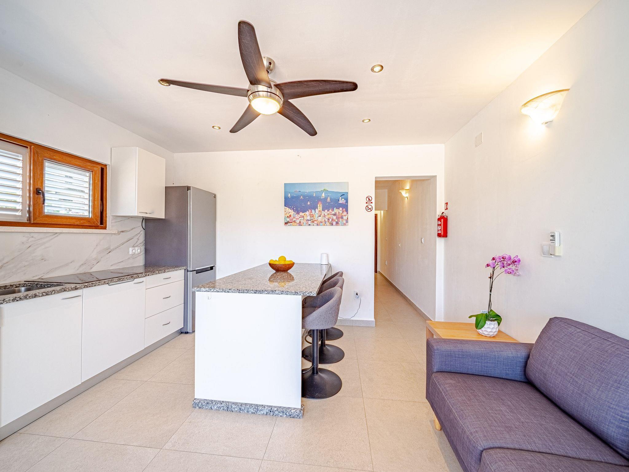 Ferienwohnung bietet Platz für 4 Gäste. Die Betten sind in Schlafzimmern, die es 2 gibt, innerhalb einer Gesamtfläche von 39m2, angeordnet. Die Gäste haben eine eigene Terrasse zur Verfügung, auf der sie in warmen Sommernächten genießen können. Das Apartment bietet Meerblick. Es ist erlaubt, Speisen auf dem Gemeinschafts-Grill vorzubereiten. IM PREIS INBEGRIFFEN: Kurtaxe, Endreinigung, Klimatisierung, Parkplatz, Internet, Bootsanlegeplatz, Kinderbett, Bügeleisen, Bügelbrett, Föhn, Sonnenschirm, Liegestühle. Die Verfügbarkeit zusätzlicher Dienstleistungen in Ihrem reservierten Termin und die Preise derselben (falls nicht aufgeführt) müssen im Voraus überprüft werden. Zusätzliche Dienstleistungen die in der Zahlungsaufforderung nicht aufgeführt sind werden direkt beim Vermieter bezahlt, angenommen der Gast nutzt auch diese.