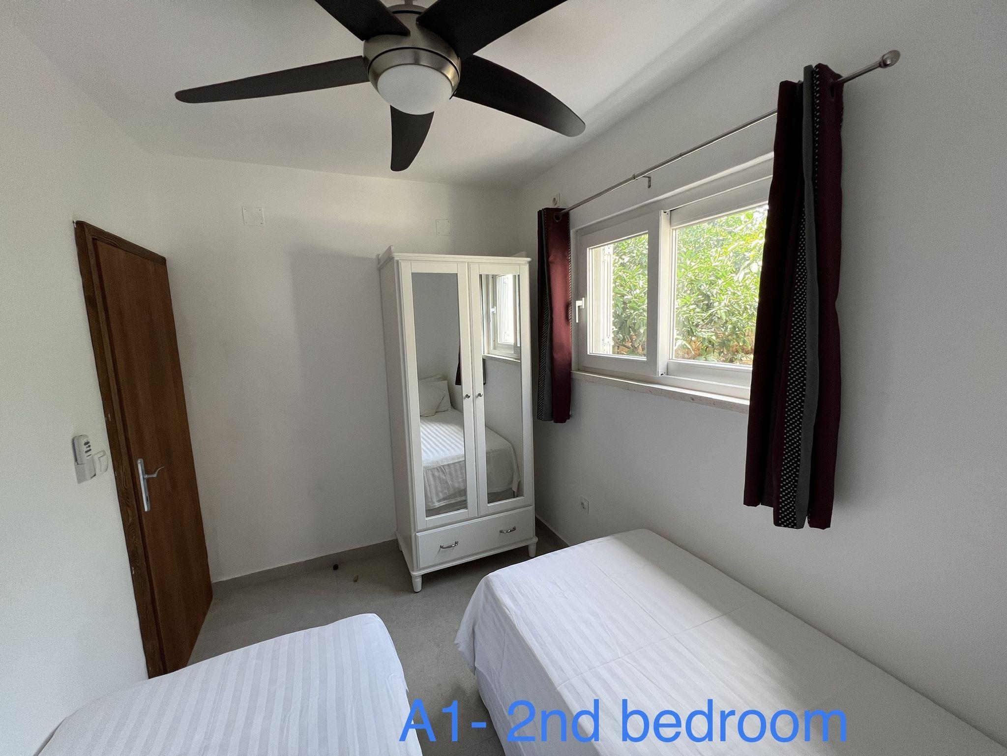Ferienwohnung bietet Platz für 4 Gäste. Die Betten sind in Schlafzimmern, die es 2 gibt, innerhalb einer Gesamtfläche von 39m2, angeordnet. Die Gäste haben eine eigene Terrasse zur Verfügung, auf der sie in warmen Sommernächten genießen können. Es ist erlaubt, Speisen auf dem Gemeinschafts-Grill vorzubereiten. IM PREIS INBEGRIFFEN: Kurtaxe, Endreinigung, Klimatisierung, Parkplatz, Internet, Bootsanlegeplatz, Kinderbett, Bügeleisen, Bügelbrett, Föhn, Sonnenschirm, Liegestühle. Die Verfügbarkeit zusätzlicher Dienstleistungen in Ihrem reservierten Termin und die Preise derselben (falls nicht aufgeführt) müssen im Voraus überprüft werden. Zusätzliche Dienstleistungen die in der Zahlungsaufforderung nicht aufgeführt sind werden direkt beim Vermieter bezahlt, angenommen der Gast nutzt auch diese.
