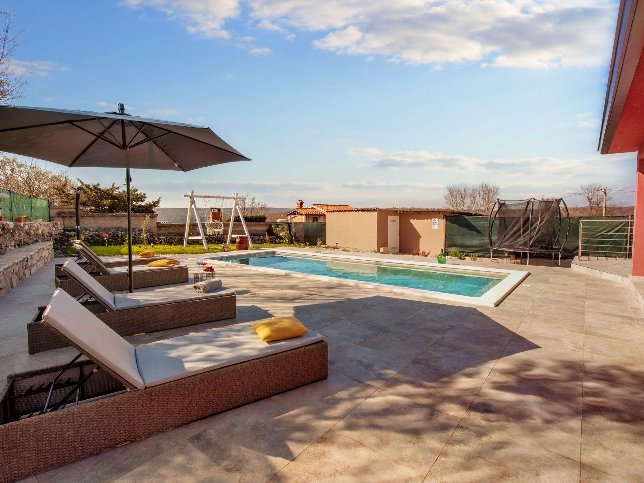 Direkt über den Wohnbereich kommt man auf die Terrasse und den damit verbunden Außenbereich welcher über einen charmanten Pool mit ausreichend Poolliegen und Sonnenschirmen verfügt und einen Außengrill für die lauen Grillabende bereitstellt.