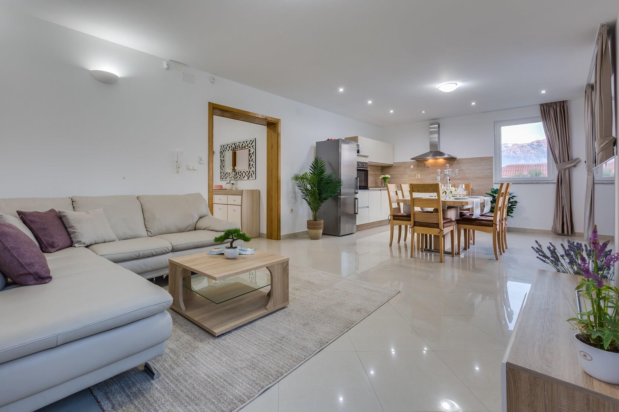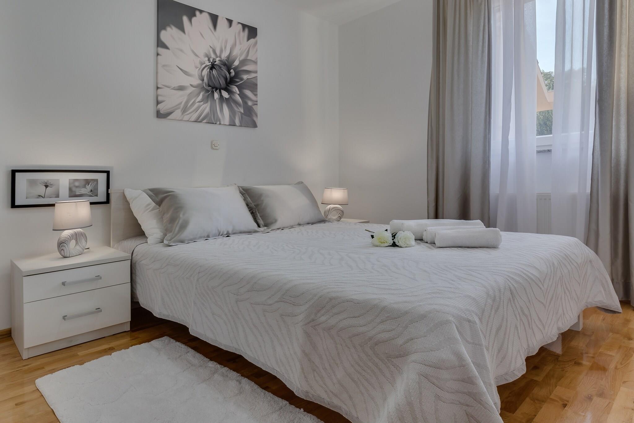 Denne fantastiske villa er beliggende i en malerisk landsby Razanac. Bekvemt placeret kun 400m fra den charmerende stenstrand kan dit sommerhus rumme op til 10 personer. På samme afstand kan du finde en købmand og en traditionel dalmatisk kro med lokal cousine. Huset har en rummelig stue / spisestue, et fuldt udstyret køkken, 3 hyggelige værelser, et moderne badeværelse med ekstra toilet og en dejlig overdækket terrasse. Der er også et dejligt gæstehus med en anden stue med moderne køkken, 2 komfortable soveværelser og et badeværelse. Du kan nyde udendørs området med sin vidunderlige 55m2 private swimmingpool, rummeligt solterrasse godt udstyret med havemøbler og selvfølgelig grillfaciliteter . Vi har også et fuldt udstyret udendørs køkken med åben pejs og charmerende overdækket terrasse. I en 1 km radius kan du vælge mellem sandstrande, sten eller stenstrande. Charmerende blanding af hav, bjerge og typisk middelhavs atmosfære i en lille dalmatisk landsby gør denne villa til et perfekt sted for stressfri ferie. Old town of Zadar er kun 20 km væk, så er indgangen til det vigtigste klatrestation i Kroatien nationalpark Paklenica . Nærhed til Velebit bjergene med sine parker, huler, stier og cykelruter gør denne region attraktiv for dem, der søger en aktiv ferie.
