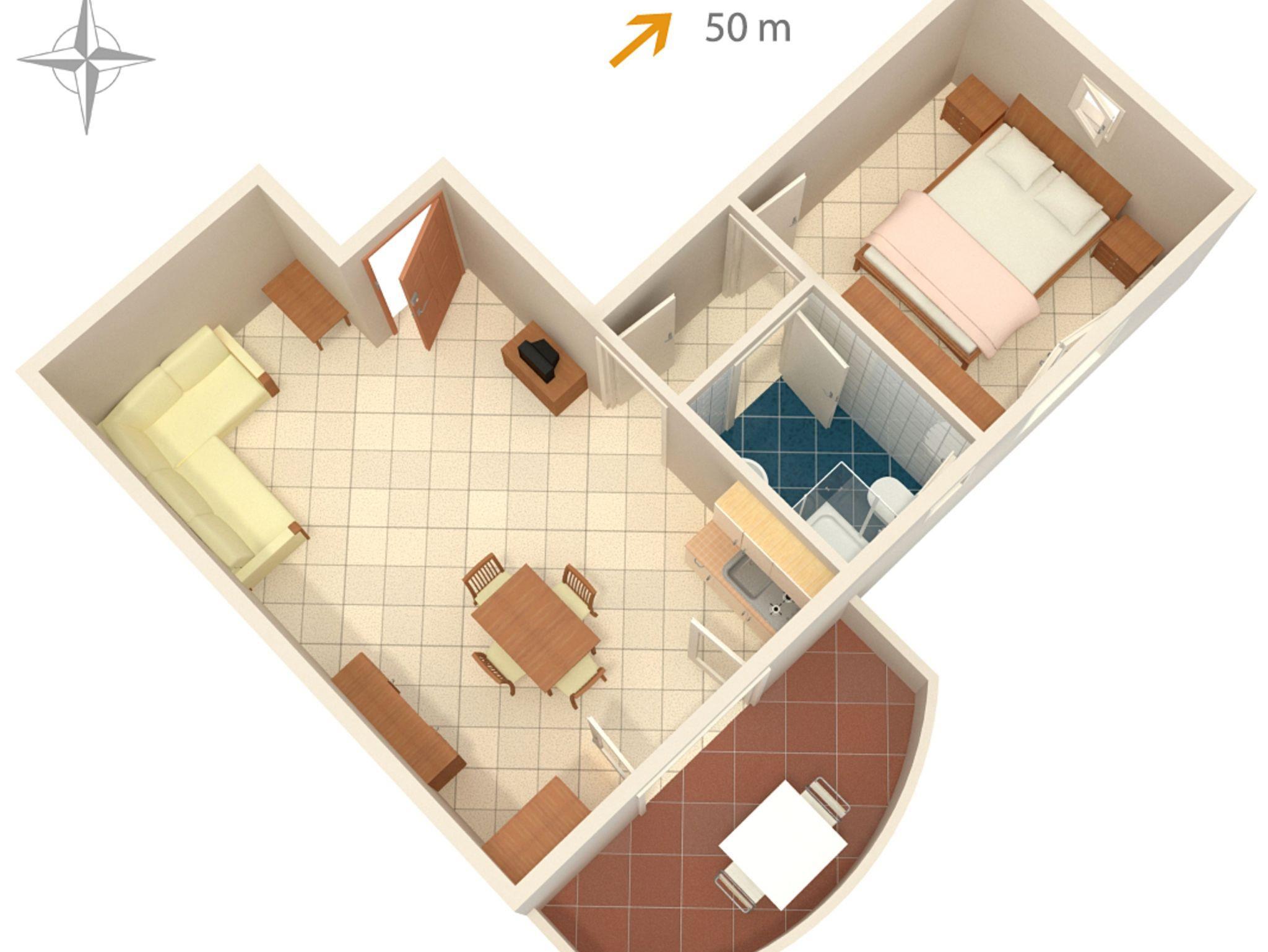Ferienwohnung bietet Platz für 4 Gäste. Die Betten sind in Schlafzimmern, die es 1 gibt, und in Wohnzimmer, innerhalb einer Gesamtfläche von 33m2, angeordnet. Die Gäste haben eine eigene Terrasse zur Verfügung, auf der sie in warmen Sommernächten genießen können. Das Apartment bietet Meerblick. Es ist erlaubt, Speisen auf dem Gemeinschafts-Grill vorzubereiten. In der Unterkunftseinheit besteht die Möglichkeit des Mitbringens von Haustieren gegen Aufpreis. IM PREIS INBEGRIFFEN: Kurtaxe, Endreinigung, Parkplatz, Internet. VERBINDLICHE ZUSÄTZLICHE KOSTEN: Aufzahlung für Kurzaufenthalte (prozentualer Zuschlag pro Nächtigungsanzahl: 30% - 1, 20% - 2, 10% - 3). UNVERBINDLICHE ZUSÄTZLICHE KOSTEN: Klimatisierung (6,00 € pro Nacht), Haustiere (10,00 € pro Nacht), Zusatzbett (10,00 € pro Nacht). Die Verfügbarkeit zusätzlicher Dienstleistungen in Ihrem reservierten Termin und die Preise derselben (falls nicht aufgeführt) müssen im Voraus überprüft werden. Zusätzliche Dienstleistungen die in der Zahlungsaufforderung nicht aufgeführt sind werden direkt beim Vermieter bezahlt, angenommen der Gast nutzt auch diese. Ermäßigung auf den Grundpreis: Gratistag 14=13 (bei einem Aufenthalt von 14 Tagen oder mehr erhalten Sie einen Gratistag für den Aufenthalt bis 31.12.26).
