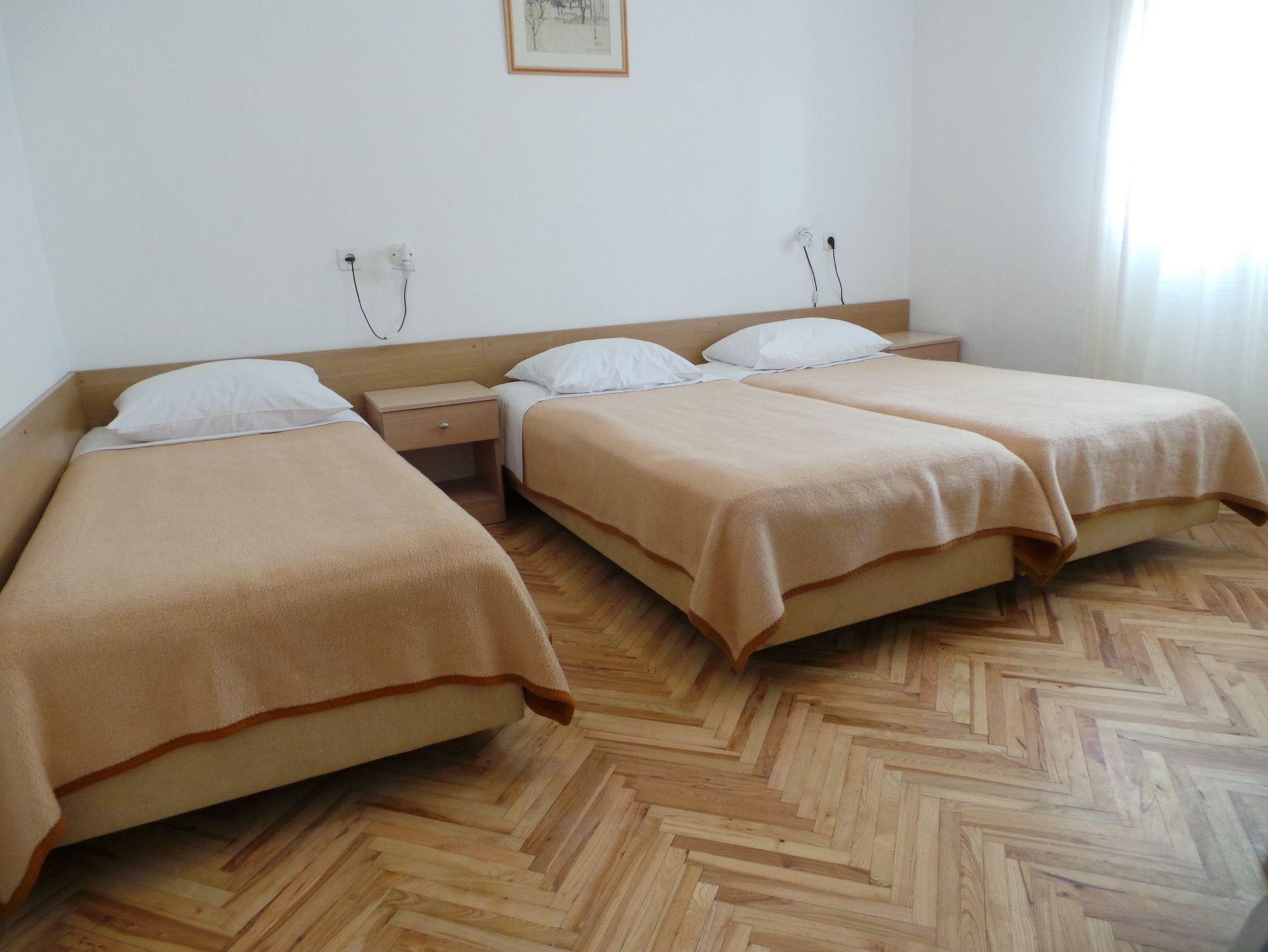 Ferienwohnung bietet Platz für 8 Gäste. Die Betten sind in Schlafzimmern, die es 3 gibt, innerhalb einer Gesamtfläche von 83m2, angeordnet. Die Gäste haben eine eigene Terrasse zur Verfügung, auf der sie in warmen Sommernächten genießen können. Das Apartment bietet Meerblick. Es ist erlaubt, Speisen auf dem Gemeinschafts-Grill vorzubereiten. In der Unterkunftseinheit besteht die Möglichkeit des Mitbringens von Haustieren gegen Aufpreis. IM PREIS INBEGRIFFEN: Kurtaxe, Endreinigung, Klimatisierung, Parkplatz, Internet, Kinderbett, Bügeleisen, Bügelbrett. VERBINDLICHE ZUSÄTZLICHE KOSTEN: Aufzahlung für Kurzaufenthalte (prozentualer Zuschlag pro Nächtigungsanzahl: 30% - 1, 20% - 2, 10% - 3). UNVERBINDLICHE ZUSÄTZLICHE KOSTEN: Haustiere (5,00 € pro Nacht). Die Verfügbarkeit zusätzlicher Dienstleistungen in Ihrem reservierten Termin und die Preise derselben (falls nicht aufgeführt) müssen im Voraus überprüft werden. Zusätzliche Dienstleistungen die in der Zahlungsaufforderung nicht aufgeführt sind werden direkt beim Vermieter bezahlt, angenommen der Gast nutzt auch diese.