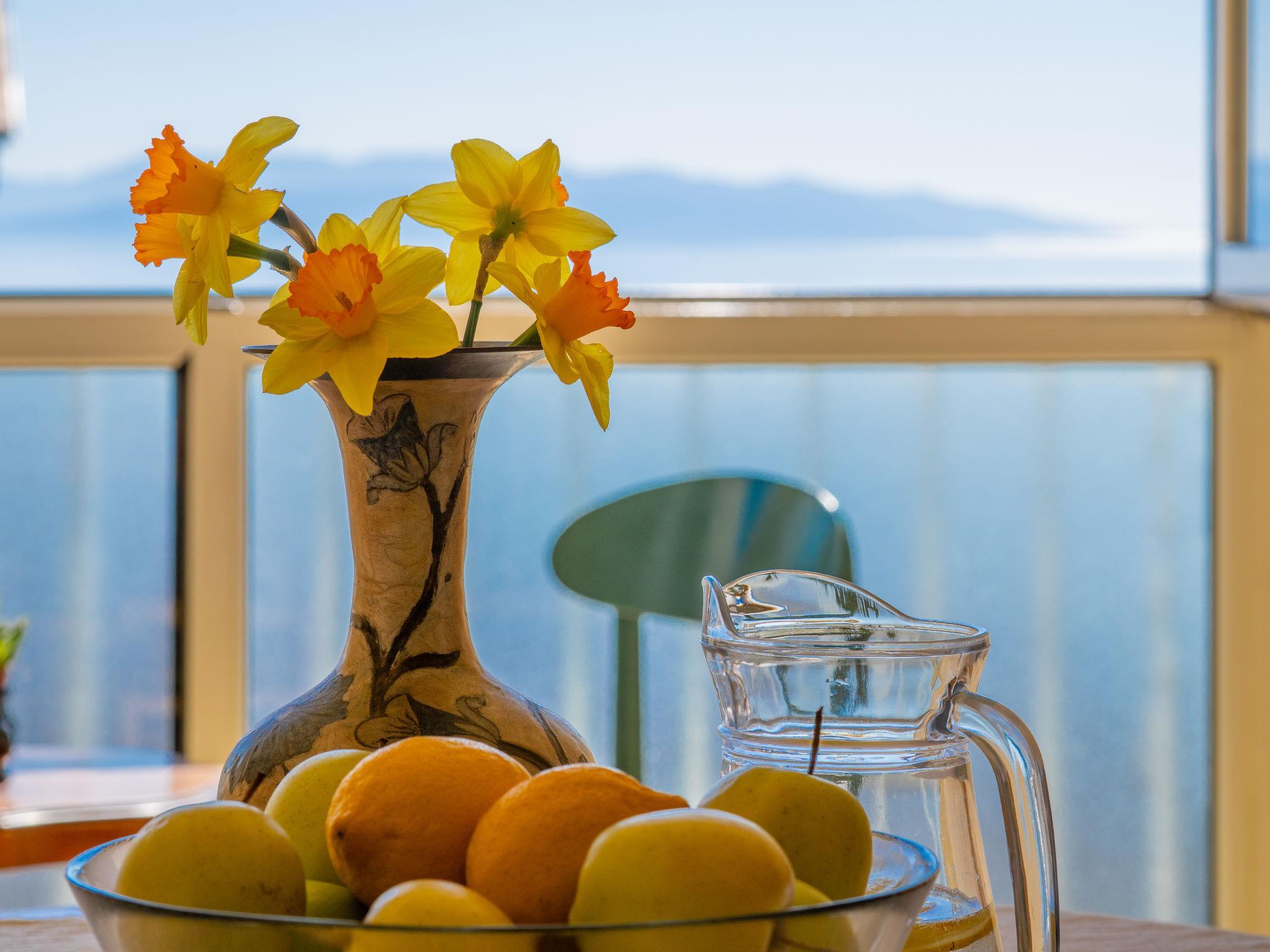 "Jana", 3-Zimmer-Wohnung 60 m2 im 5. Stock. Hell, teilweise renoviert im Jahre 2024: Wohnzimmer mit 1 Diwanbett (140 cm, Länge 200 cm), TV und Klimaanlage. 2 Zimmer, jedes Zimmer mit 1 franz. Bett (140 cm, Länge 200 cm). Küche (Backofen, Geschirrspüler, 4 Flammen, Toaster, Wasserkocher, Tiefkühler, elektrische Kaffeemaschine) mit Esstisch. Bad/Dusche/WC. Warmluftheizung. Panoramasicht auf das Meer. Zur Verfügung: Internet (WLAN, gratis). Bitte beachten: Nichtraucher-Haus. 1 kleines Haustier/Hund erlaubt.