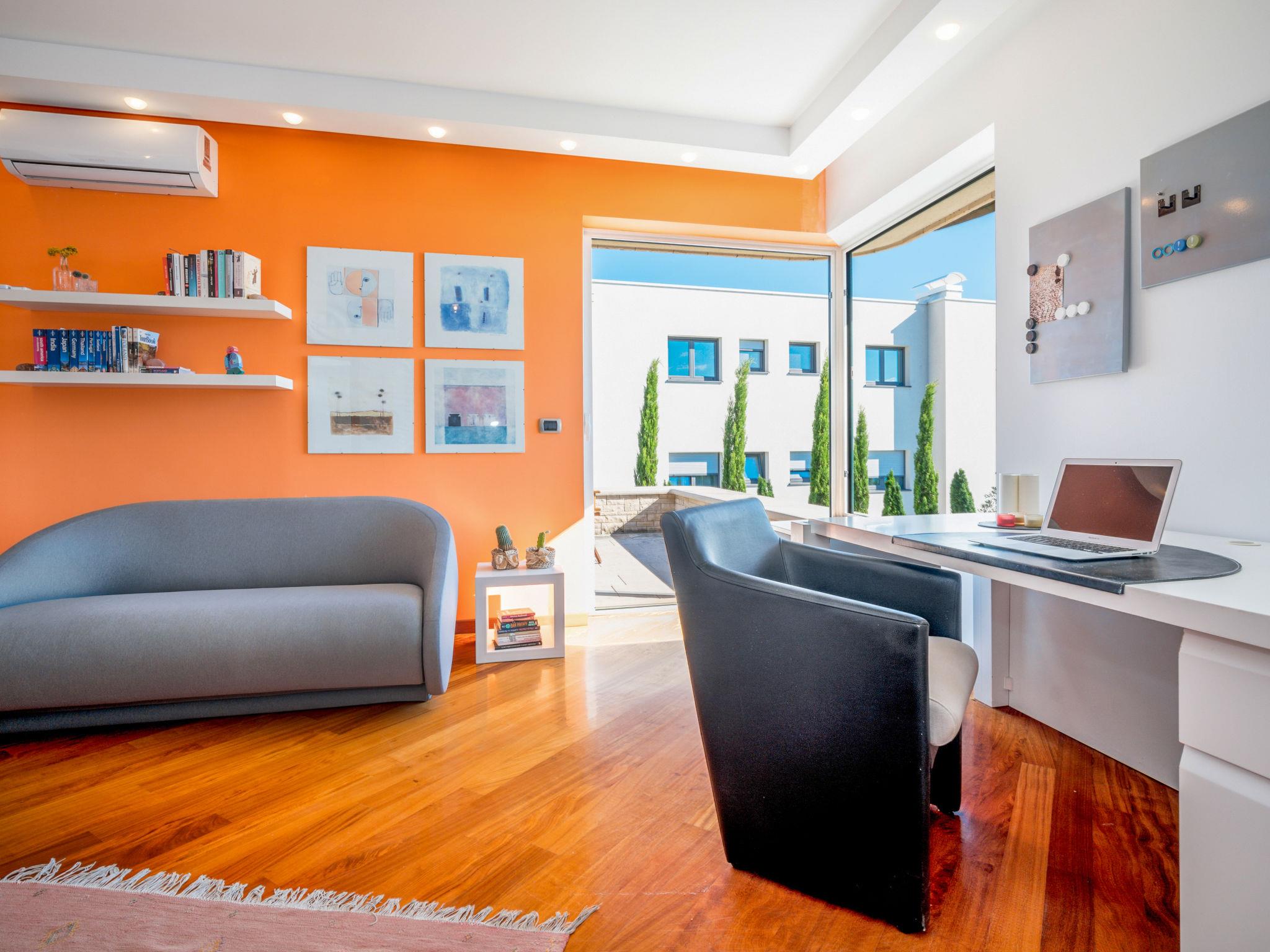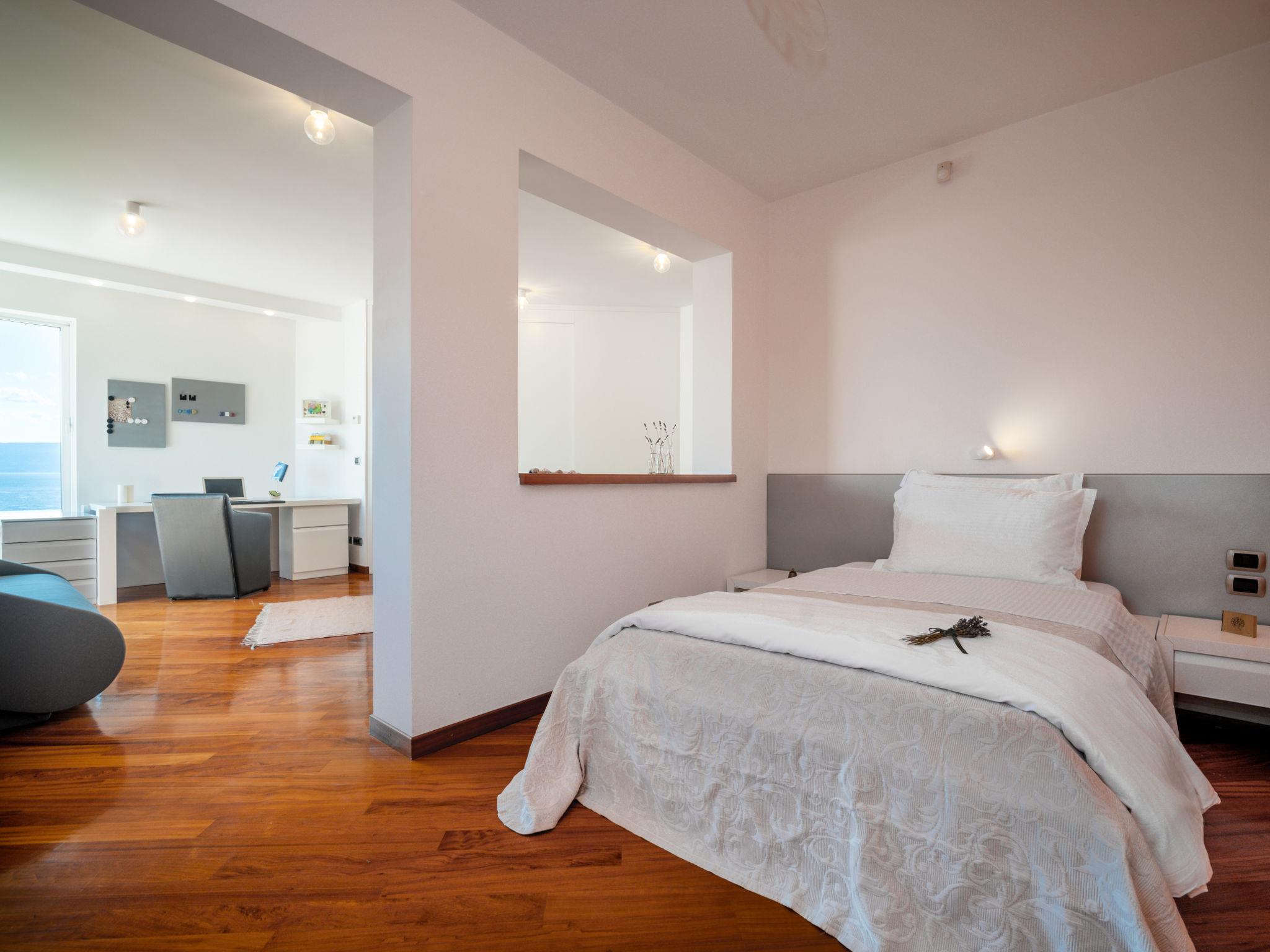 4-Zimmer-Villa 270 m2 auf 2 Stockwerken, Südlage. Schön und gemütlich eingerichtet: Wohn-/Esszimmer 120 m2 mit Sat-TV (Flachbildschirm), Klimaanlage. Ausgang zur Terrasse. Küche (Backofen, Geschirrspüler, 4 Induktionskochplatten, Tiefkühler, elektrische Kaffeemaschine). Ausgang zur Terrasse. Dusche/Bidet/WC. Obergeschoss: (Wendeltreppe) 1 Zimmer 35 m2 mit 1 Doppeldiwanbett (160 cm, Länge 200 cm), 1 franz. Bett (140 cm, Länge 200 cm), Klimaanlage. Ausgang zur Terrasse. 1 Zimmer 25 m2 mit 1 franz. Bett (160 cm, Länge 200 cm), Ventilator. 1 Zimmer 25 m2 mit 1 franz. Bett (160 cm, Länge 200 cm), Dusche/Bidet/WC und Klimaanlage. Dusche/Bidet/WC. Terrasse 70 m2 teilweise überdacht, Terrasse 20 m2. Terrassenmöbel, Gartengrill (mobil), Liegestühle. Sicht auf das Meer und das Schwimmbad. Zur Verfügung: Safe, Babybett, Haartrockner. Internet (WLAN, gratis). Garage (2 Autos). Maximal 1 Haustier/Hund erlaubt.