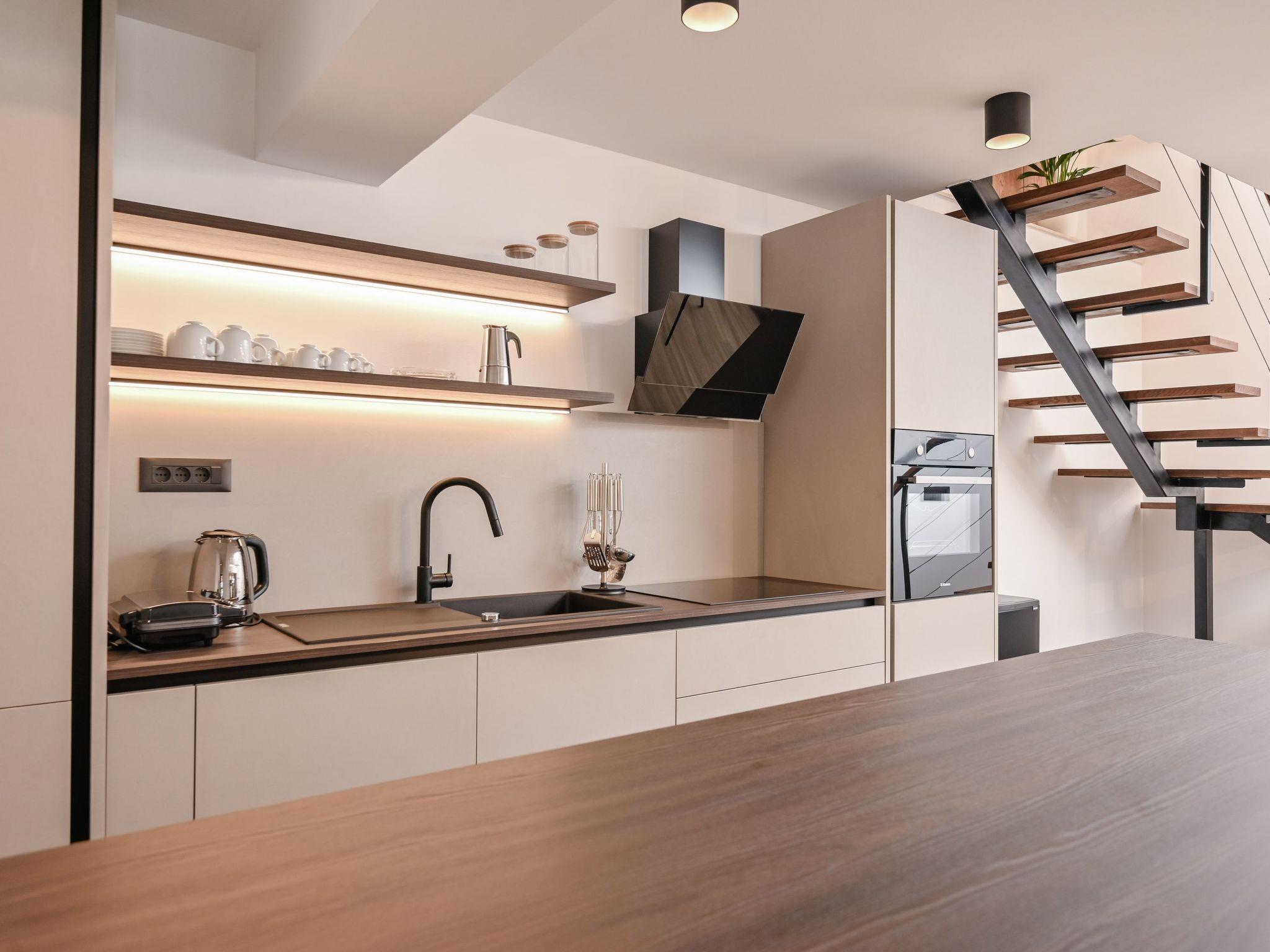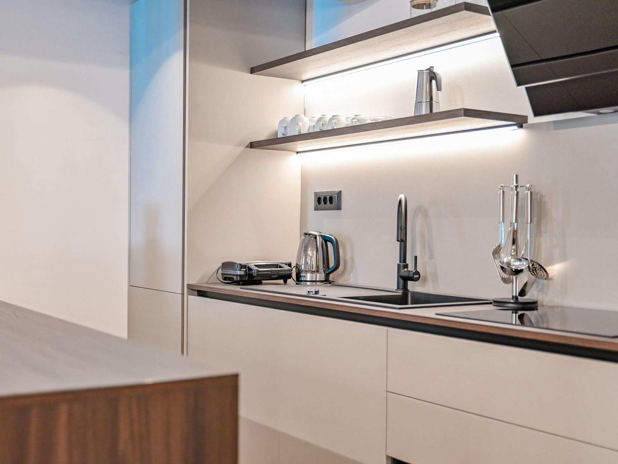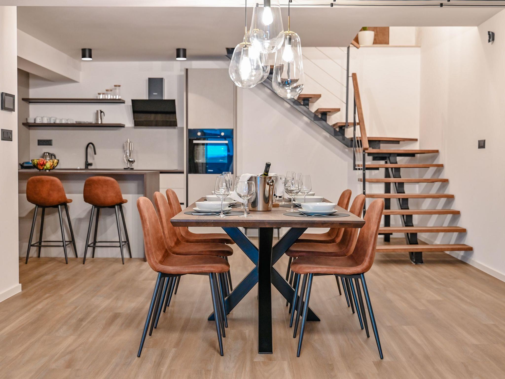 Im Inneren ist das Haus mit modernen Annehmlichkeiten ausgestattet, um einen angenehmen Aufenthalt zu gewährleisten. Jedes Zimmer verfügt über eine Klimaanlage und eine Fußbodenheizung, die unabhängig von der Jahreszeit für ein angenehmes Ambiente sorgen. Das Vorhandensein einer Waschmaschine und eines Wäschetrockners, die Ihnen zur alleinigen Nutzung zur Verfügung stehen, bietet zusätzlichen Komfort, ideal für längere Aufenthalte oder zum Auffrischen Ihrer Urlaubskleidung. Die Küche ist mit einem Geschirrspüler, einer Kaffeemaschine und einem Wasserkocher ausgestattet, um all Ihre kulinarischen Bedürfnisse und Wünsche zu befriedigen.