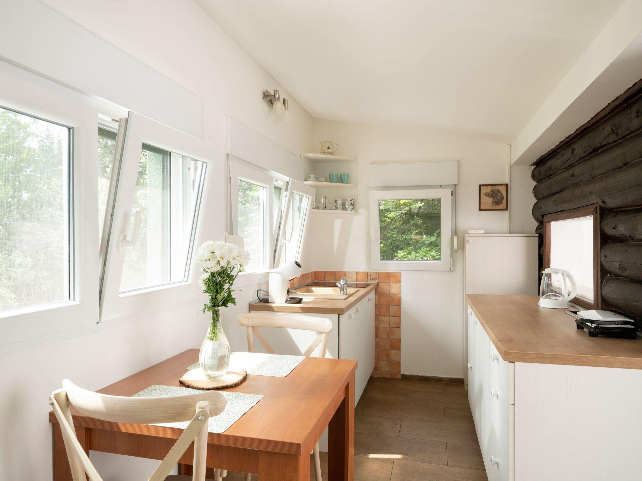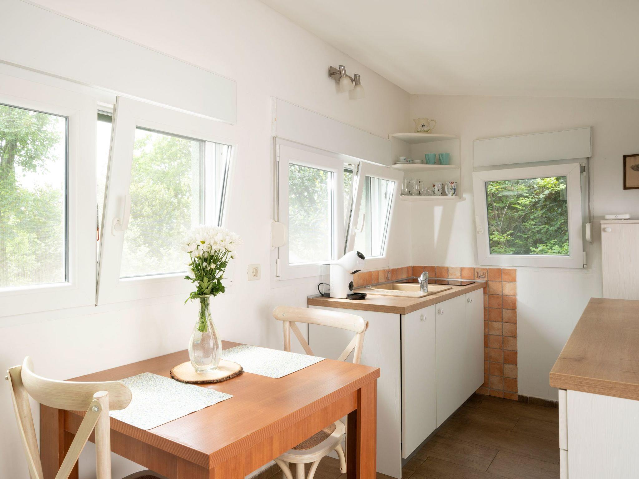 Im Inneren ist das Haus sorgfältig für Ihren Komfort ausgestattet. Es verfügt über eine gemütliche Küche mit Induktionsherd, kombiniertem Kühlschrank, Geschirrspüler, Wasserkocher und Toaster sowie einem Esstisch und zwei Stühlen. Das Schlafzimmer verspricht erholsame Nächte mit einem bequemen Doppelbett, einem Kleiderschrank und einem Satellitenfernseher für Ihre Unterhaltung. Für Ihren Komfort gibt es zwei Badezimmer: eines mit Dusche, Toilette, Waschbecken, Warmwasserbereiter und Lufterhitzer und ein separates Badezimmer mit Toilette, Waschbecken, Waschmaschine und einer Außendusche. Eine Klimaanlage sorgt für Heizung und Kühlung, so dass Ihr Aufenthalt das ganze Jahr über angenehm ist.