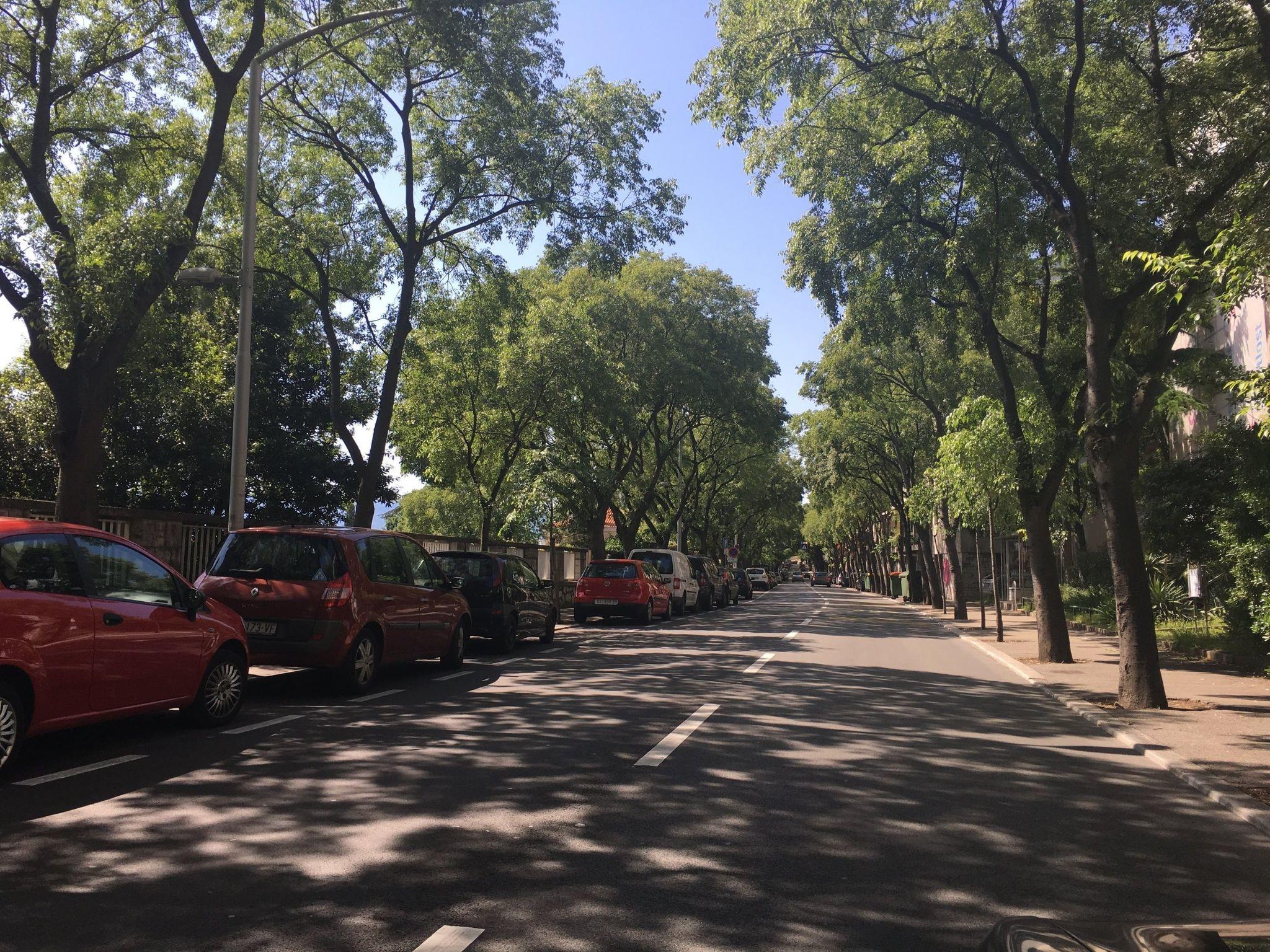 Kostenfreie öffentliche Parkplätze entlang der Straße sind vorhanden.
