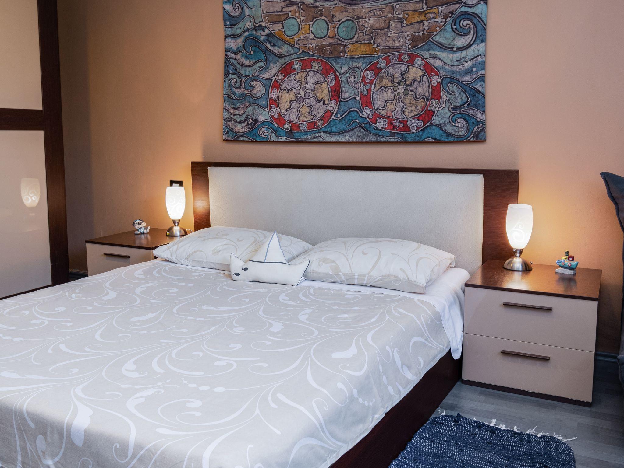 Ferienwohnung bietet Platz für 5 Gäste. Die Betten sind in Schlafzimmern, die es 2 gibt, und in Wohnzimmer, innerhalb einer Gesamtfläche von 57m2, angeordnet. Die Gäste haben eine eigene Terrasse zur Verfügung, auf der sie in warmen Sommernächten genießen können. IM PREIS INBEGRIFFEN: Kurtaxe, Endreinigung, Klimatisierung, Internet, Bügeleisen, Bügelbrett, Föhn. UNVERBINDLICHE ZUSÄTZLICHE KOSTEN: 1 Bett für Kinder (8,00 € Person/Tag). Die Verfügbarkeit zusätzlicher Dienstleistungen in Ihrem reservierten Termin und die Preise derselben (falls nicht aufgeführt) müssen im Voraus überprüft werden. Zusätzliche Dienstleistungen die in der Zahlungsaufforderung nicht aufgeführt sind werden direkt beim Vermieter bezahlt, angenommen der Gast nutzt auch diese. Ermäßigung auf den Grundpreis: Gratistag 21=19 (bei einem Aufenthalt von 21 Tagen oder mehr erhalten Sie 2 Gratistage für den Aufenthalt bis 31.12.26).