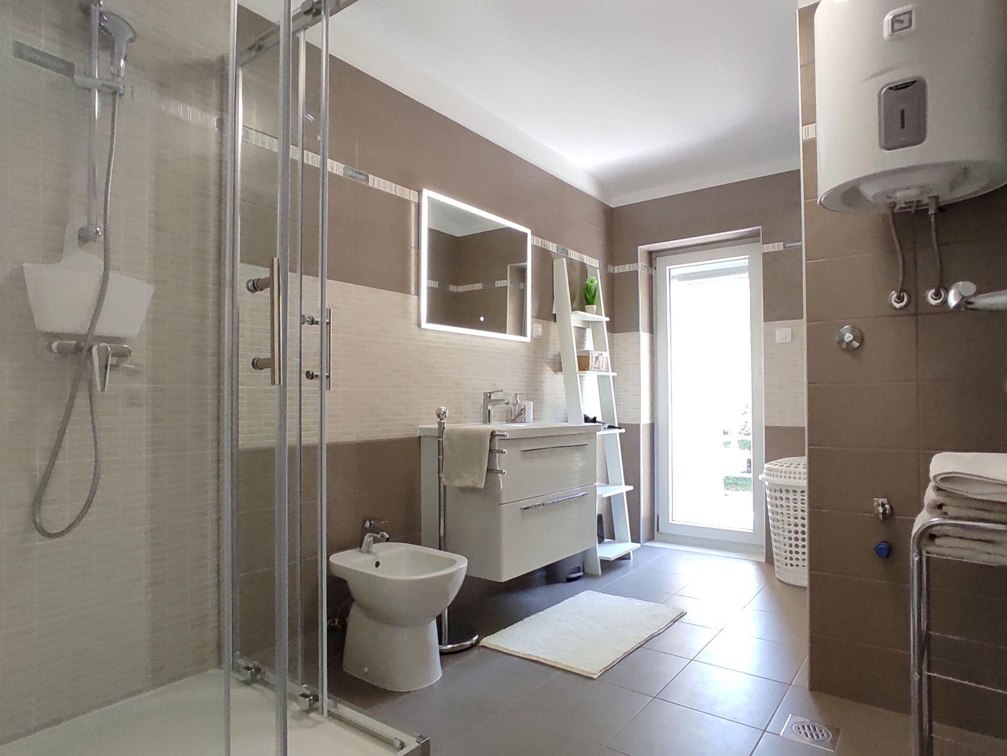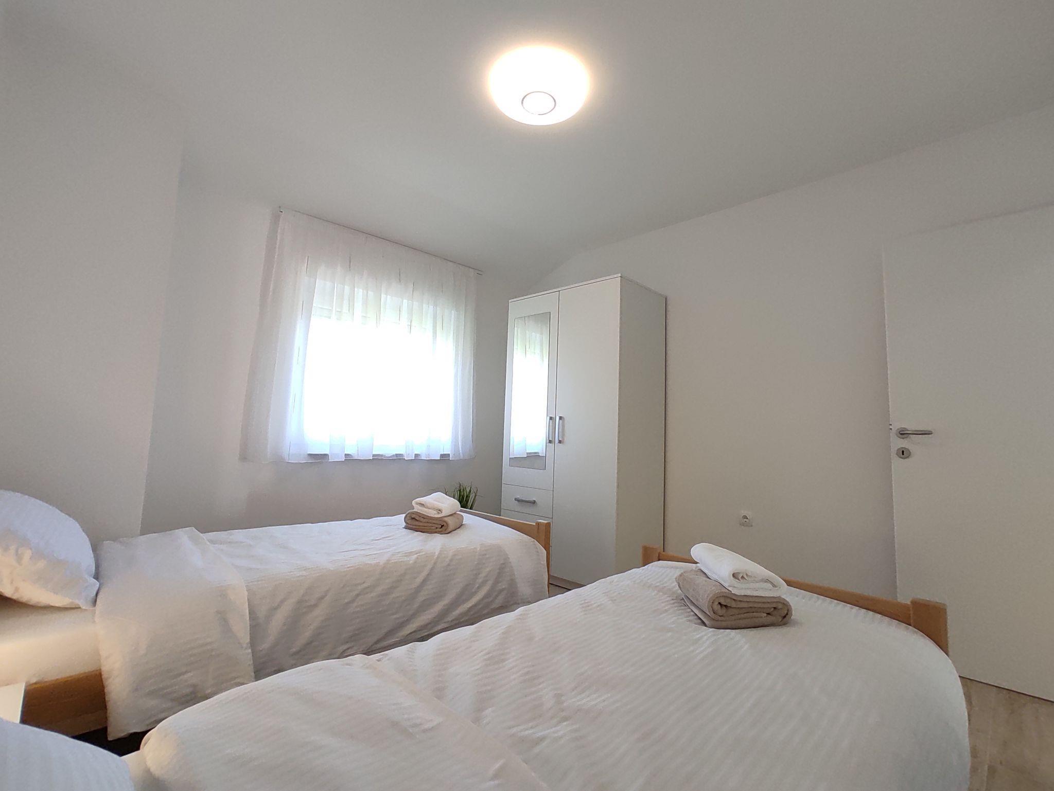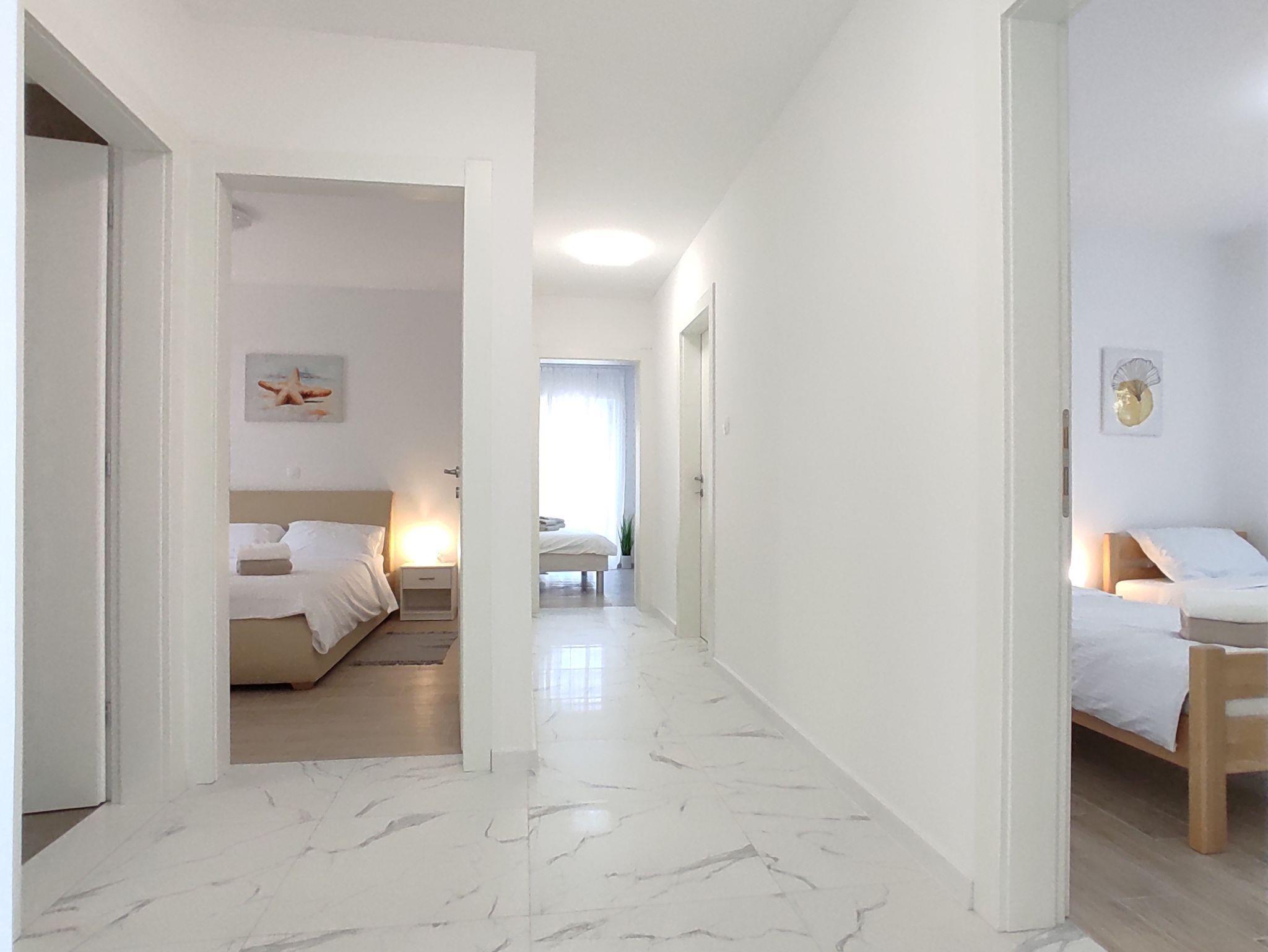 Ferienwohnung bietet Platz für 8 Gäste. Die Betten sind in Schlafzimmern, die es 3 gibt, und in Wohnzimmer, innerhalb einer Gesamtfläche von 99m2, angeordnet. Die Gäste haben eine eigene Terrasse zur Verfügung, auf der sie in warmen Sommernächten genießen können. Es ist erlaubt, Speisen auf dem Gemeinschafts-Grill vorzubereiten. IM PREIS INBEGRIFFEN: Kurtaxe, Endreinigung, Klimatisierung, Parkplatz, Internet, Föhn. VERBINDLICHE ZUSÄTZLICHE KOSTEN: Aufzahlung für Kurzaufenthalte (prozentualer Zuschlag pro Nächtigungsanzahl: 30% - 1, 20% - 2, 10% - 3). Die Verfügbarkeit zusätzlicher Dienstleistungen in Ihrem reservierten Termin und die Preise derselben (falls nicht aufgeführt) müssen im Voraus überprüft werden. Zusätzliche Dienstleistungen die in der Zahlungsaufforderung nicht aufgeführt sind werden direkt beim Vermieter bezahlt, angenommen der Gast nutzt auch diese. Ermäßigung auf den Grundpreis: Gratistag 14=13 (bei einem Aufenthalt von 14 Tagen oder mehr erhalten Sie einen Gratistag für den Aufenthalt bis 31.12.26).